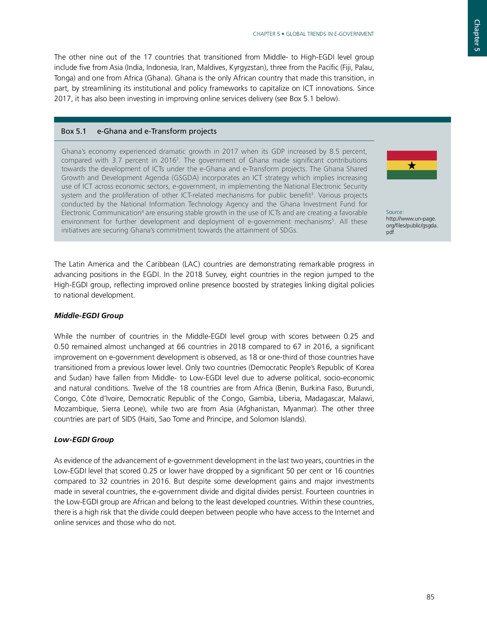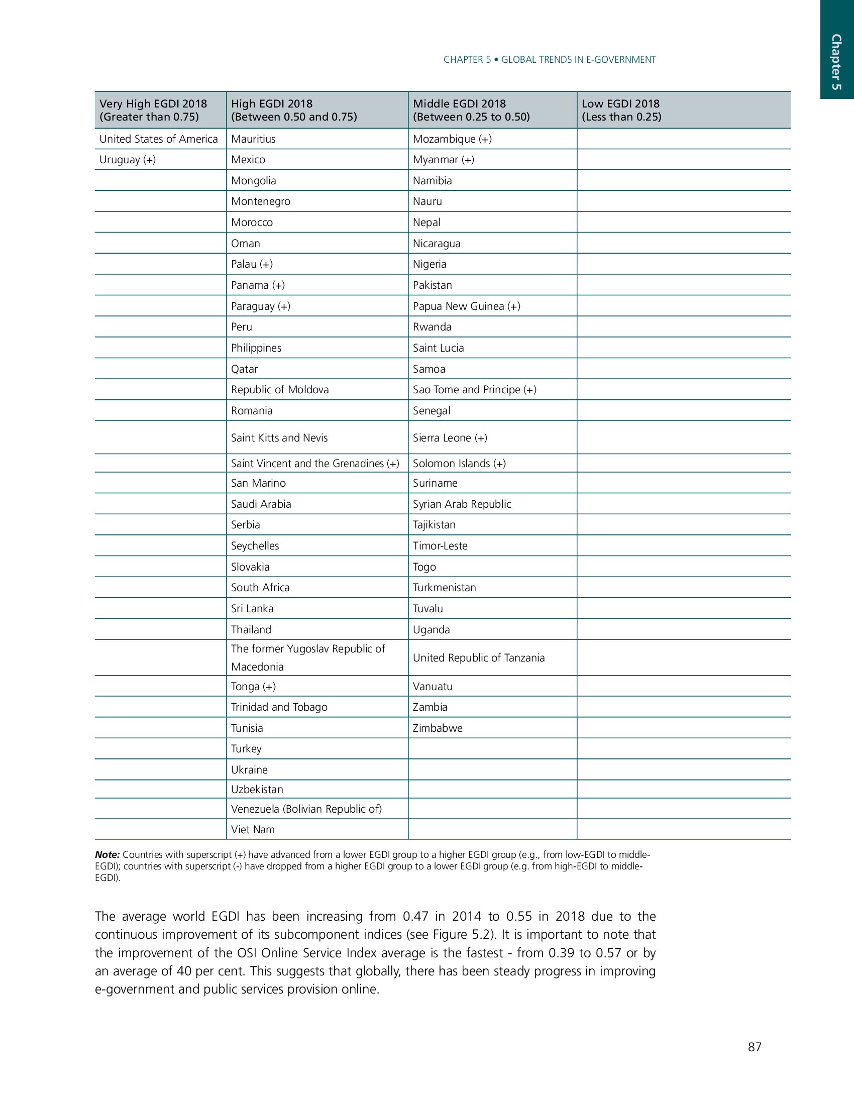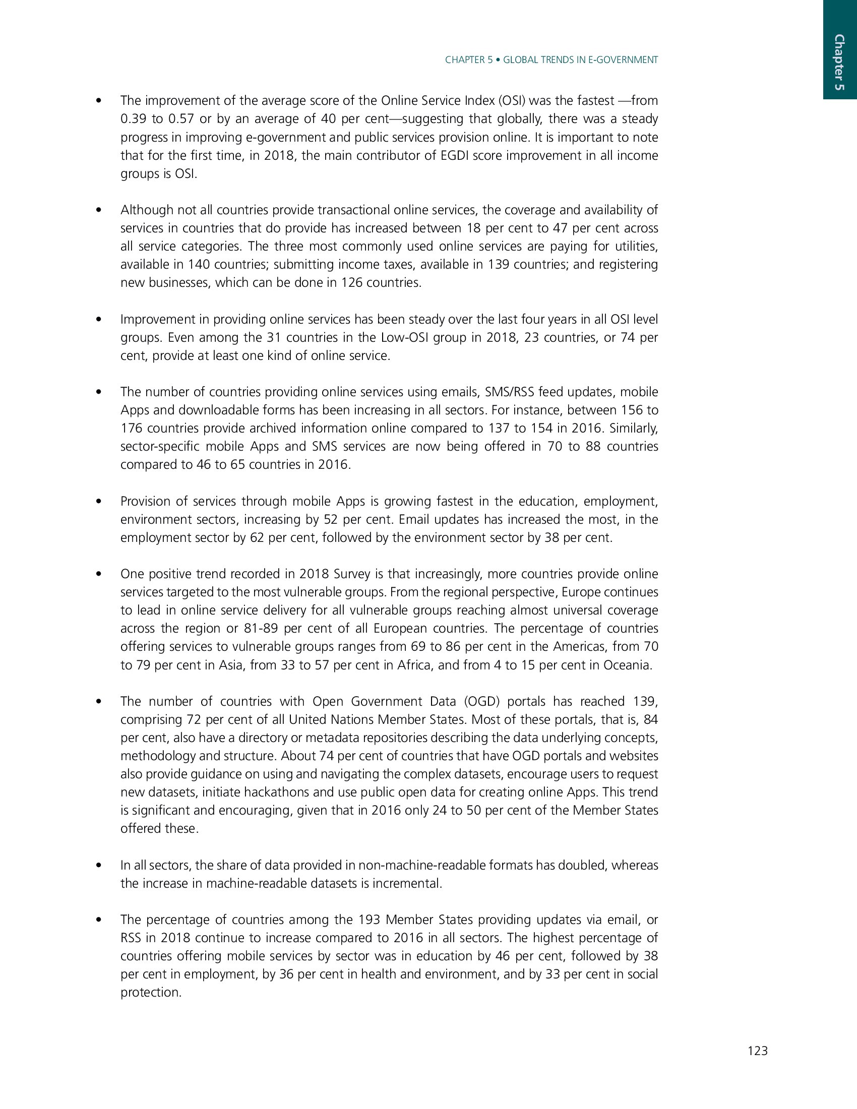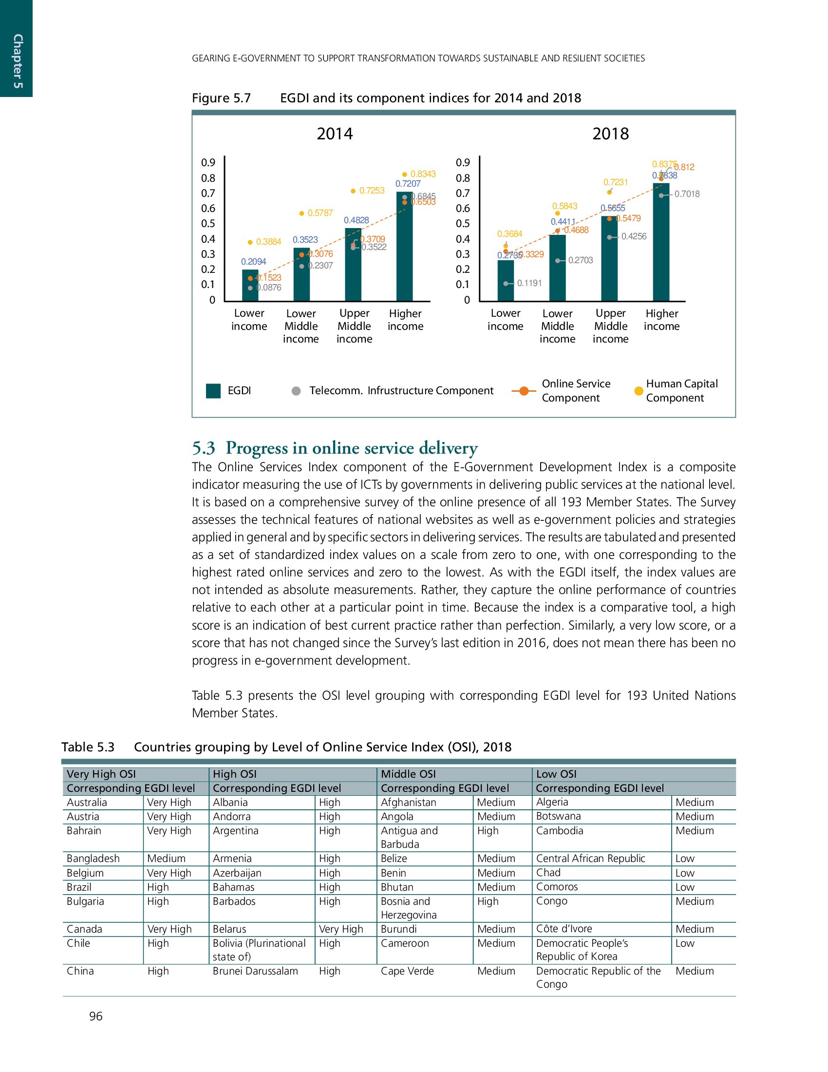 2018年,所有收入国家EDGI得分改善的主要贡献者是在线服务的发展,这表明在全球范围内,在改善在电子政务和公共服务方面取得了稳步进展。