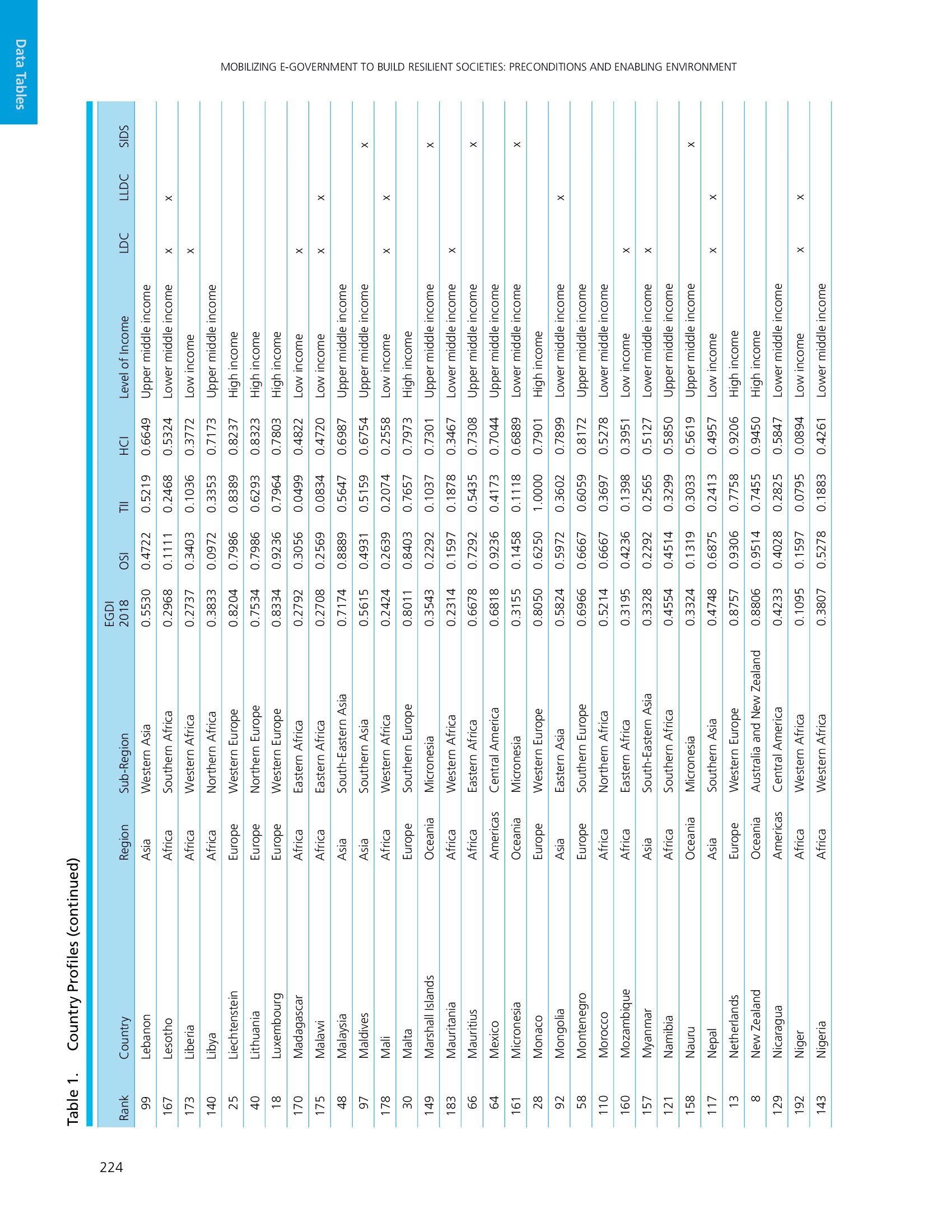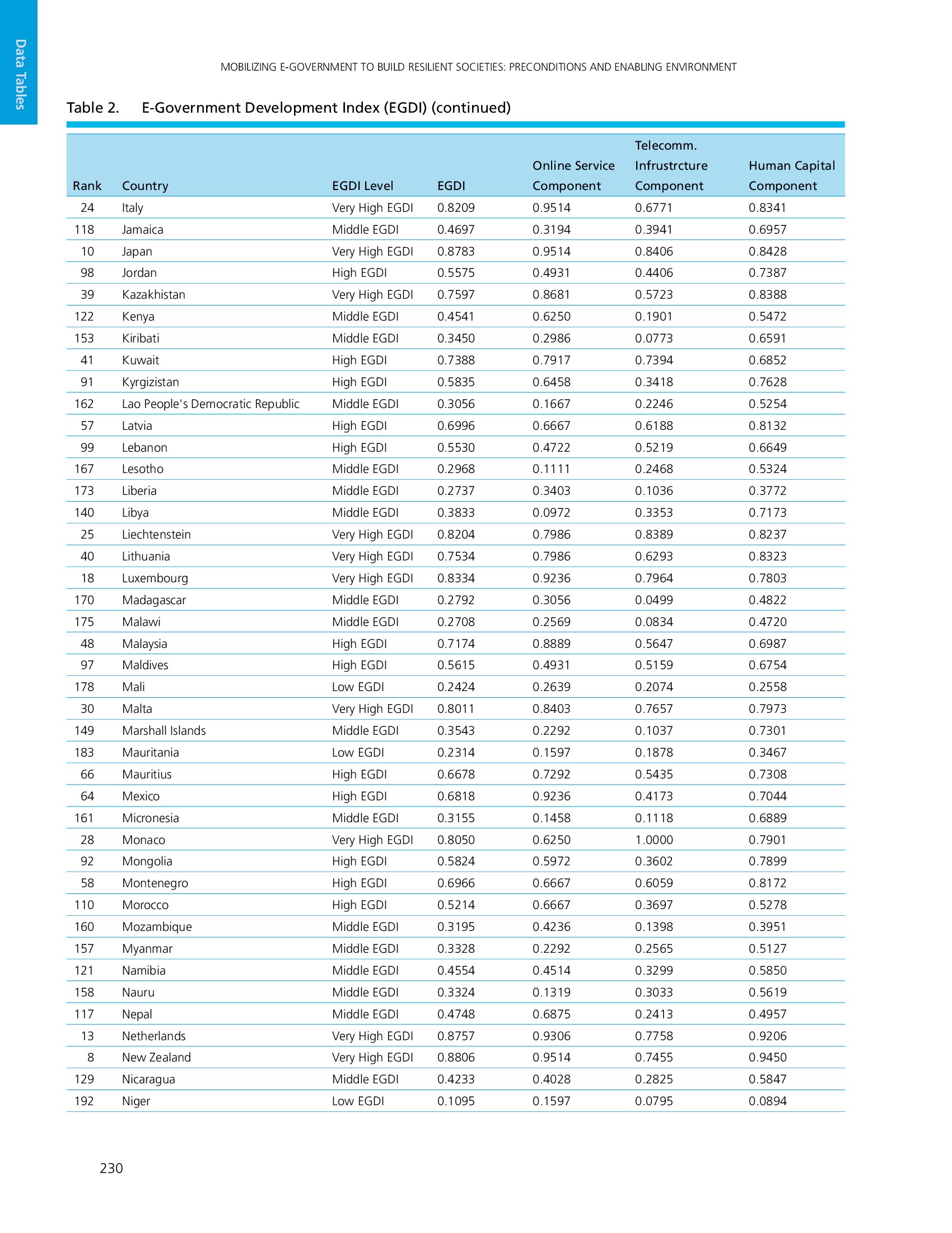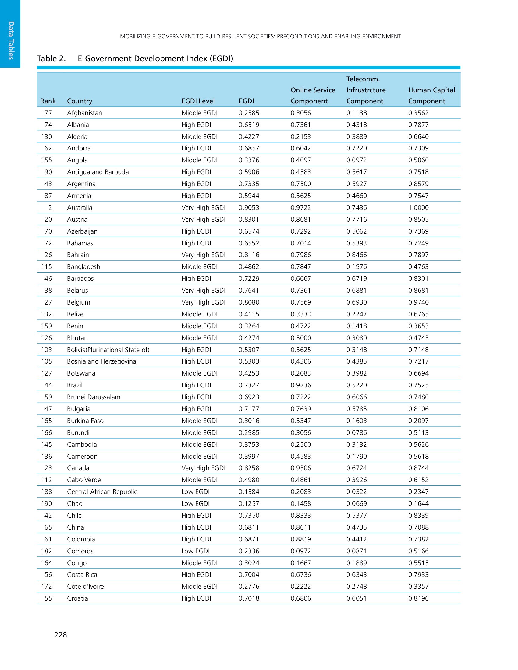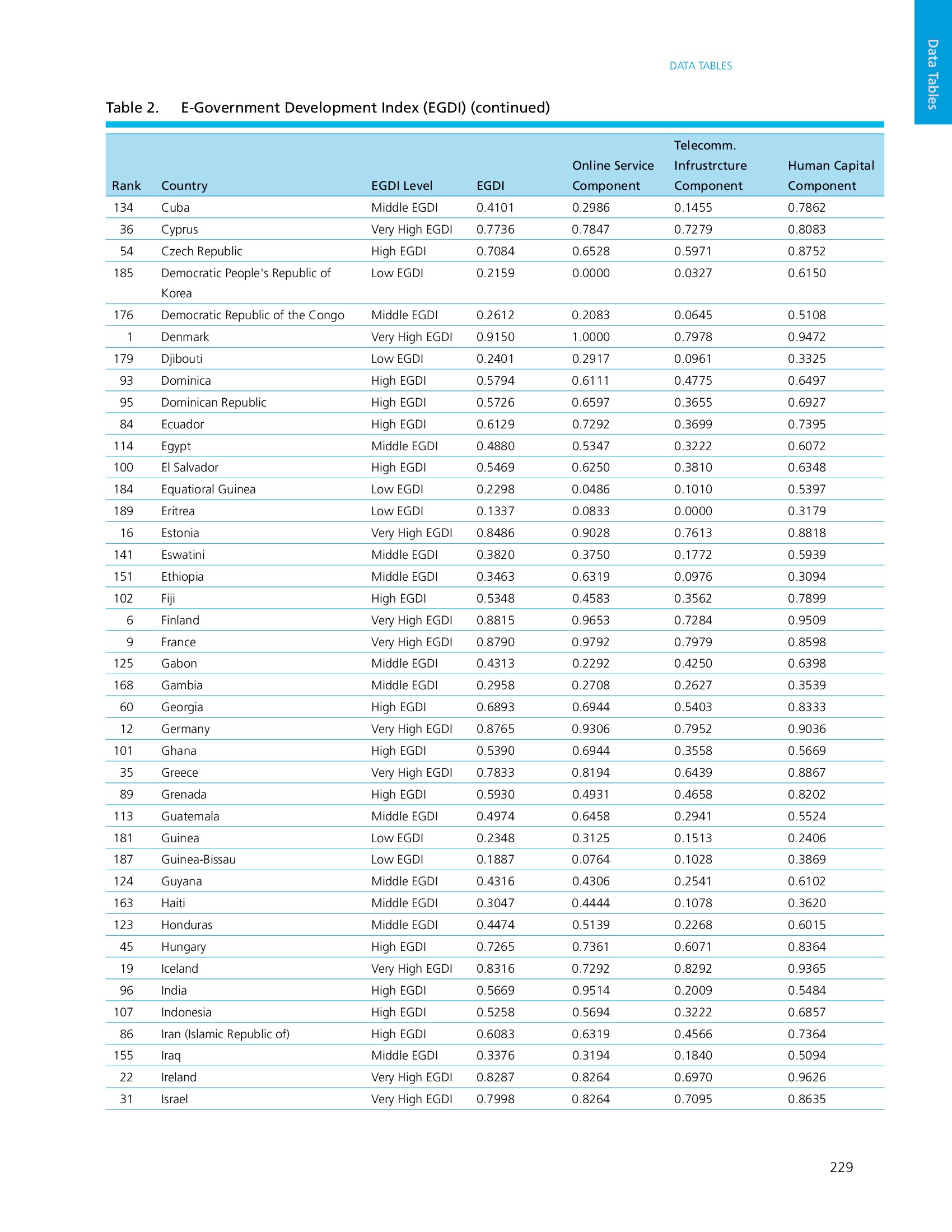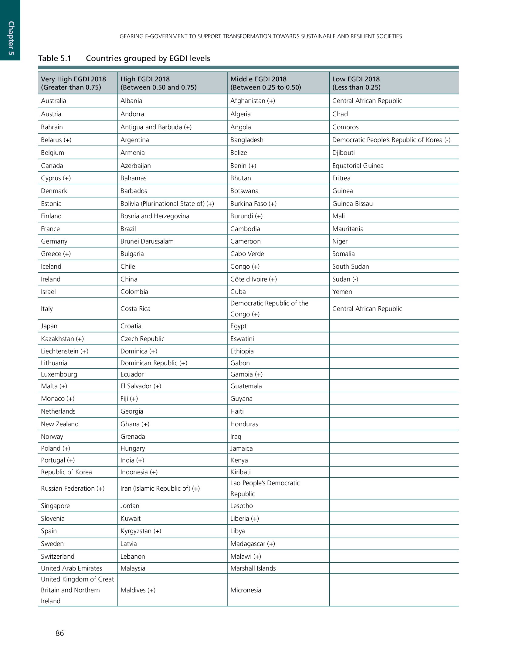 非洲54个国家中只有4个国家的得分高于世界平均EGDI,还有14个国家的EGDI得分低于0.25。这些国家的收入也很低,在政府发展分配必要资源方面可能面临限制。