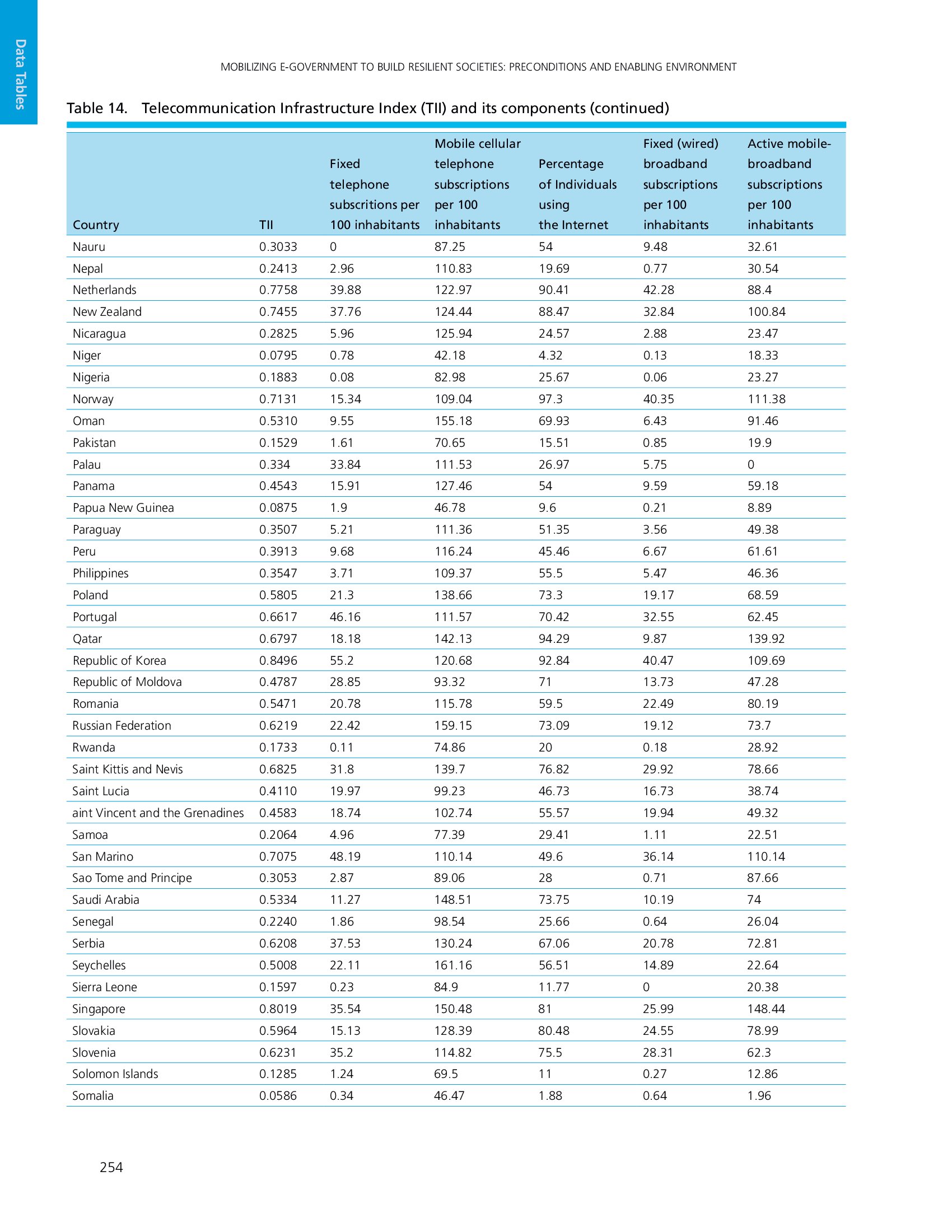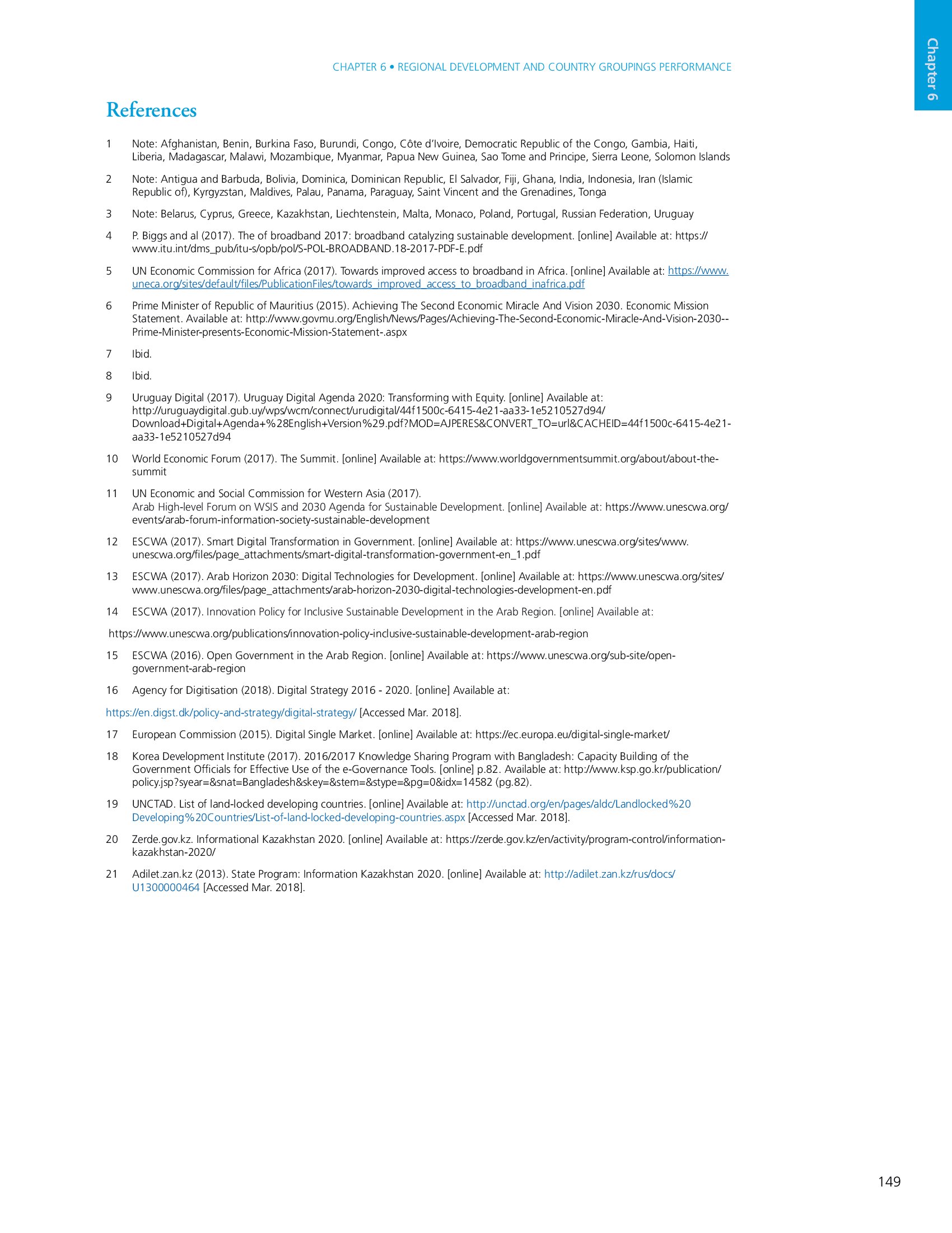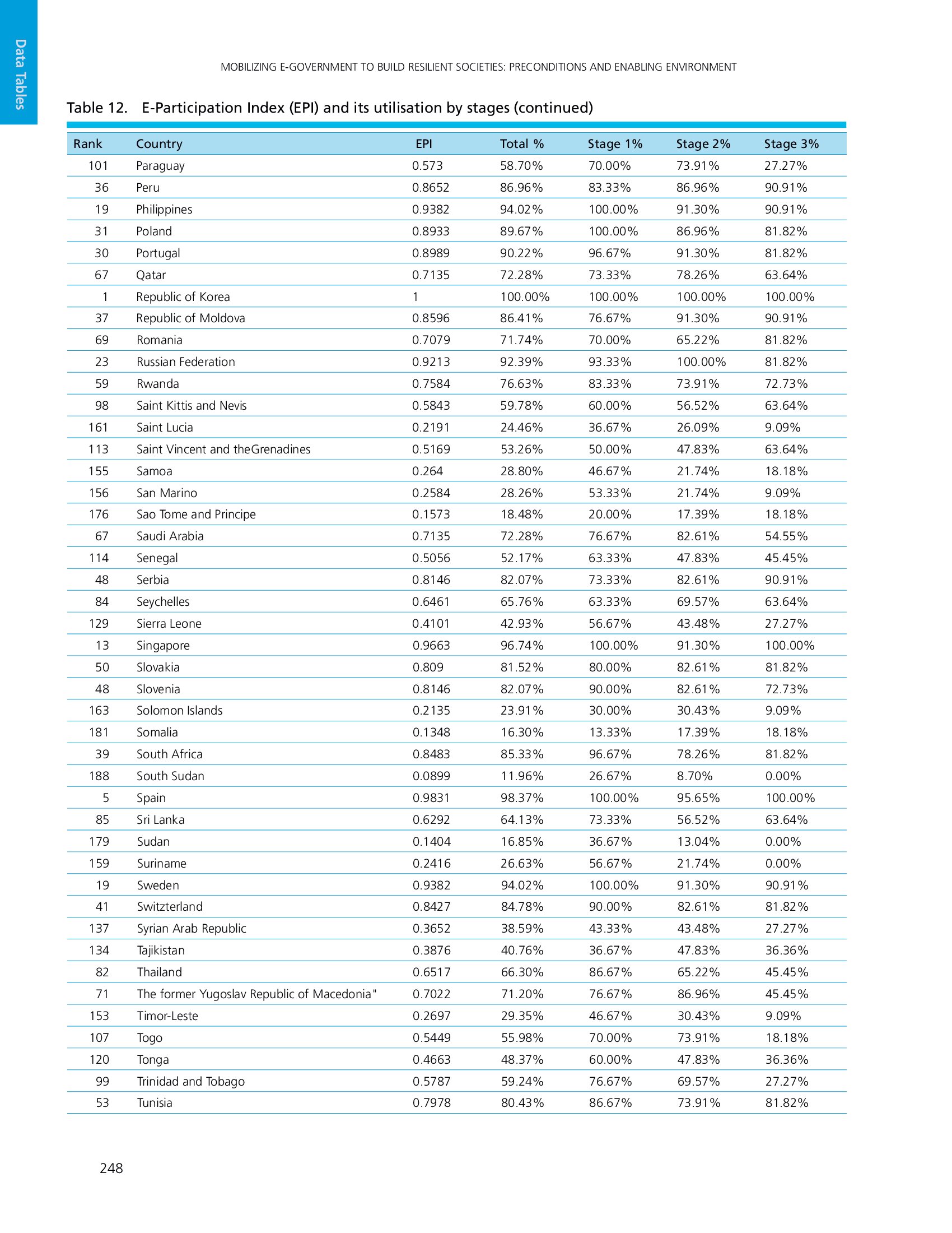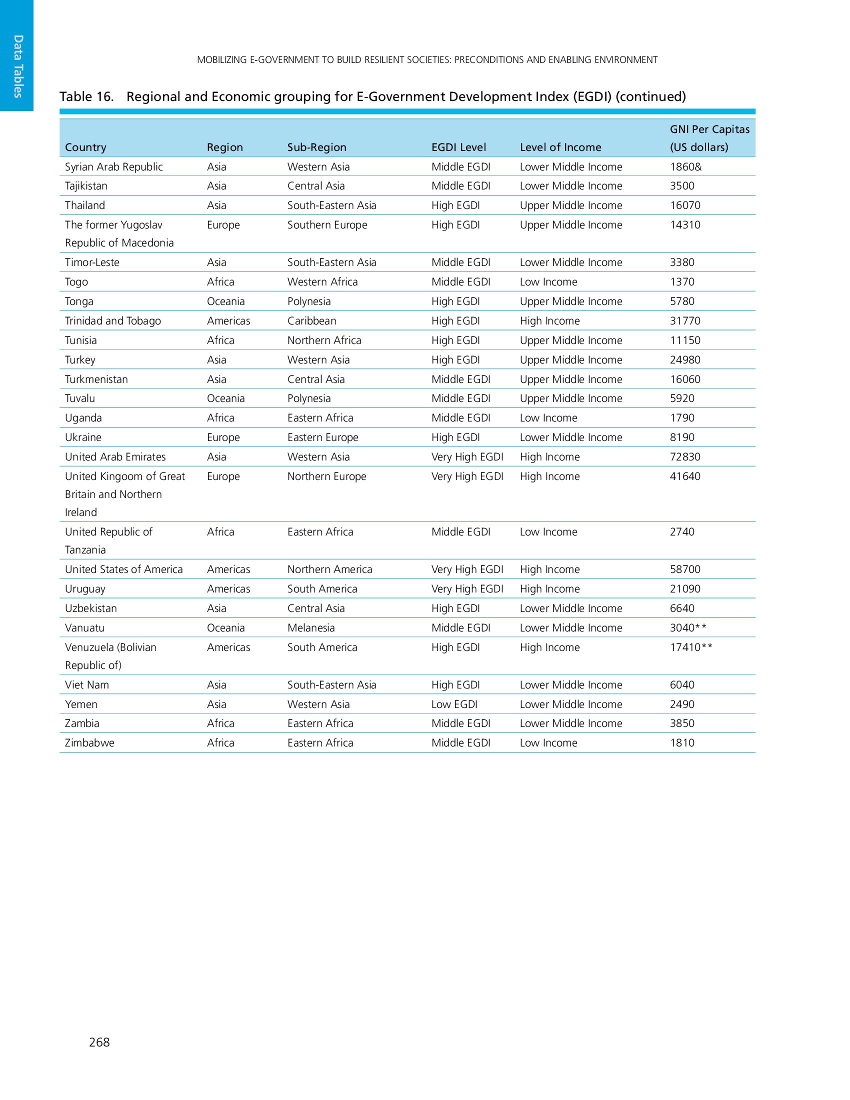 非洲和大洋洲地区的国家的政府发展水平差异也很大。澳大利亚和新西兰是大洋洲仅有的两个电子政务发达国家,EGDI分别为0.9053和0.8806。其他12个国家的得分介于0.2787和0.5348之间,低于世界平均水平。