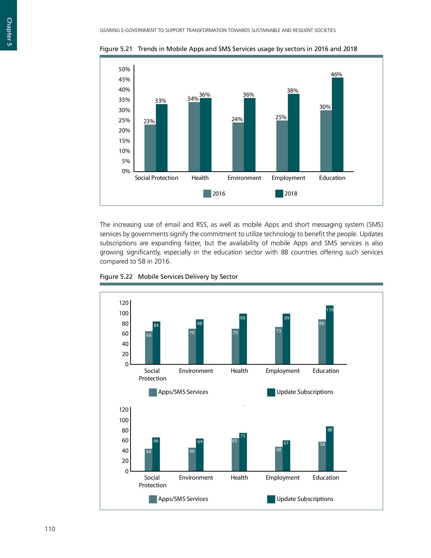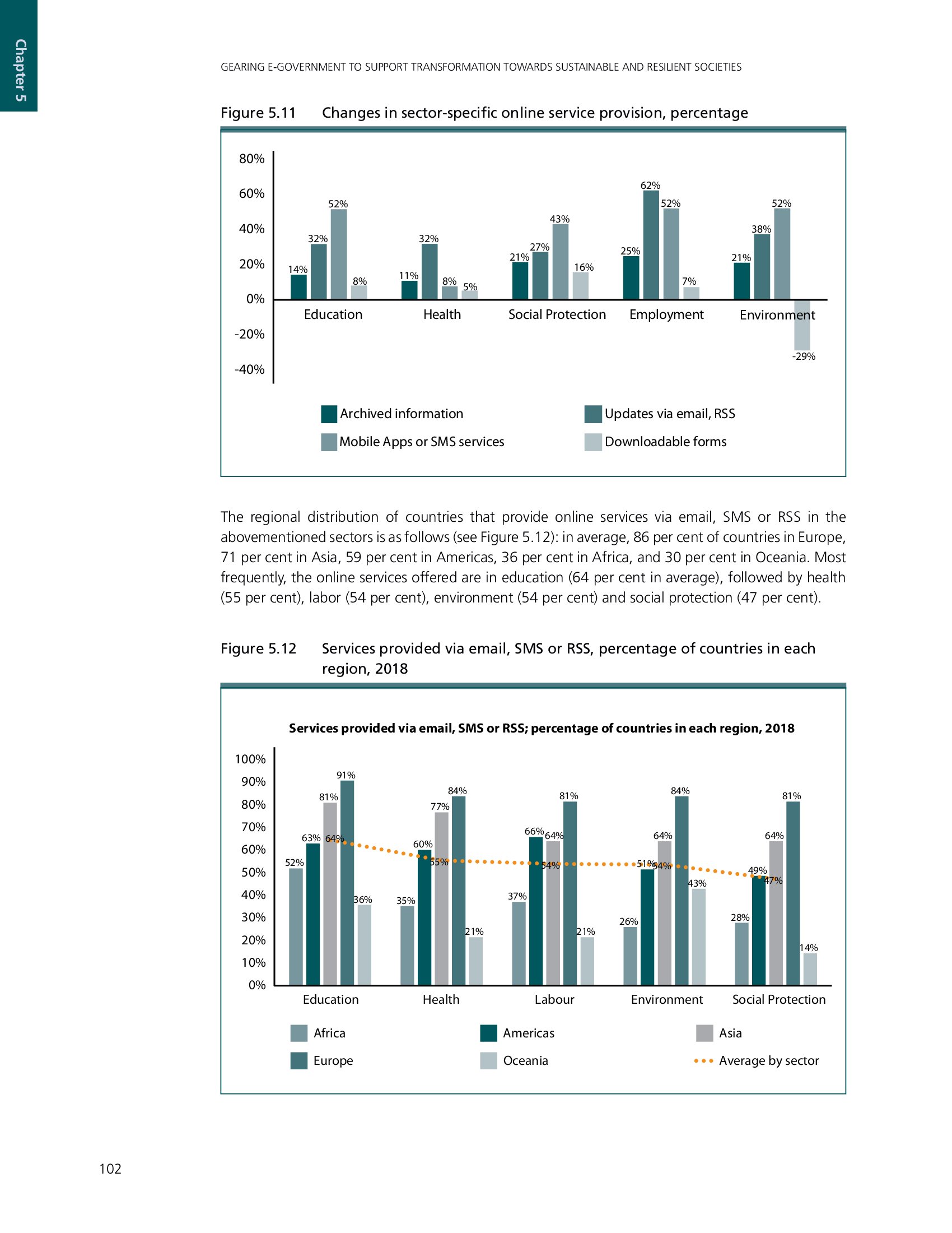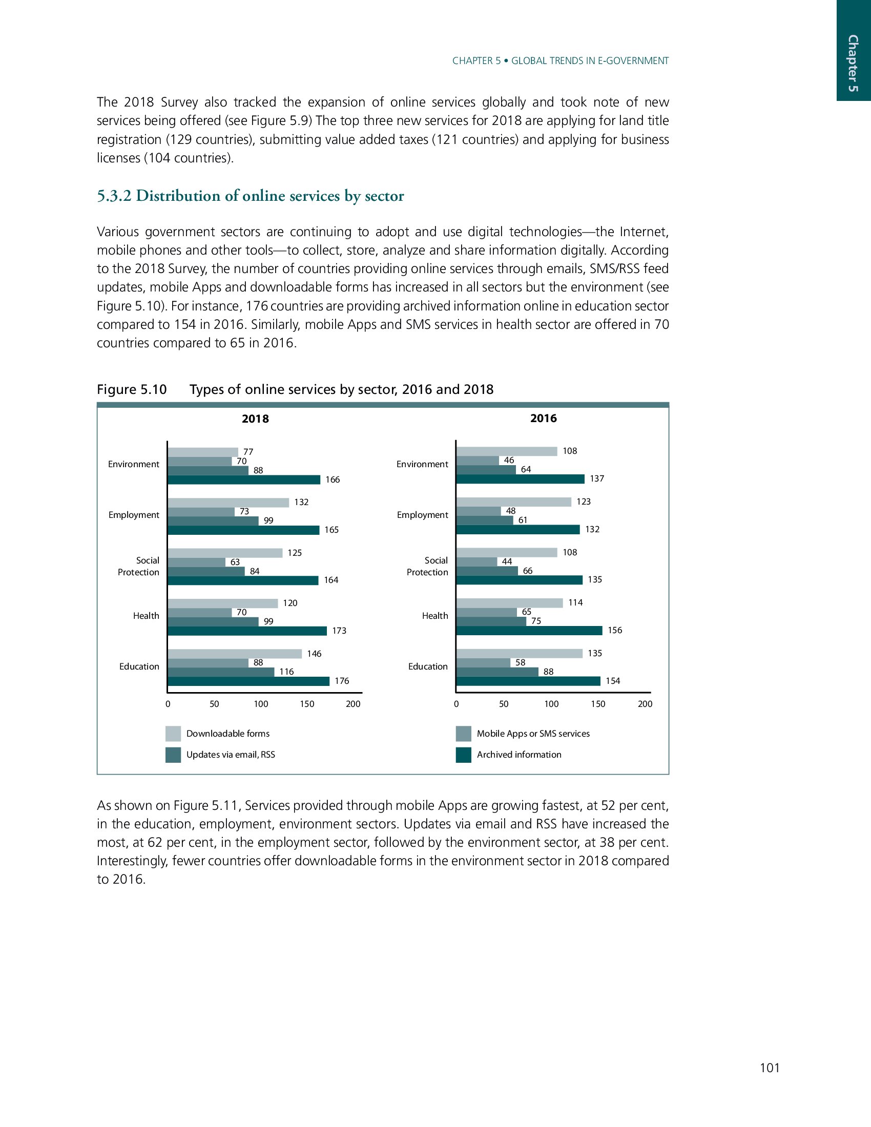 在所有部门,使用电子邮件、短信/ RSS、移动应用和其他在线服务的国家数量一直在增加。 例如,多达176个国家/地区提供在线存档信息,而2016年只有154个。