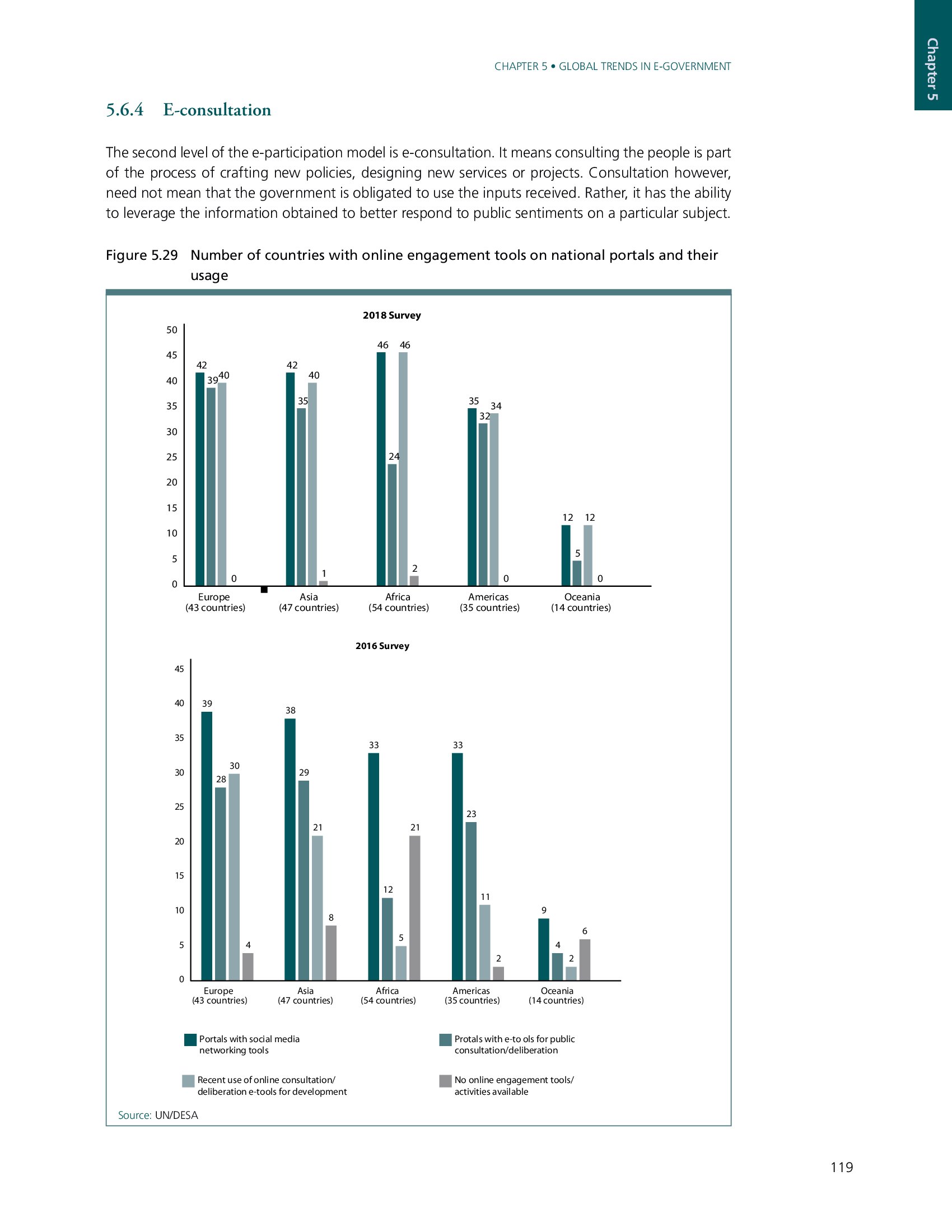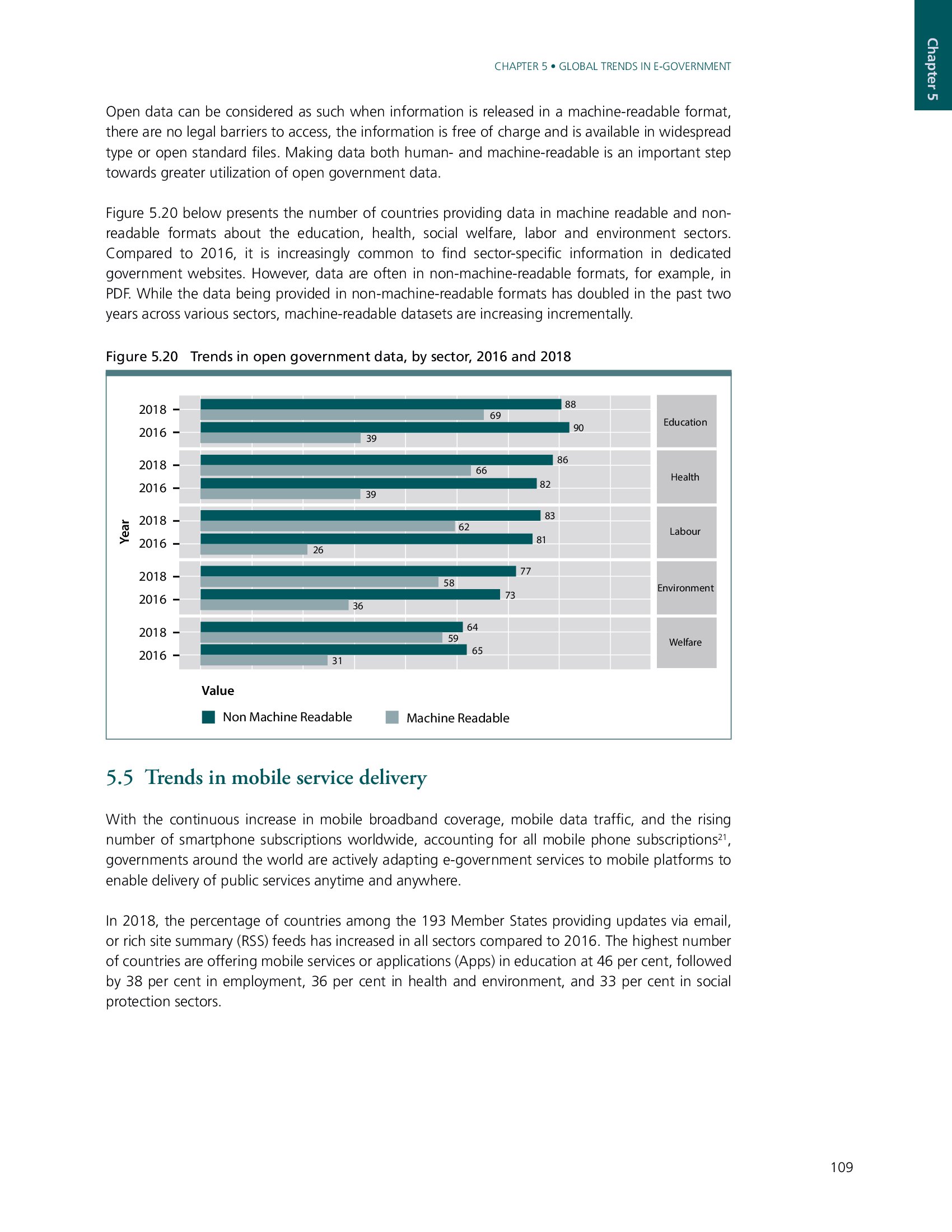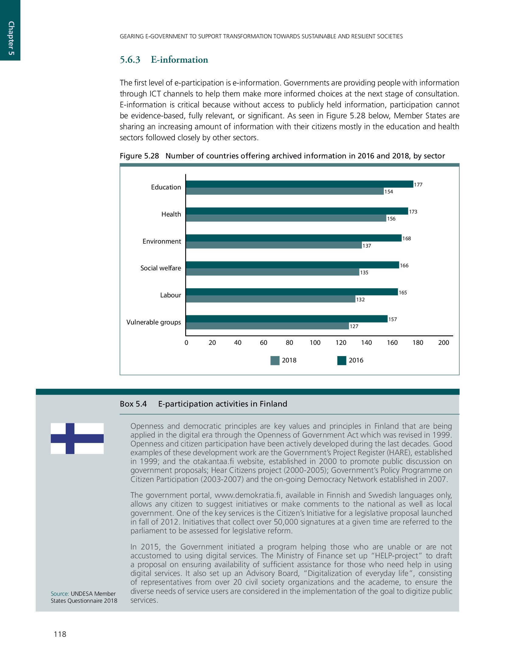 在所有部门,使用电子邮件、短信/ RSS、移动应用和其他在线服务的国家数量一直在增加。 例如,多达176个国家/地区提供在线存档信息,而2016年只有154个。