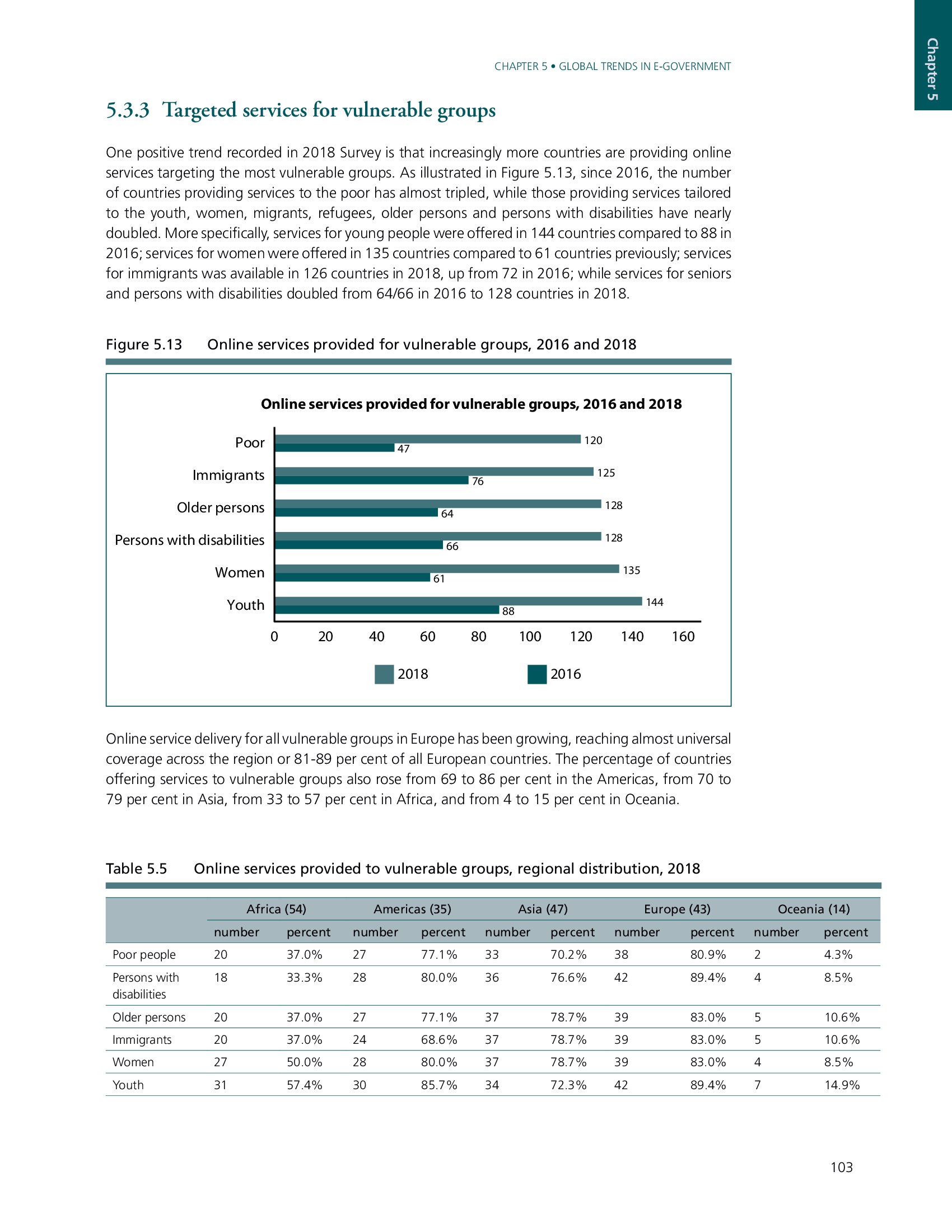 越来越多的国家提供针对弱势群体的在线服务。从区域来看,欧洲在这方面处于领先地位。