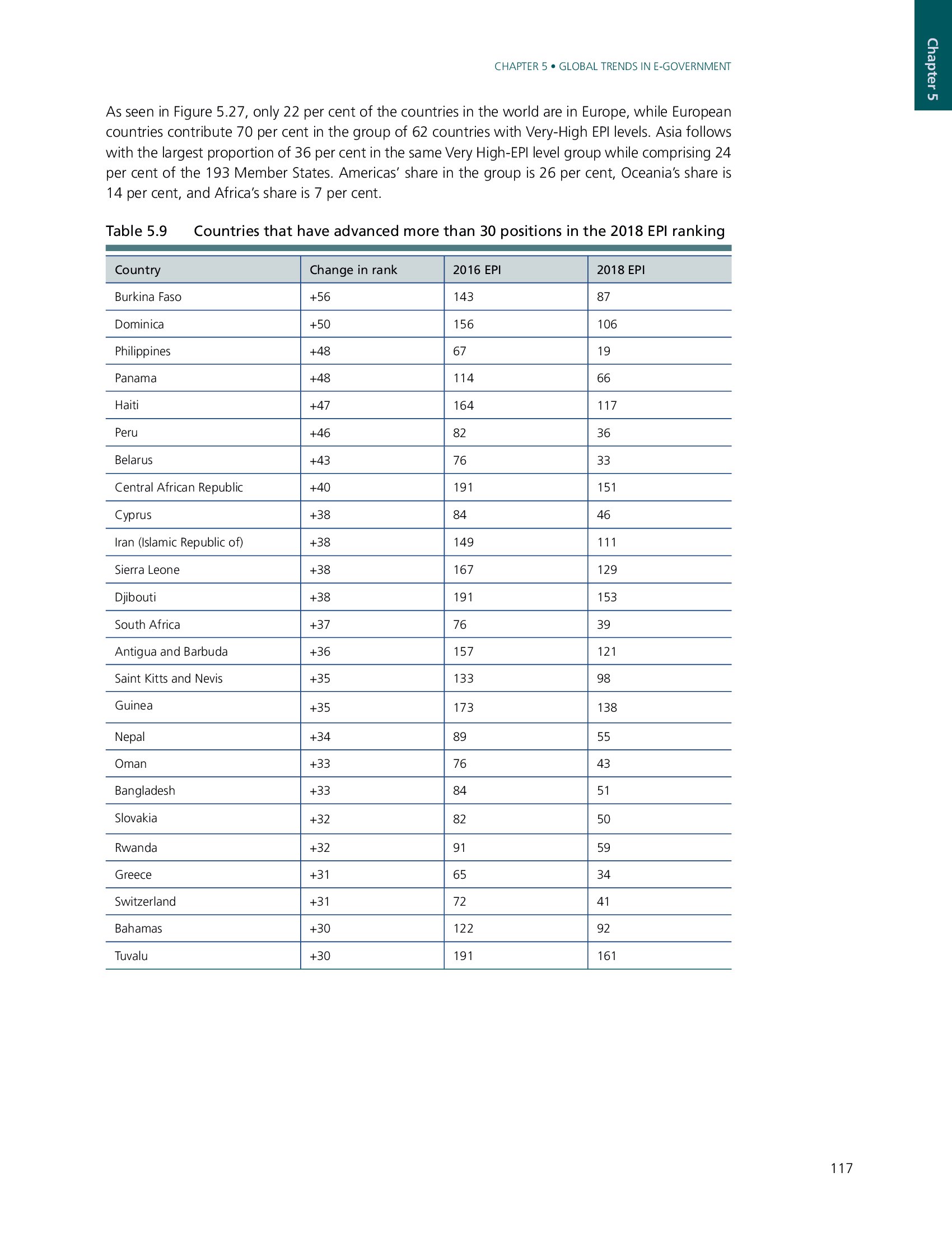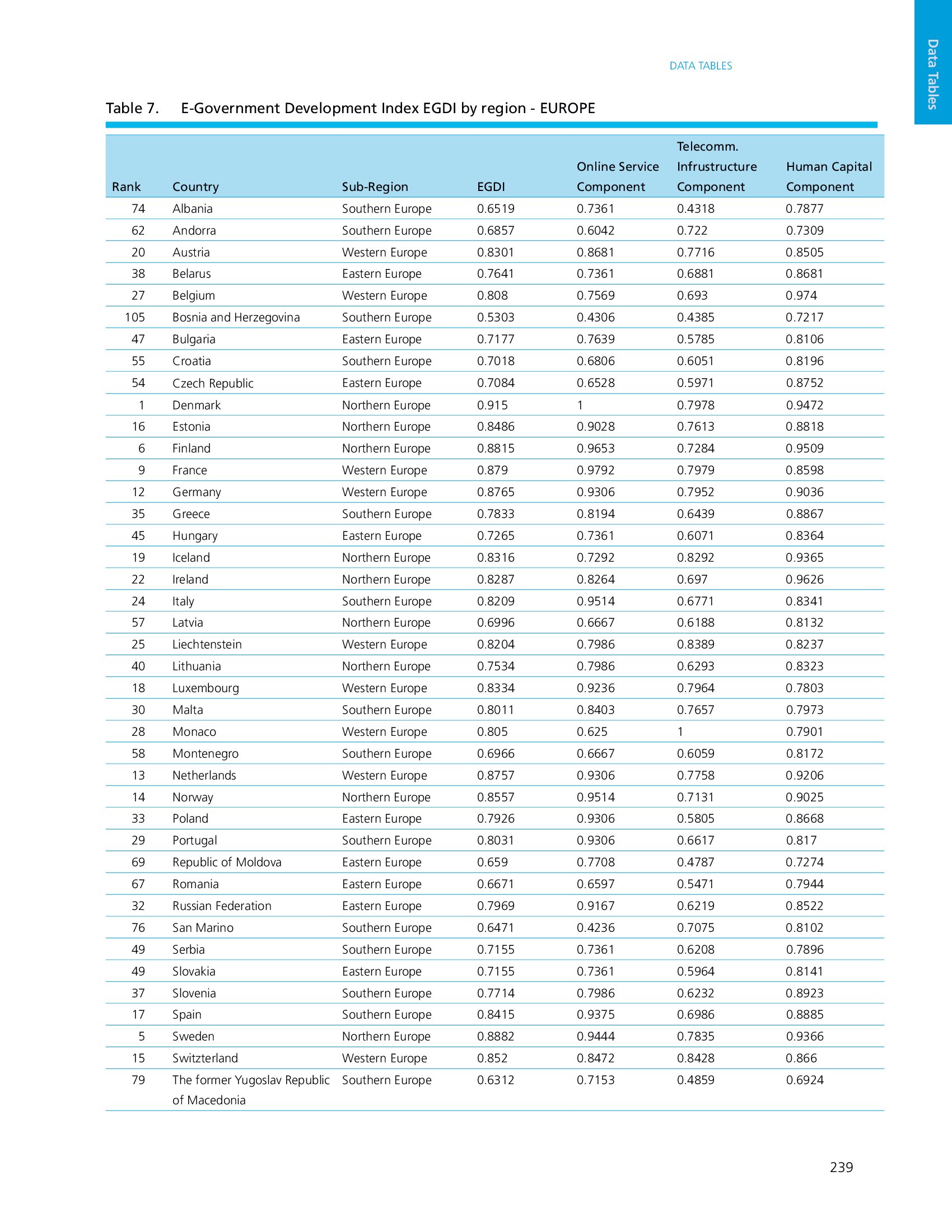 2018年有11个国家加入电子政务发达国家小组,其中8个国家来自欧洲,分别为白俄罗斯、希腊、列支敦士登、马耳他、摩纳哥、波兰、葡萄牙和俄罗斯,还有两个来自亚洲(塞浦路斯和哈萨克斯坦)。