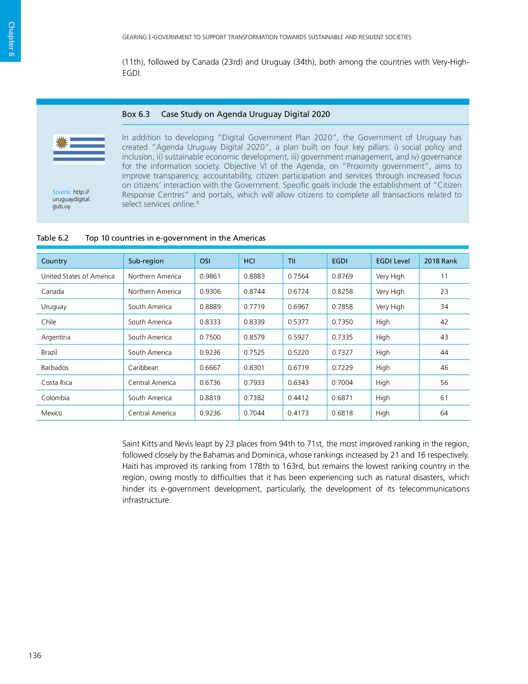 乌拉圭是唯一一个拥有高分EGDI的拉丁美洲国家。