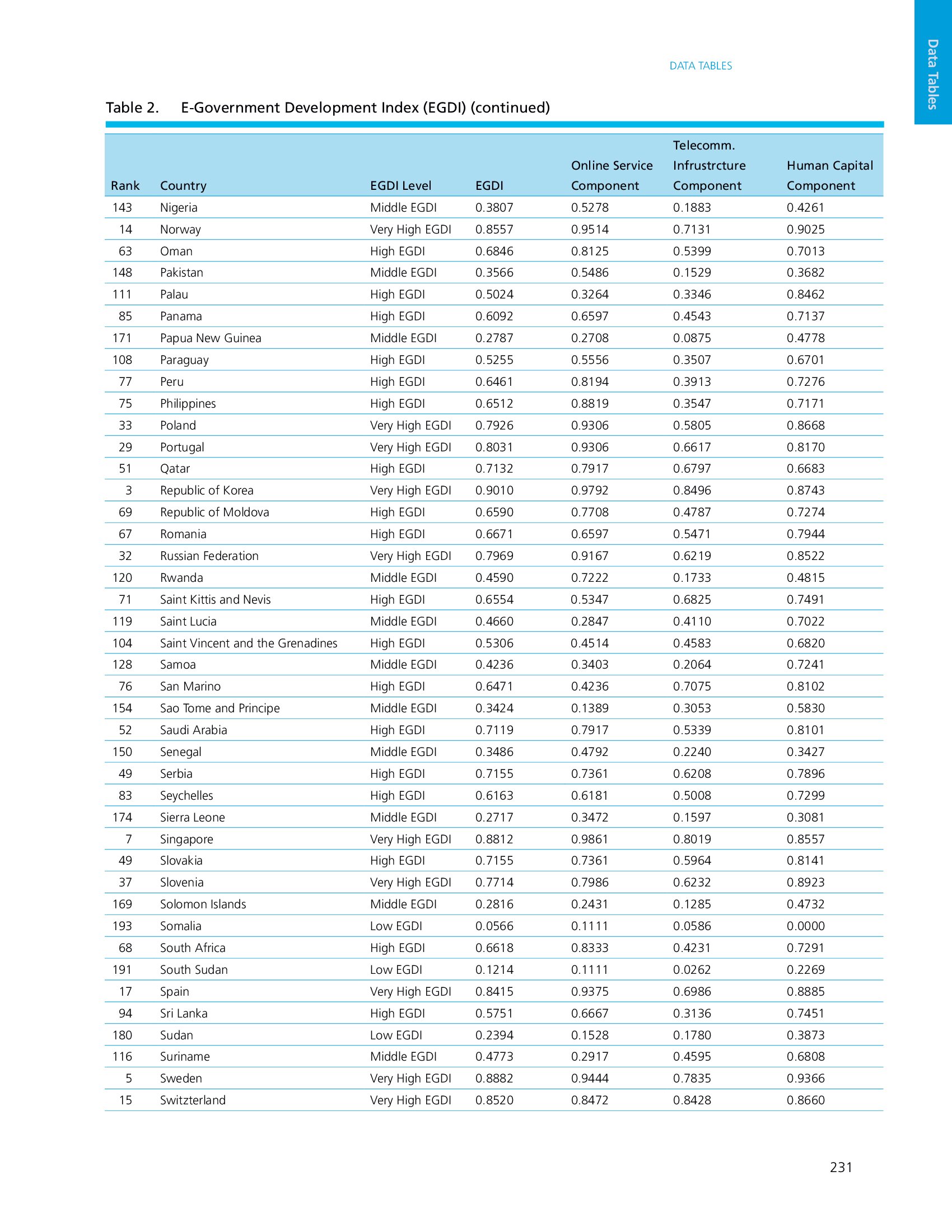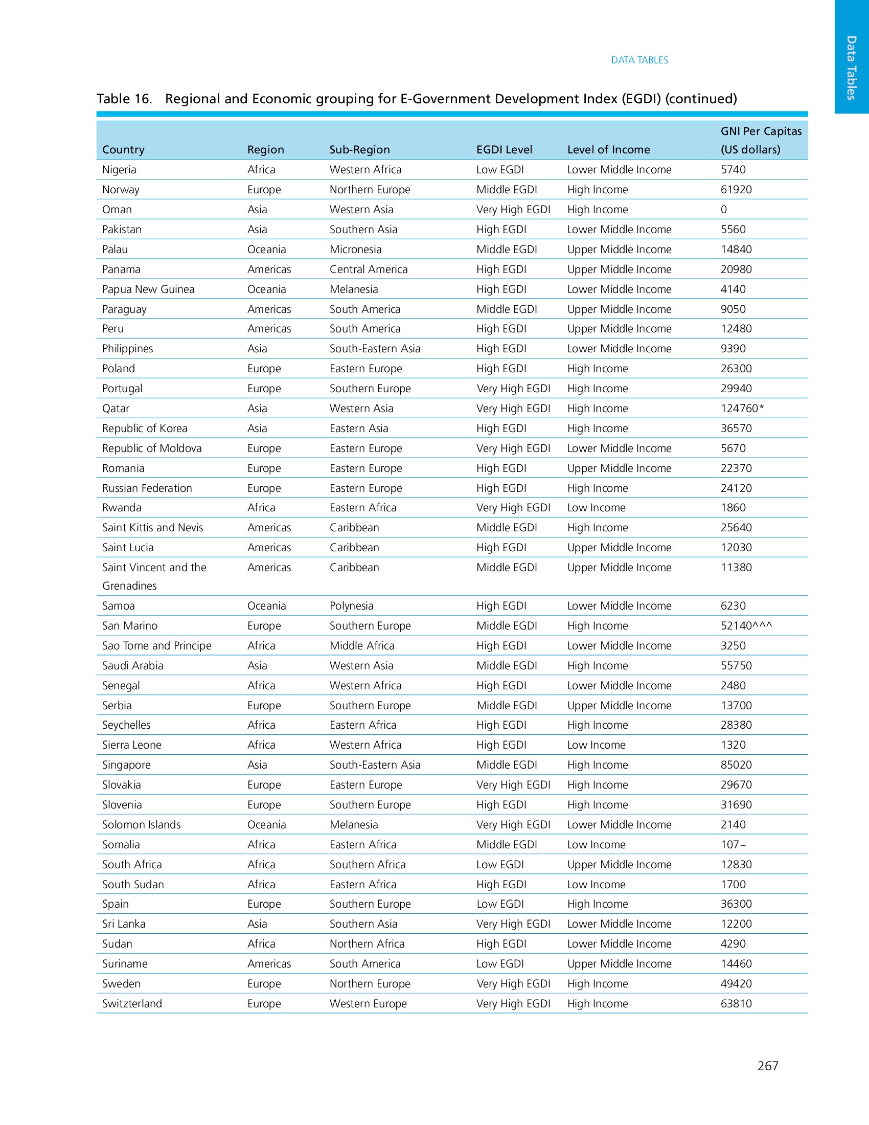 一般来说,国家的收入水平与其电子政务发展水平之间存在正相关关系。高收入国家的EGDI得分非常高。
