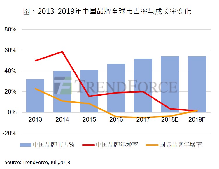 根据全球市场研究机构集邦咨询最新研究结果显示,受惠强劲内需市场,以及近年积极投入智能手机研发、开创品牌价值等因素带动,包含IDH(Independent Design House)在内的中国品牌厂商过去几年高速成长,去年开始更突破过去以韩系、美系等国际品牌为首的智能手机市场格局,囊括逾半的全球市占率。今年面对市场淘汰加剧,中国智能手机品牌透过海外市场的拓展得利,稳占全球过半市场,预估全球市占率将扩大至54%。