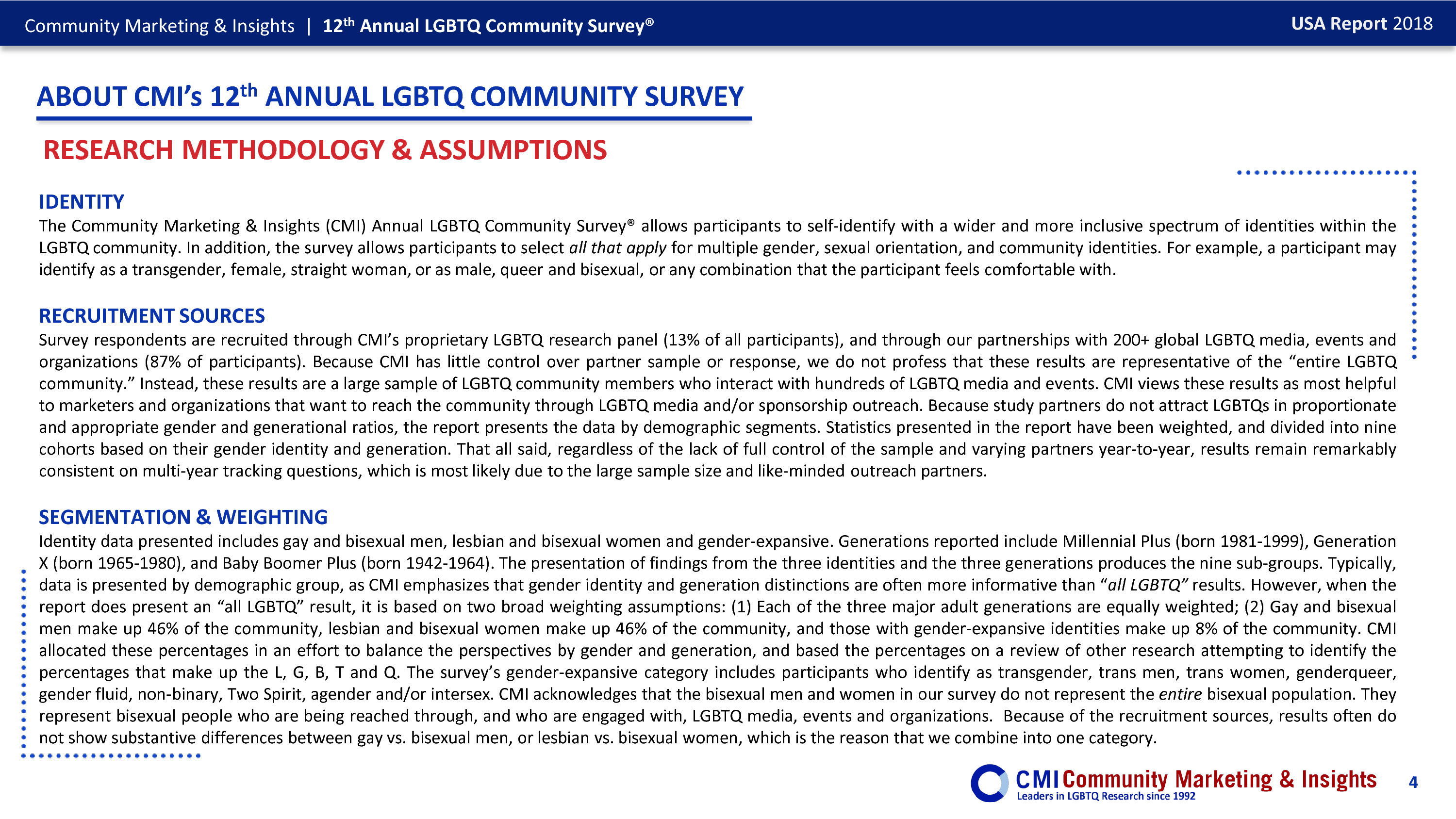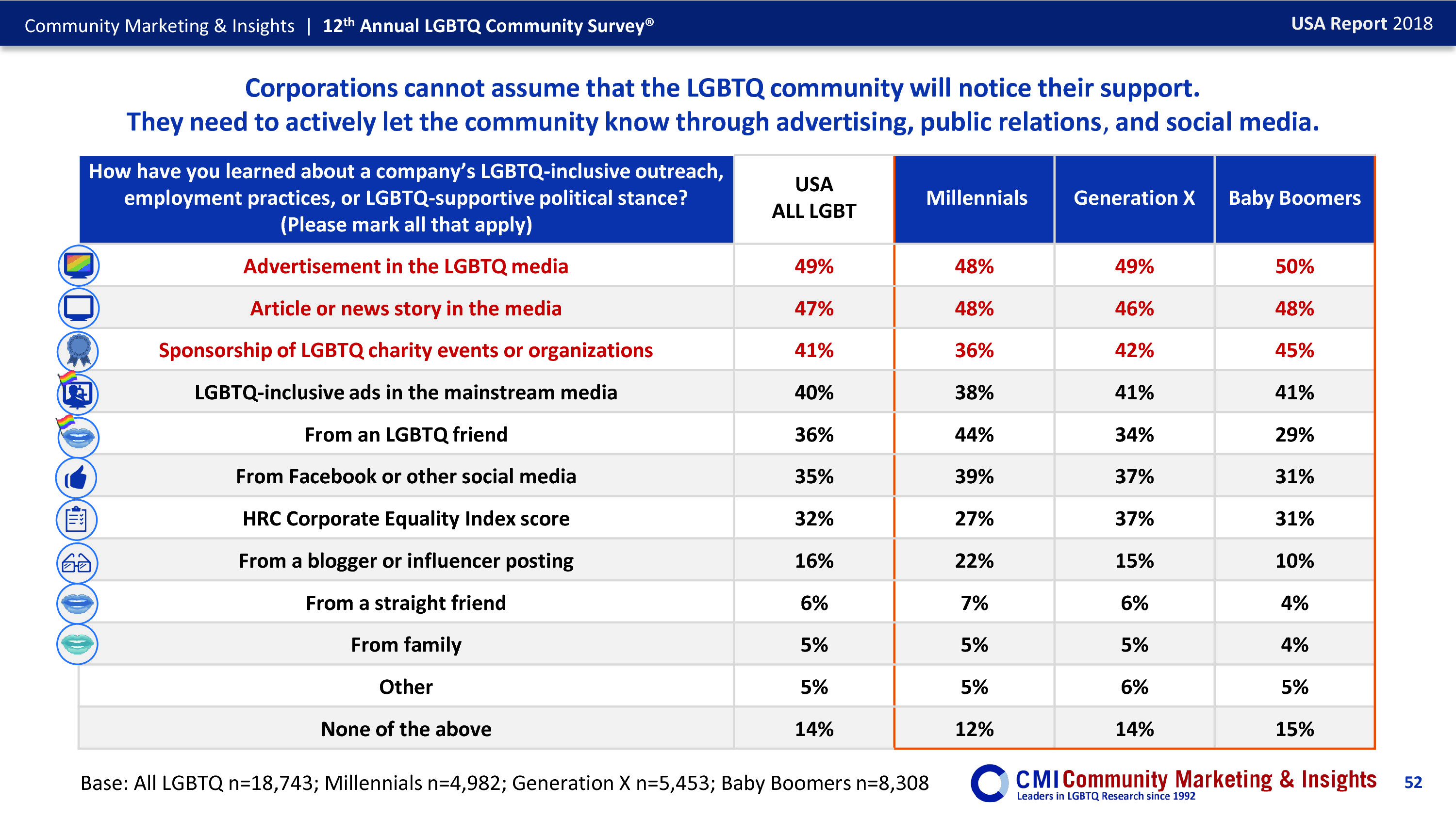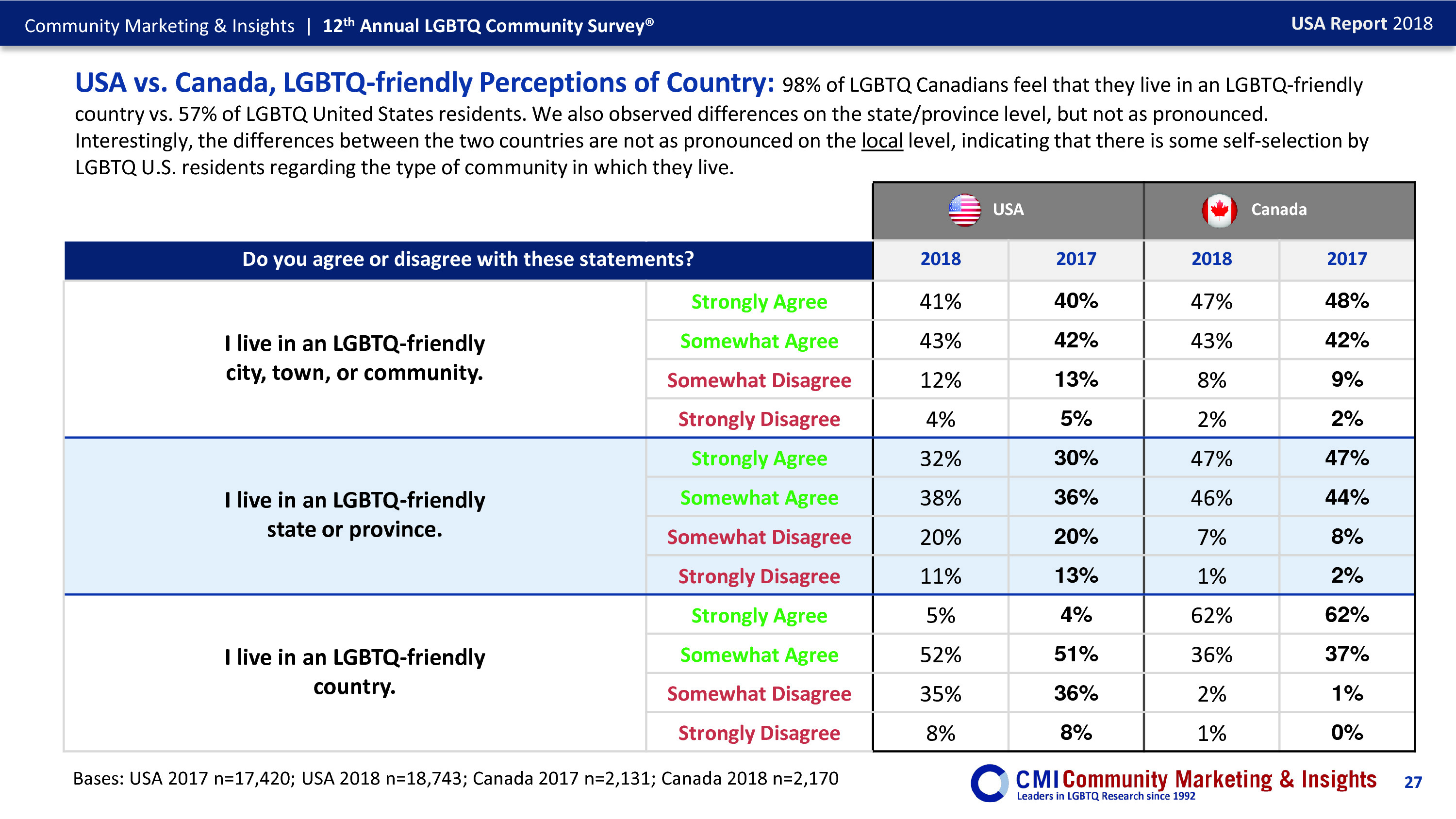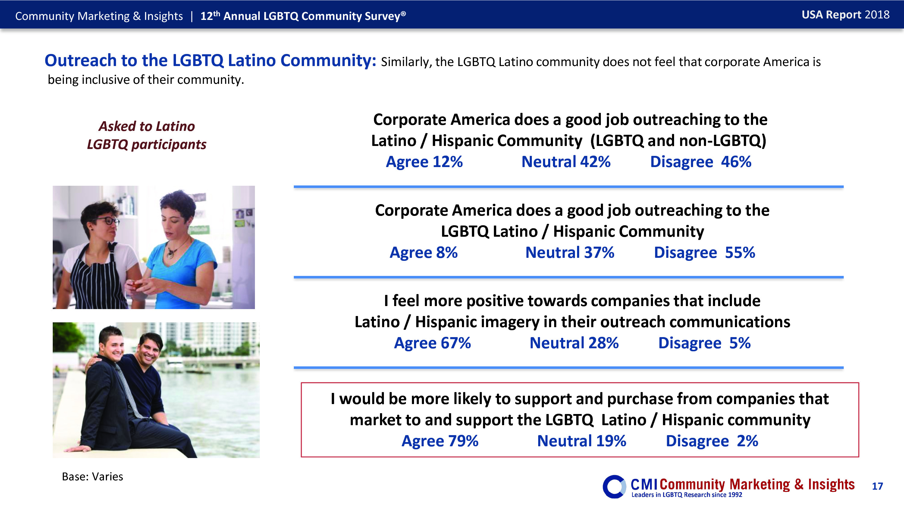 根据CMI的“2018年LGBTQ社区调查报告”,76%的美国受访者认为支持LGBTQ平等的公司将在今年获得更多的业务。85%的美国LGBTQ消费者认为公司支持LGBTQ平等比以往任何时候都更重要,78%的受访者支持那些向LGBTQ社区营销的企业。