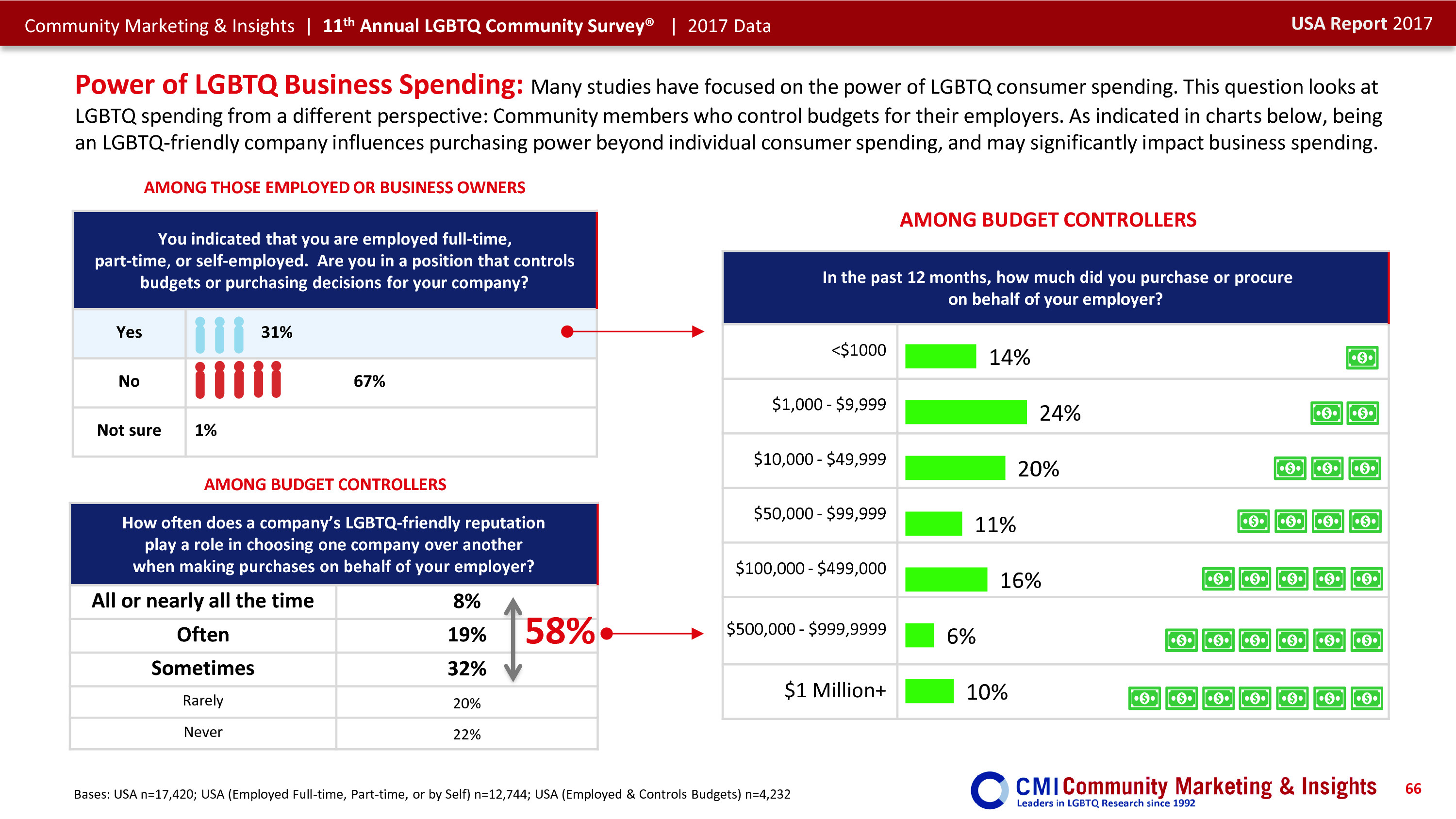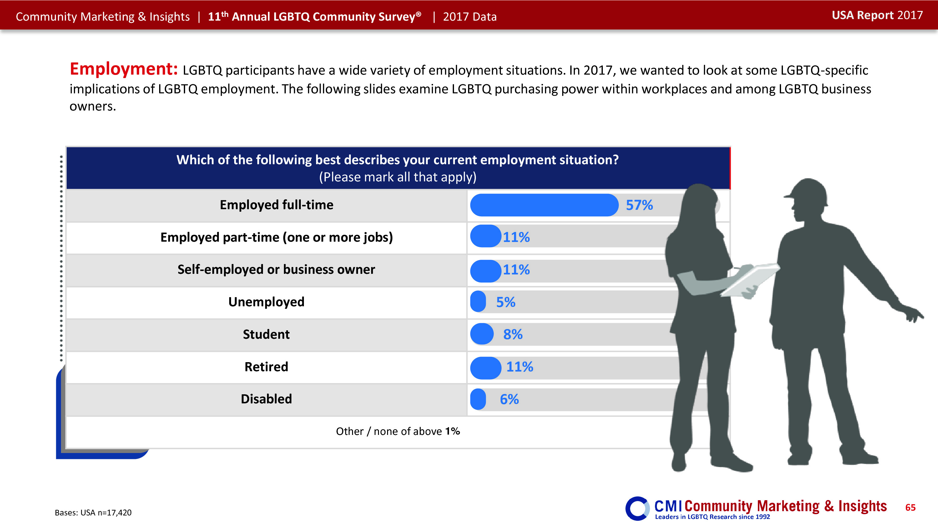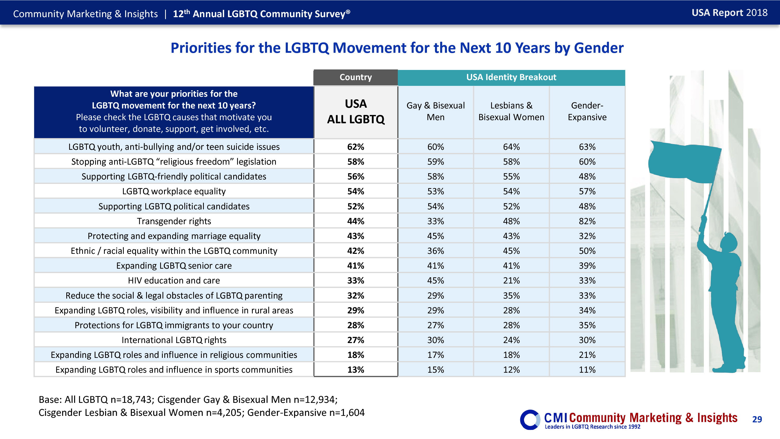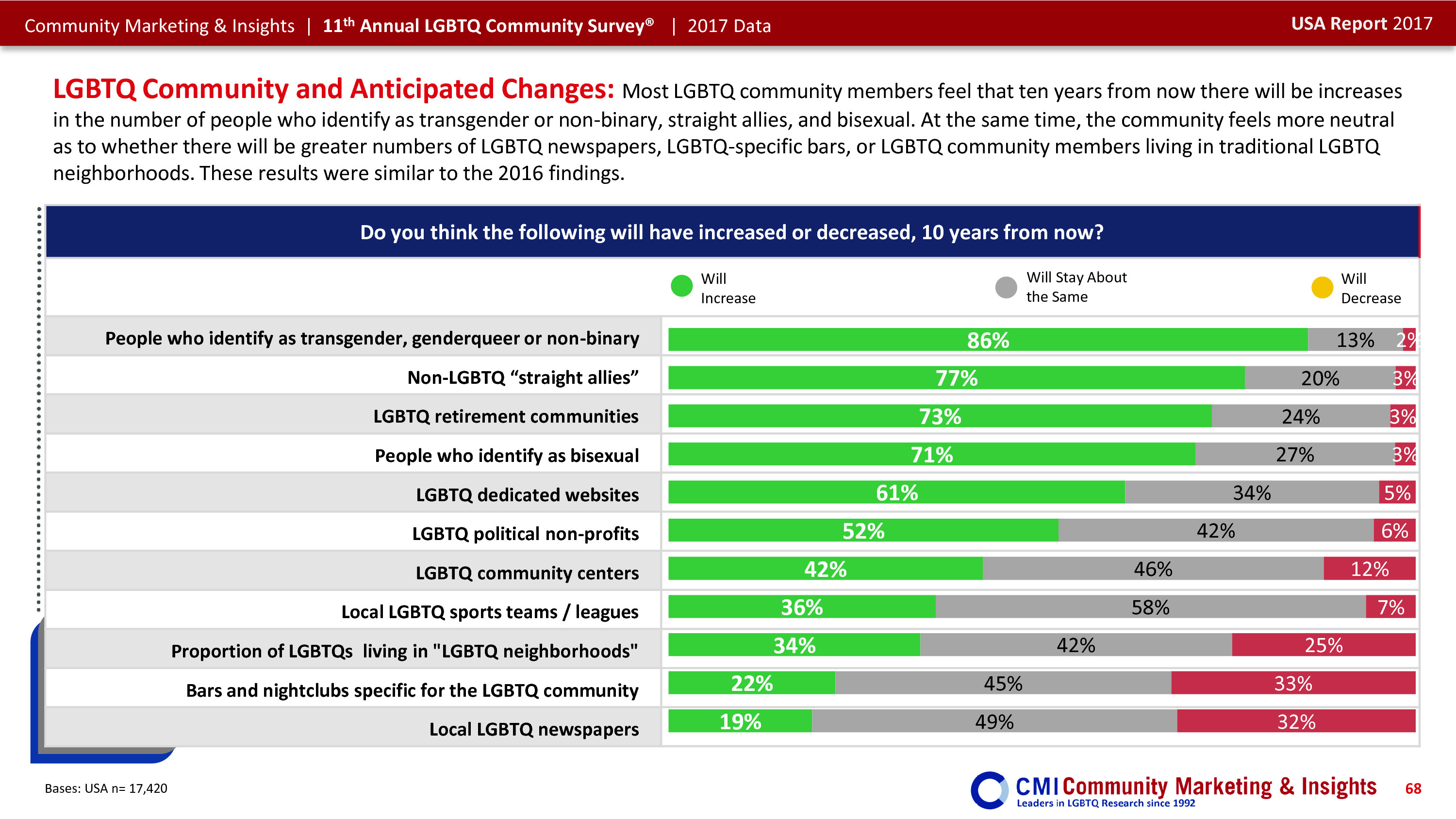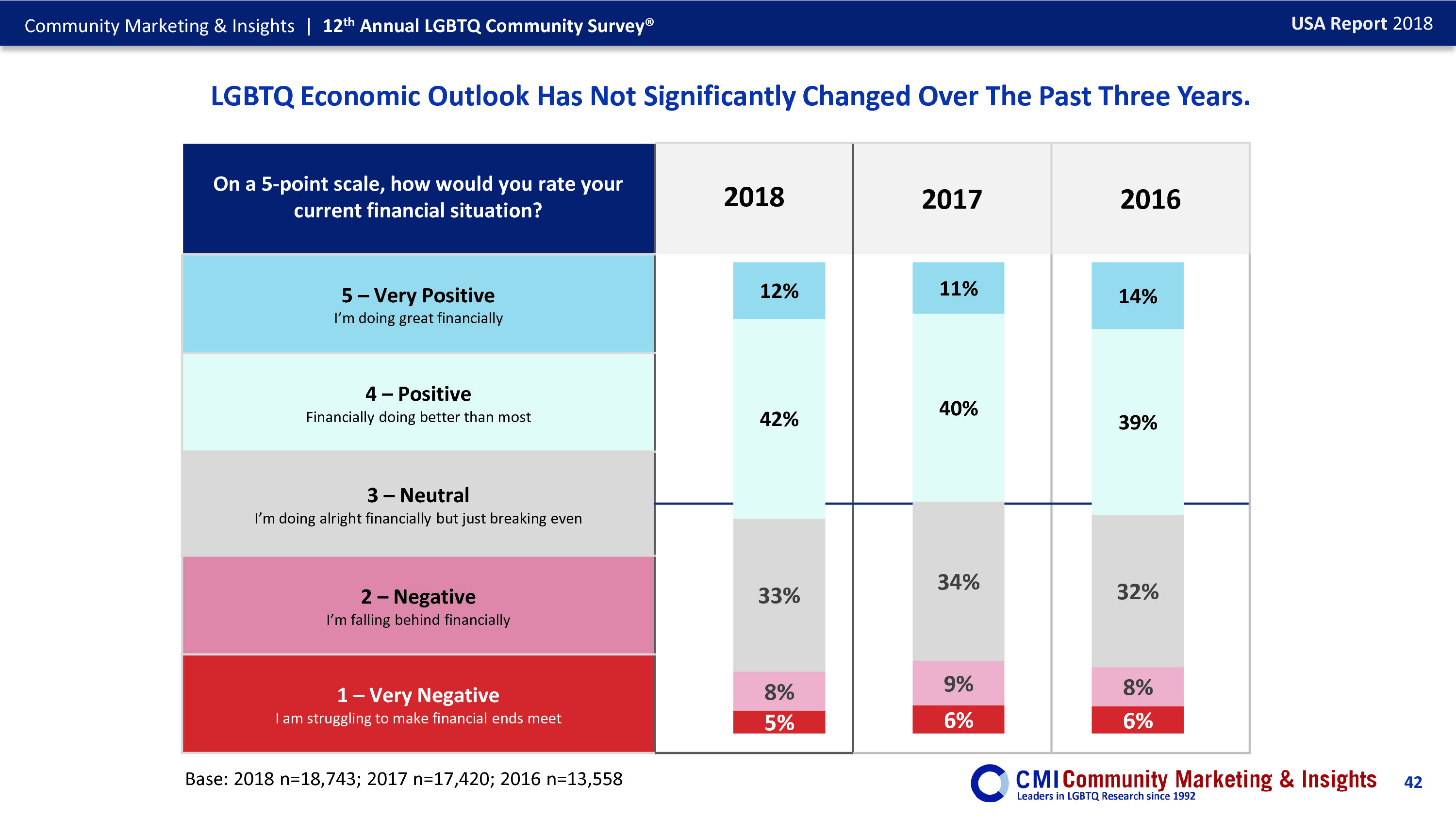 根据CMI的“2018年LGBTQ社区调查报告”,76%的美国受访者认为支持LGBTQ平等的公司将在今年获得更多的业务。85%的美国LGBTQ消费者认为公司支持LGBTQ平等比以往任何时候都更重要,78%的受访者支持那些向LGBTQ社区营销的企业。