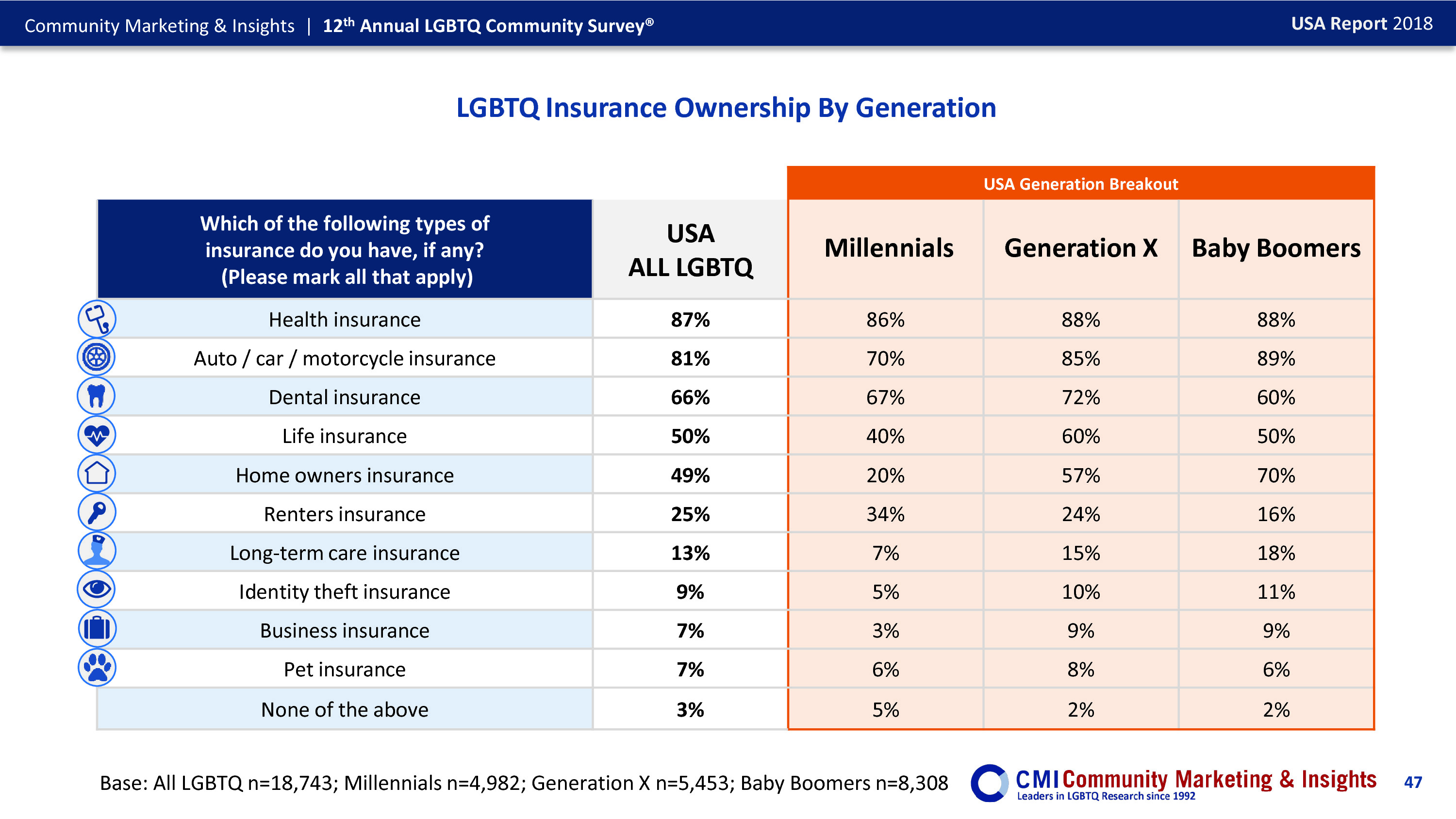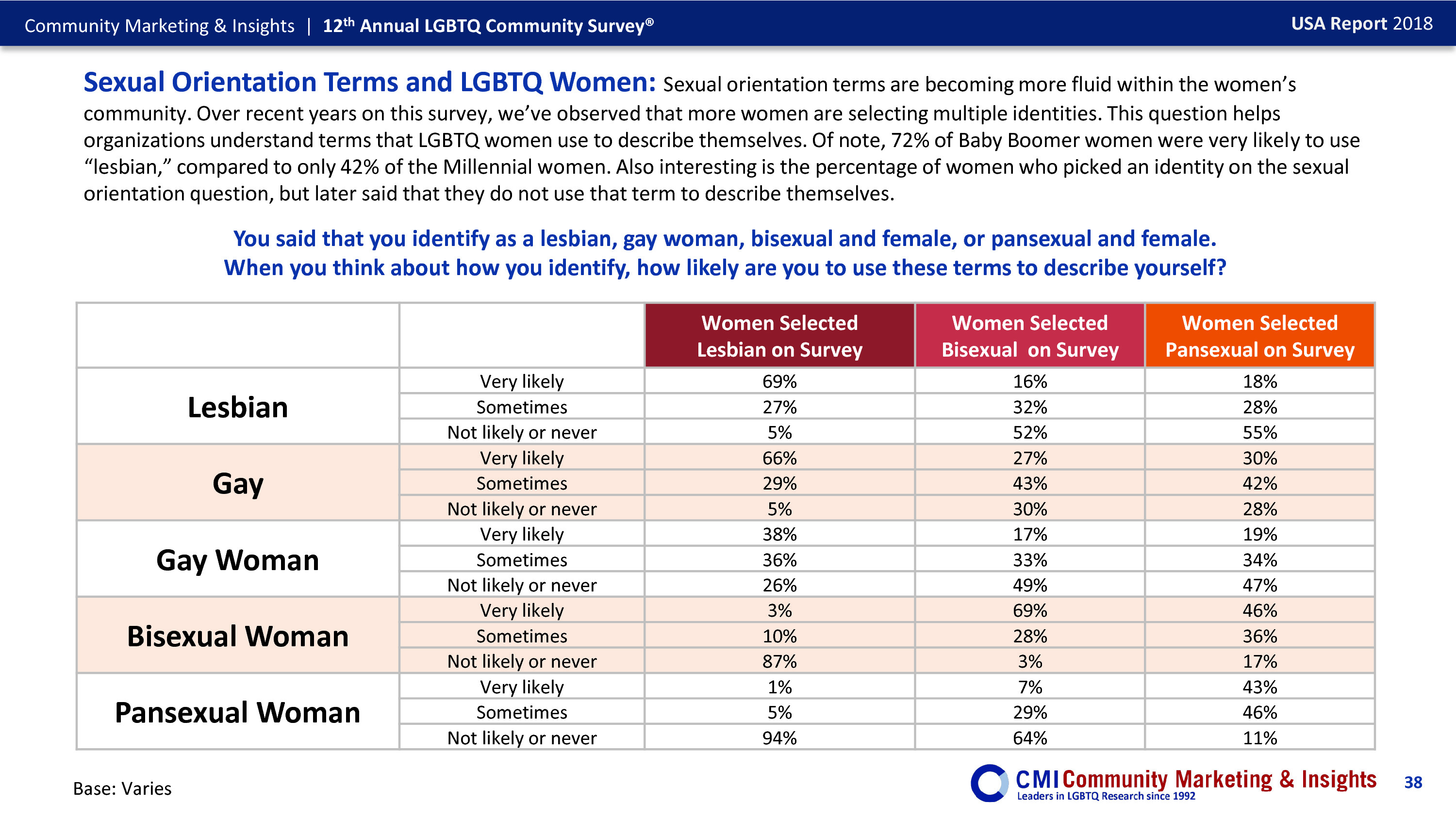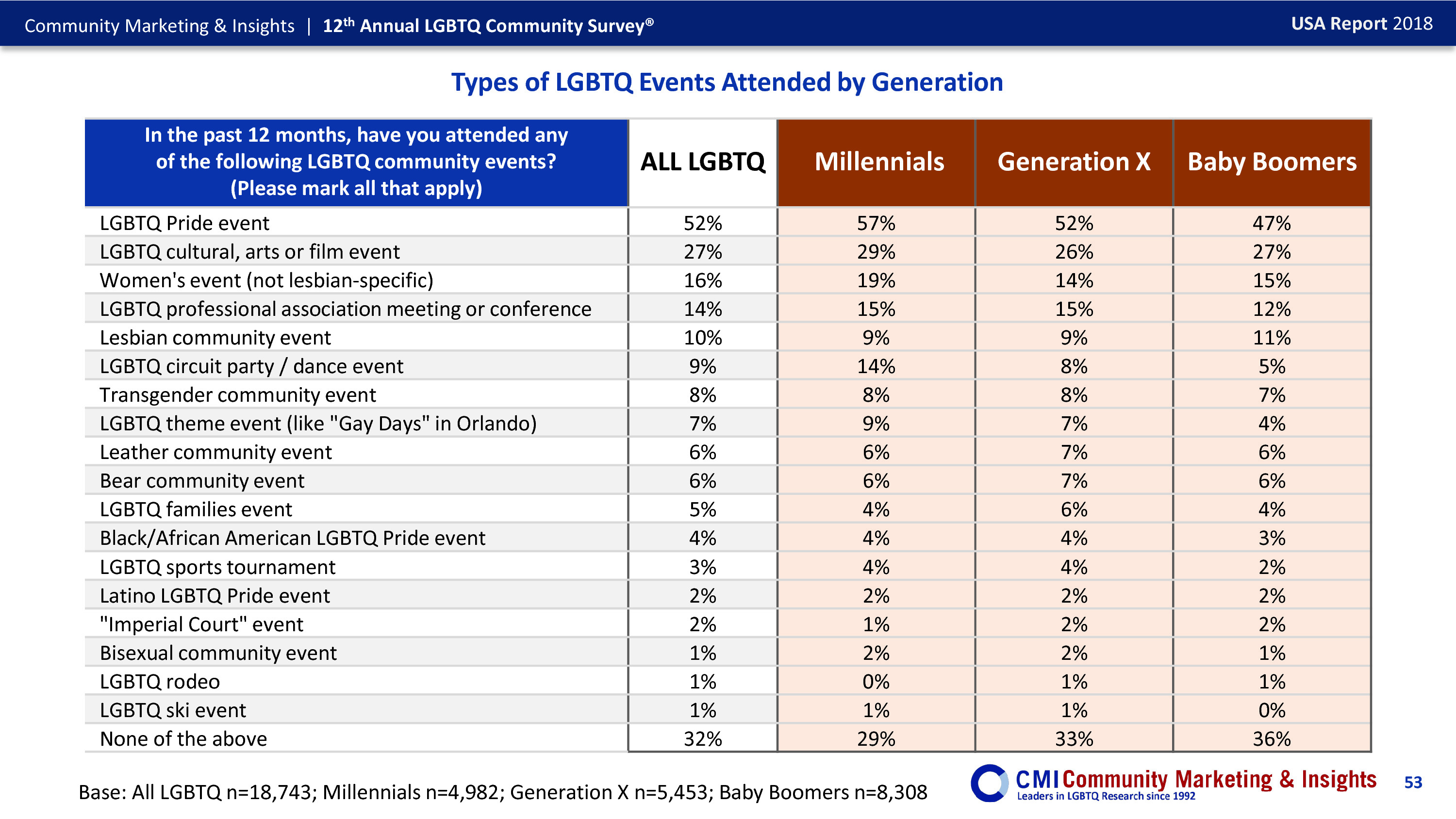 有趣的是,“拉拉”对婴儿潮一代的吸引力远超过千禧一代(52%),而“酷儿”对千禧一代的吸引力(61%)是婴儿潮一代(31%)的两倍。