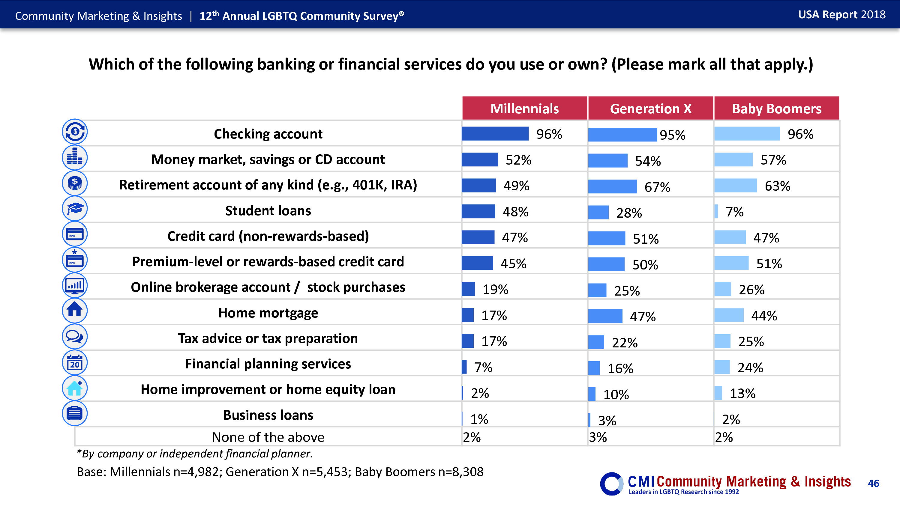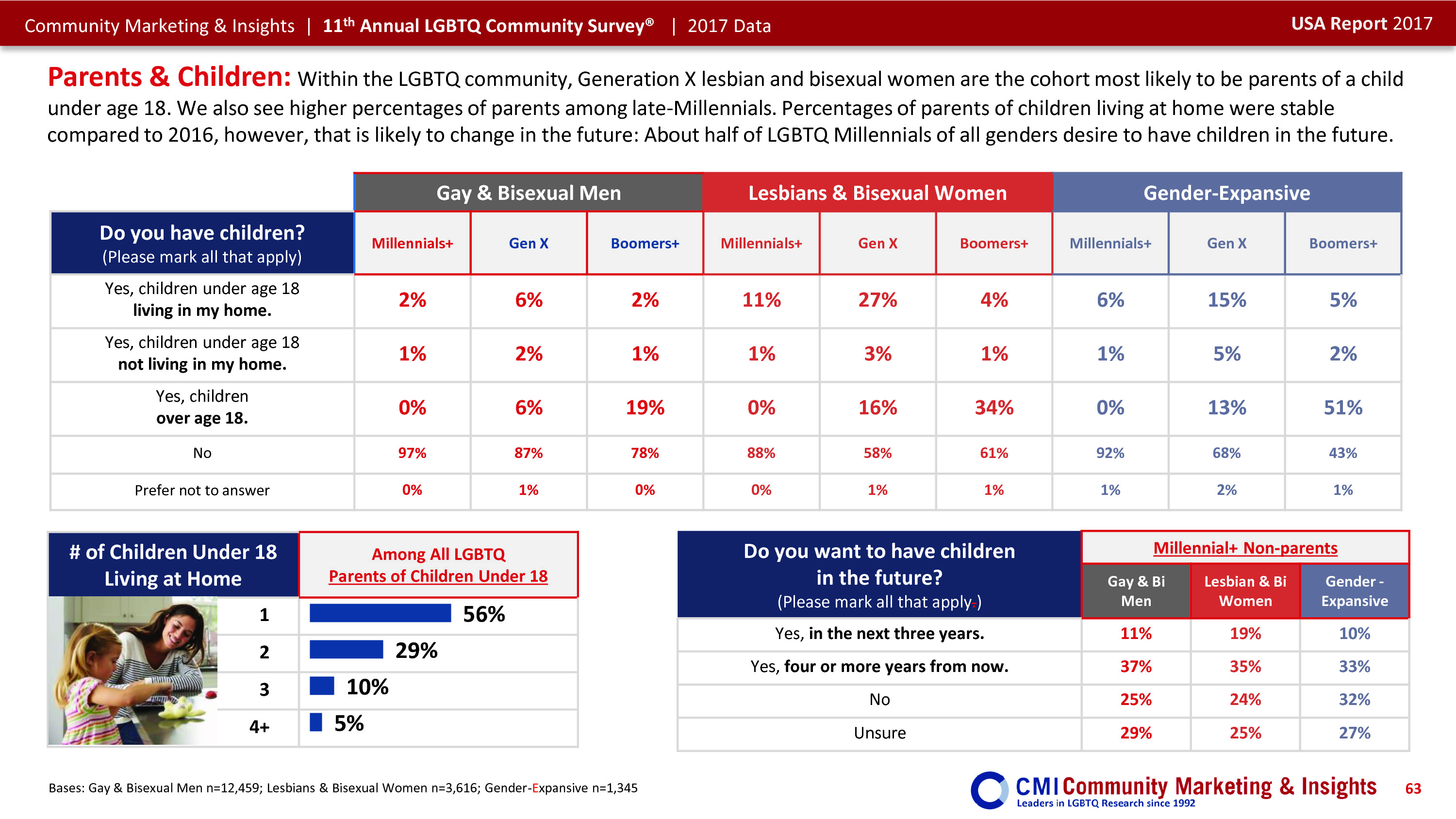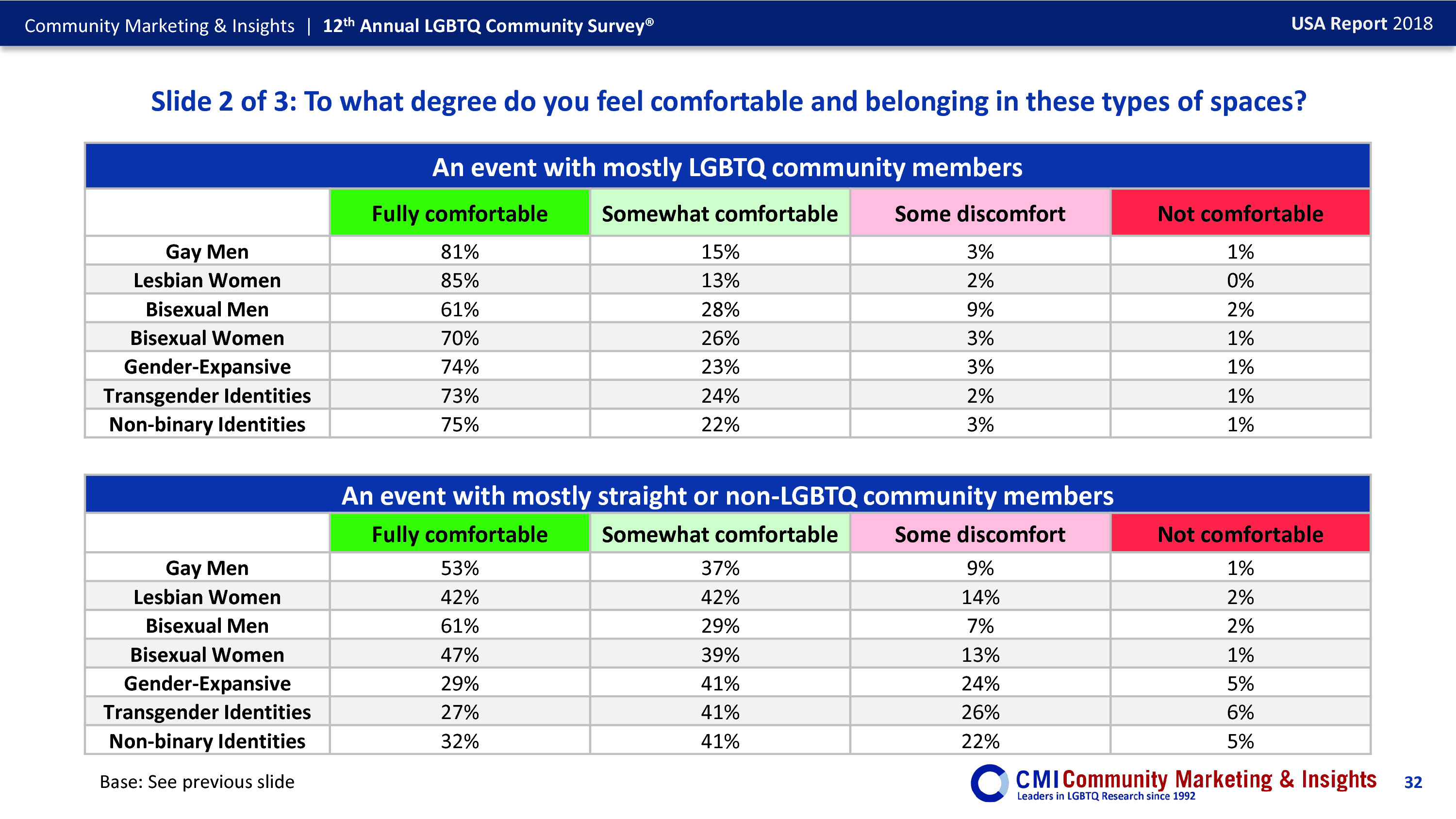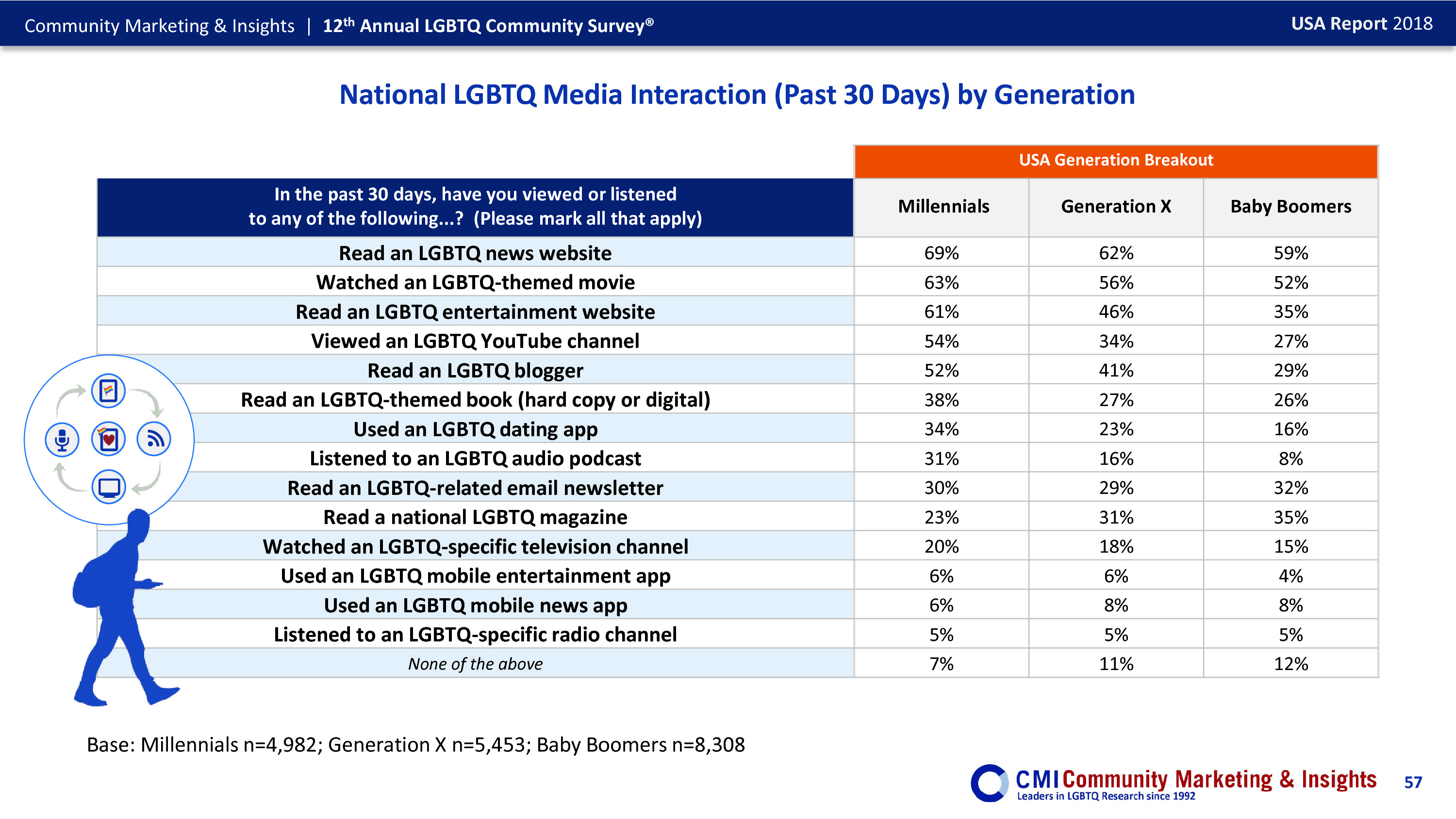 有趣的是,“拉拉”对婴儿潮一代的吸引力远超过千禧一代(52%),而“酷儿”对千禧一代的吸引力(61%)是婴儿潮一代(31%)的两倍。