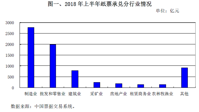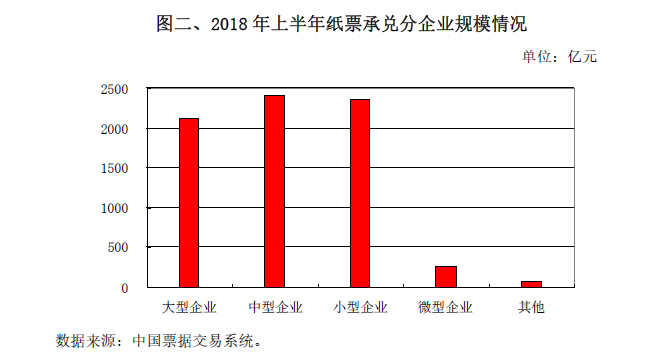 从行业分布看,纸票承兑业务中出票人为制造业企业的占38.54%,批发和零售业企业的占27.57%,建筑业企业占10.91%,三项合计占承兑业务量的77.02%。从企业规模看,出票人为中小微企业的票据占比为69.65%,票据承兑业务已成为中小微企业获得金融支持的重要渠道。