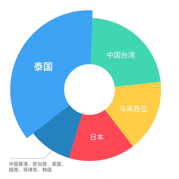 其次分别是:中国台湾、马来西亚、日本、中国香港、新加坡、美国、越南、菲律宾、韩国。