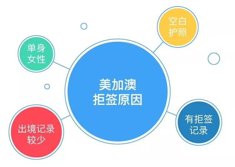 美加澳拒签的原因一般有:单身女性、空白护照、出境记录较少、有拒签记录。