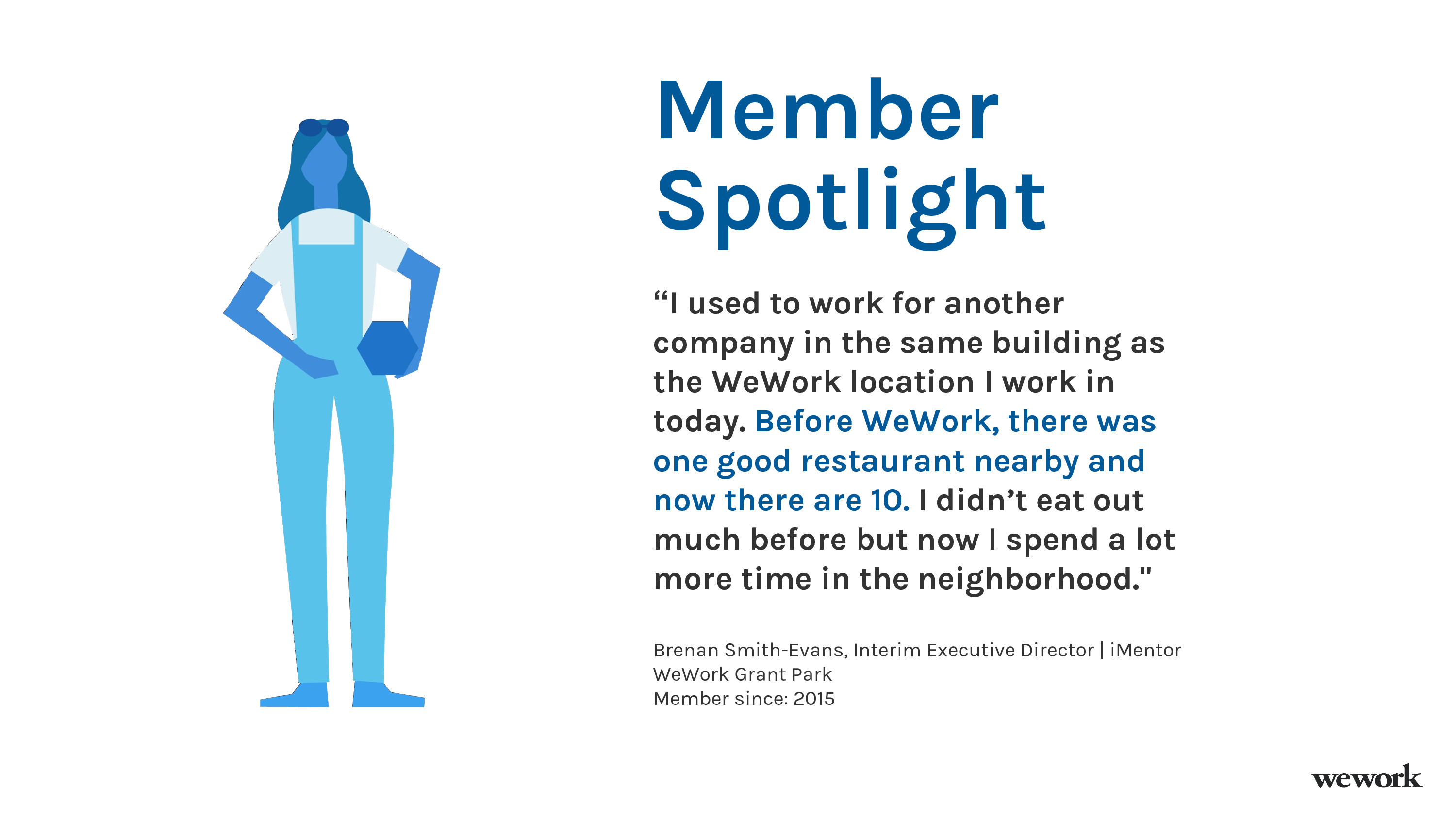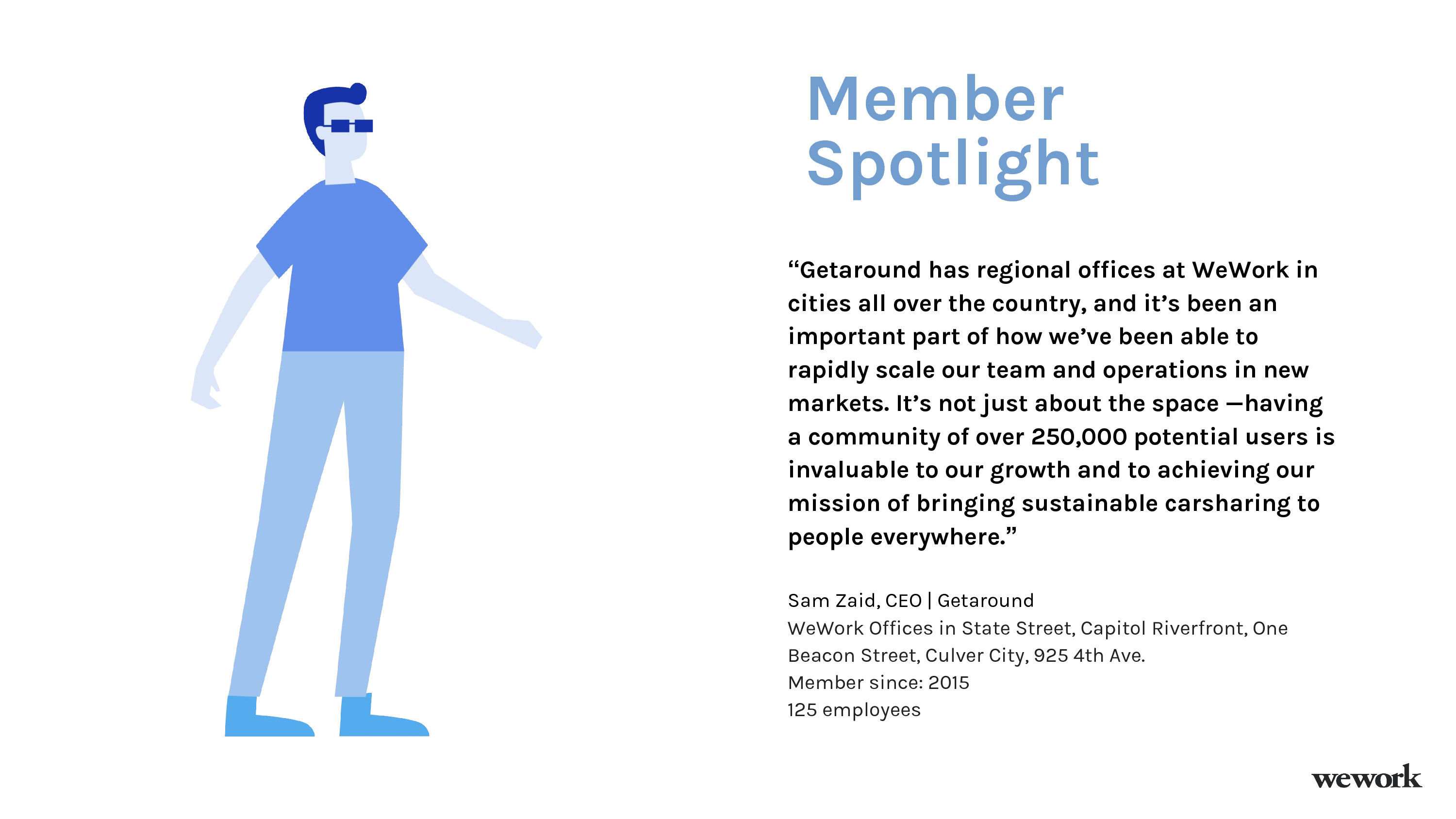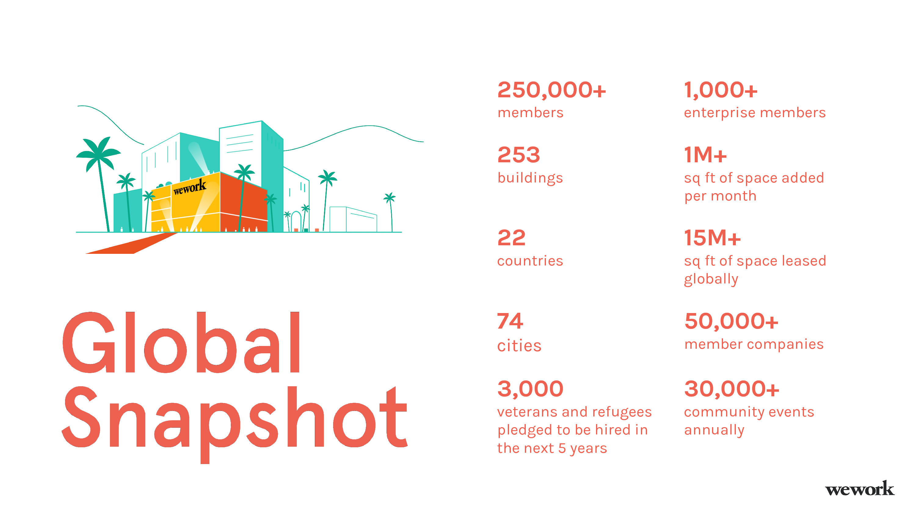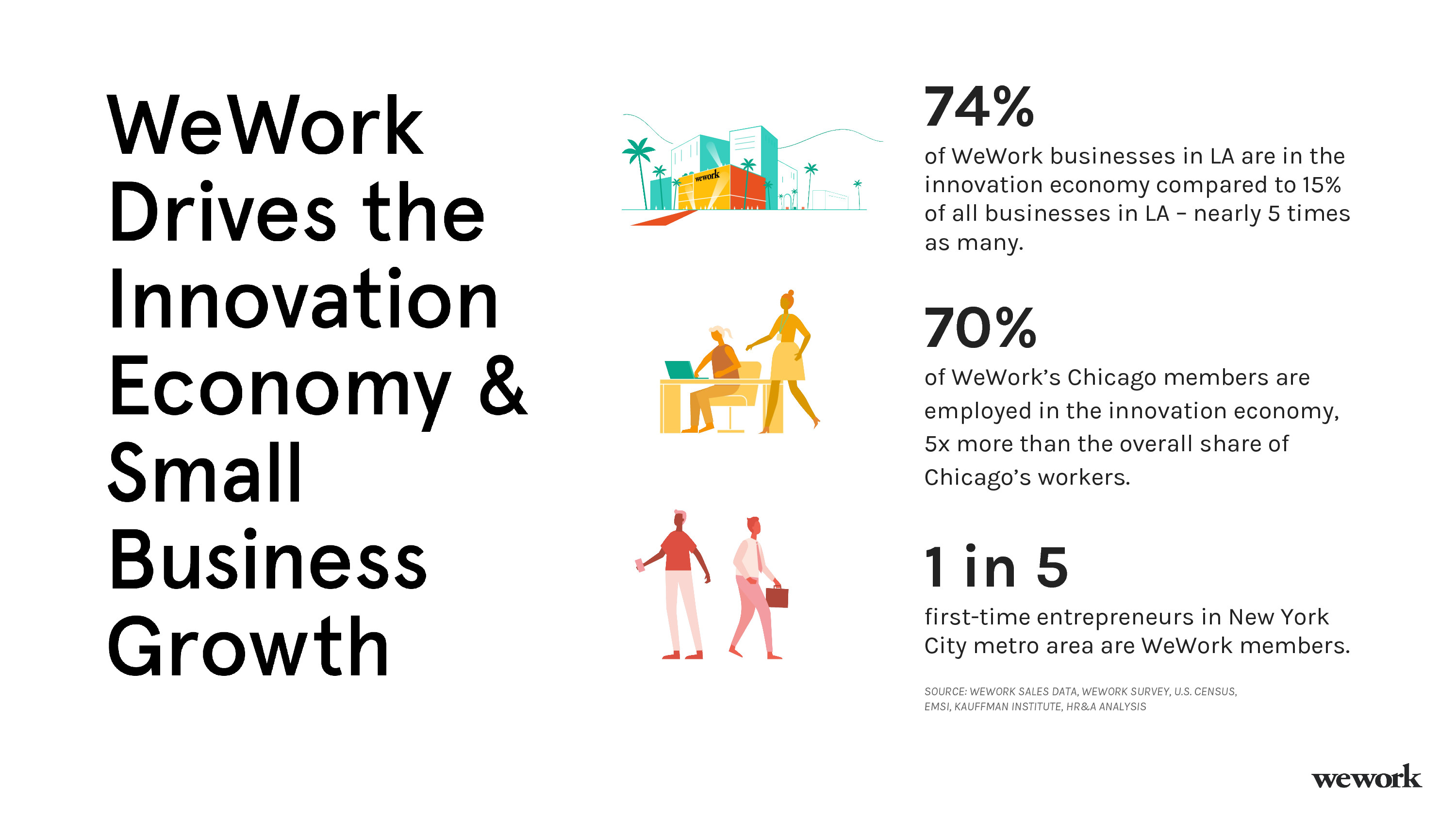 大约75%的WeWork成员是小型企业,包括首次创业者、本地公司和非营利组织,以及不断发展的创业公司。和在家、在咖啡馆或传统办公室相比,WeWork成员企业更具有竞争优势。三年后,成员企业比同行生存率高12%。