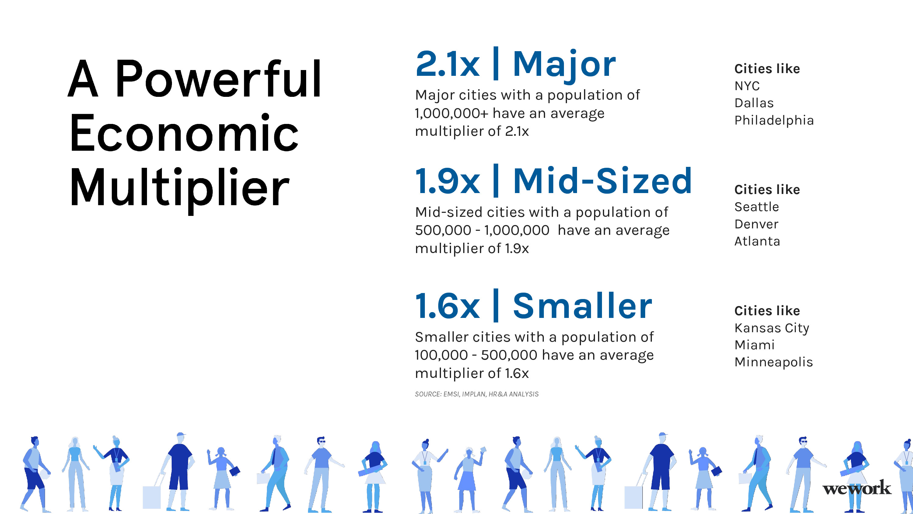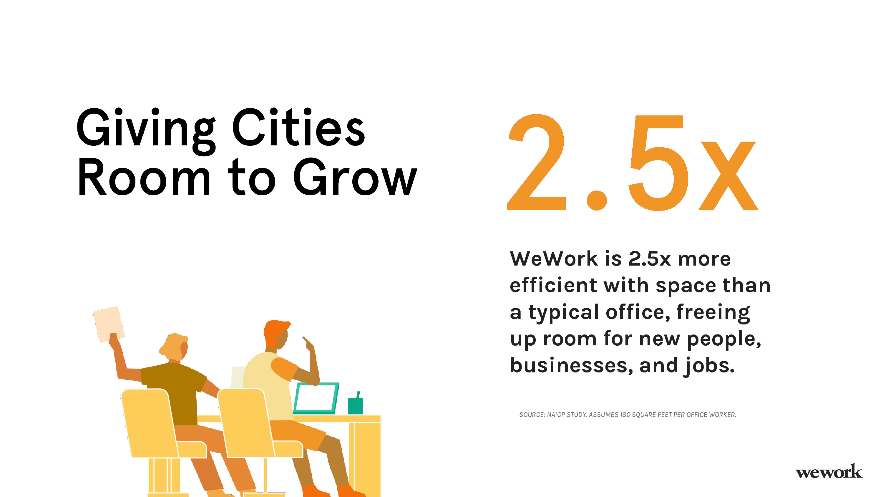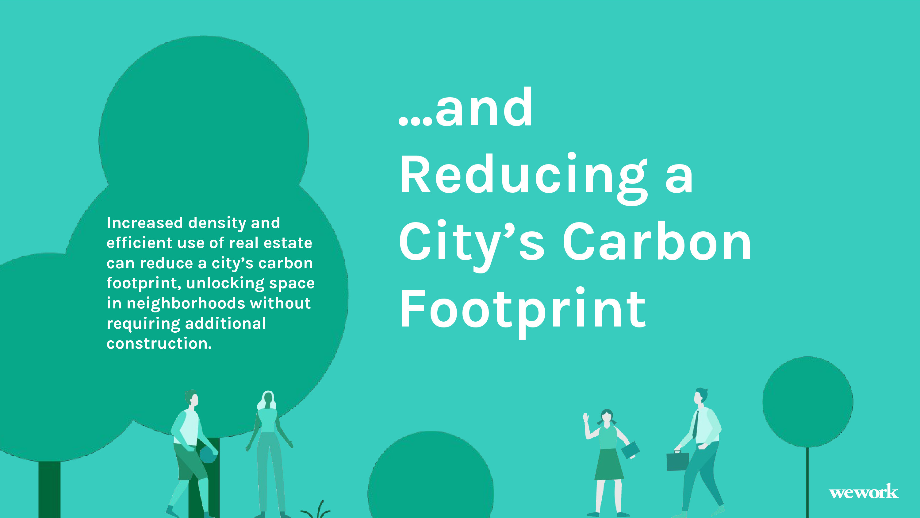 此外,新兴的工作空间效率是典型办公室的2.5倍,这位新员工、企业和工作腾出了空前。增加密度和有效利用房地产可以减少城市的碳足迹,解锁社区空间而无需额外建设。