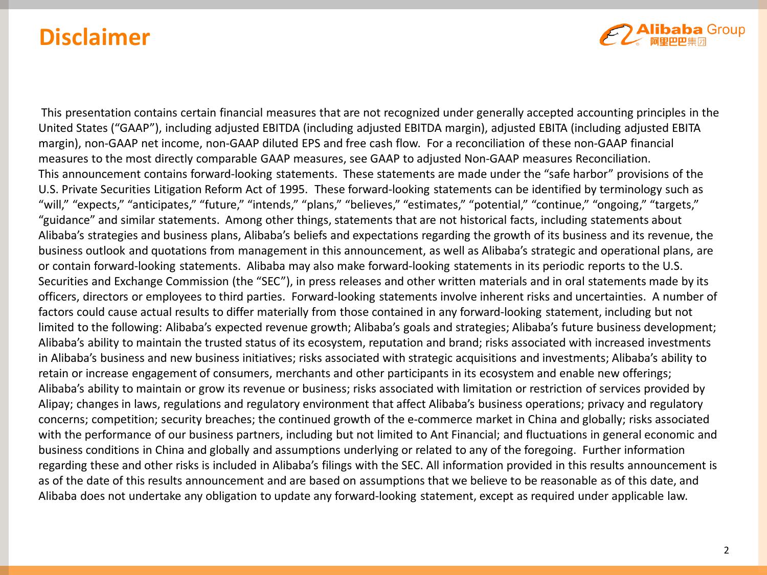 阿里巴巴集团首席执行官张勇表示:“阿里巴巴再度迎来了一个卓越的季度,用户快速增长,不断壮大的生态系统中互动进一步加强。中国零售平台业务继续扩大市场份额,新零售项目带动未来的收入增长,并赋能我们的零售伙伴为消费者提供无缝连接的服务。集团为用户消费全周期提供更多价值及选择的战略持续推进,包括通过数字娱乐及本地服务,触达电商以外的庞大目标市场。我们将继续投资于战略业务机遇及创新,以保障竞争优势和长期增长。”