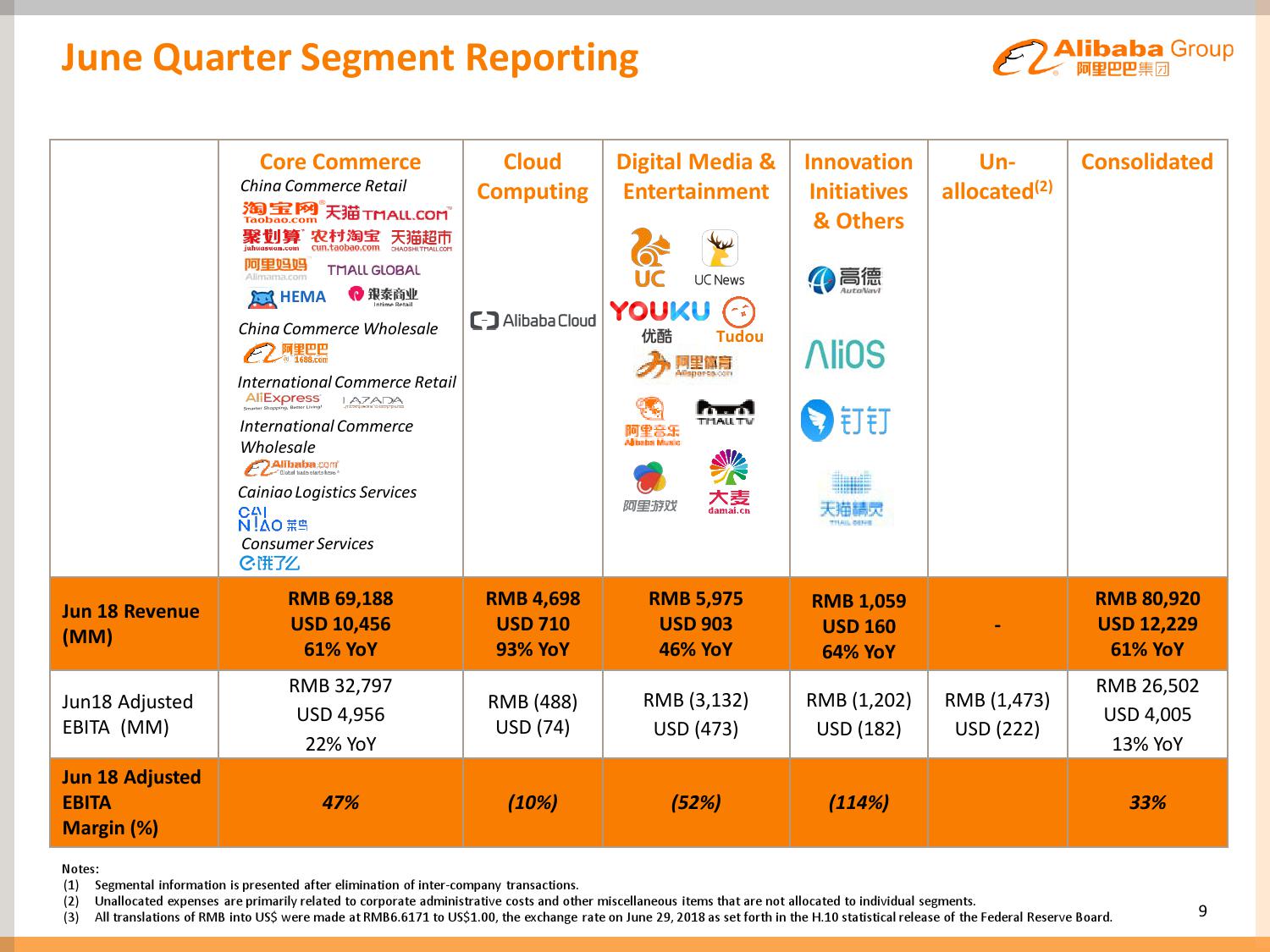 阿里巴巴今日发布了2018年6月30日的2019财年第一季度财报(注:阿里巴巴财年与自然年不同步,从每年的4月1日开始,至第二年的3月31日结束)。