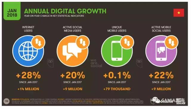 越南的年轻人是东南亚移动设备最活跃的用户之一,越南的独立移动用户普及率为73%,互联网用户普及率为67%。根据Hootsuite和We Are Social的报告,2017年1月至2018年1月期间,越南增加了1400万互联网用户和79,000名独立移动用户。