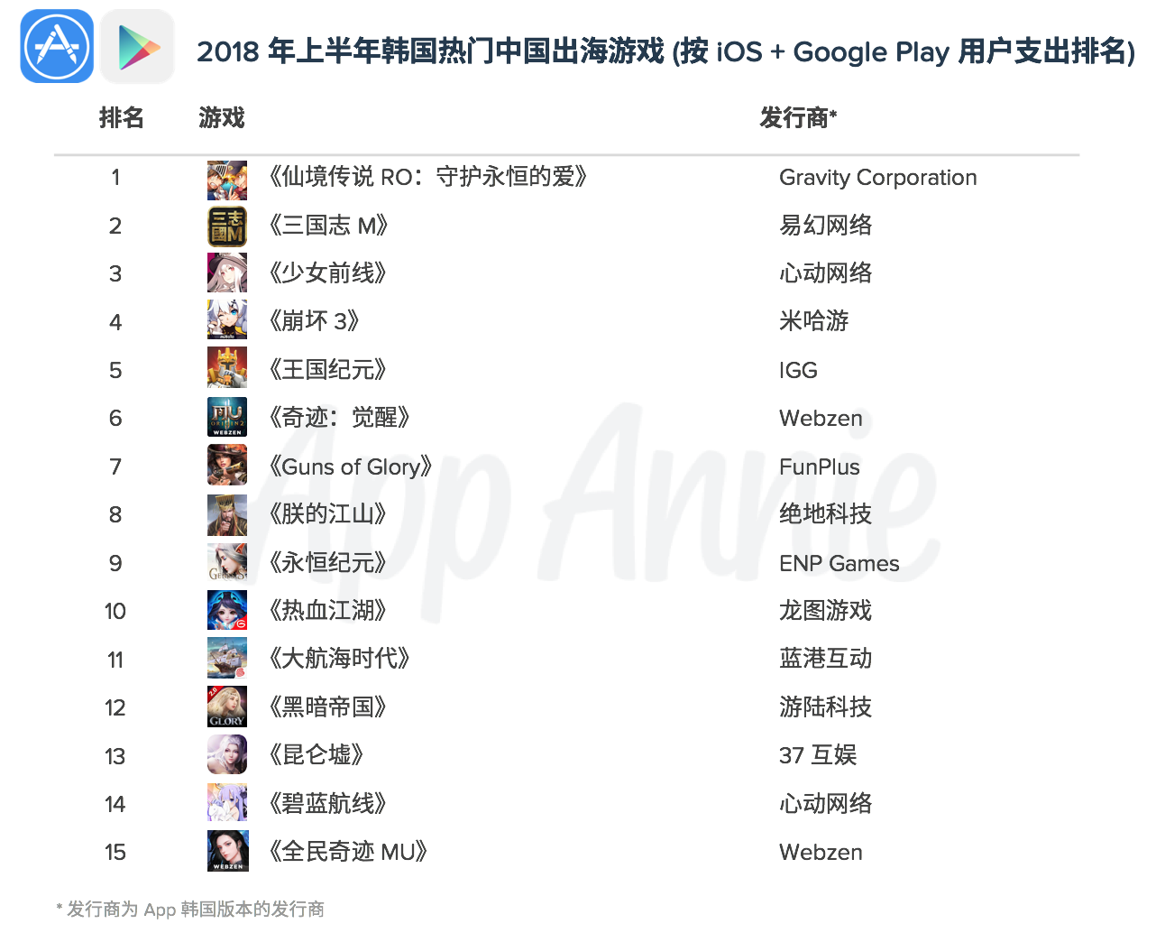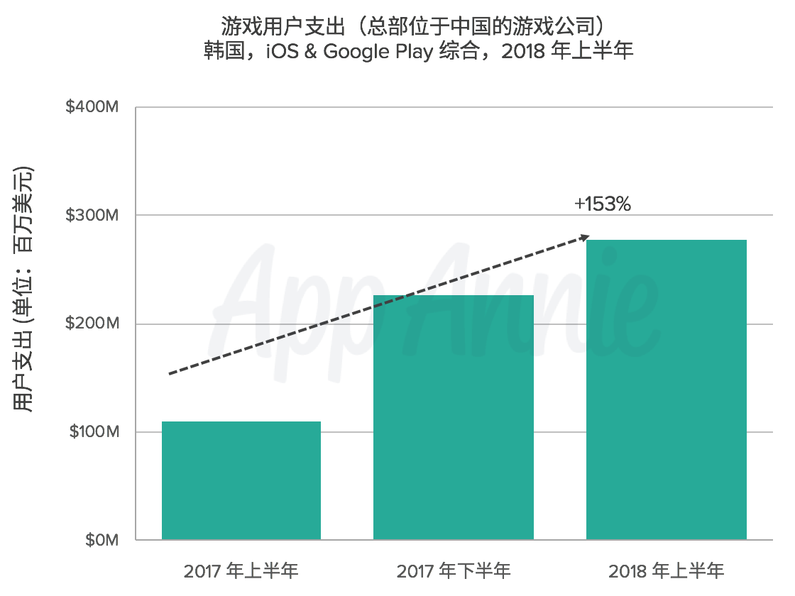 中国游戏开发商在过去的一年中,在韩国的表现突飞猛进。从 2017 年上半年到今年上半年,来自中国的游戏在韩国 iOS 和 Google Play 商店的用户支出增长了惊人的 153%,超过了 2.5 亿美元。