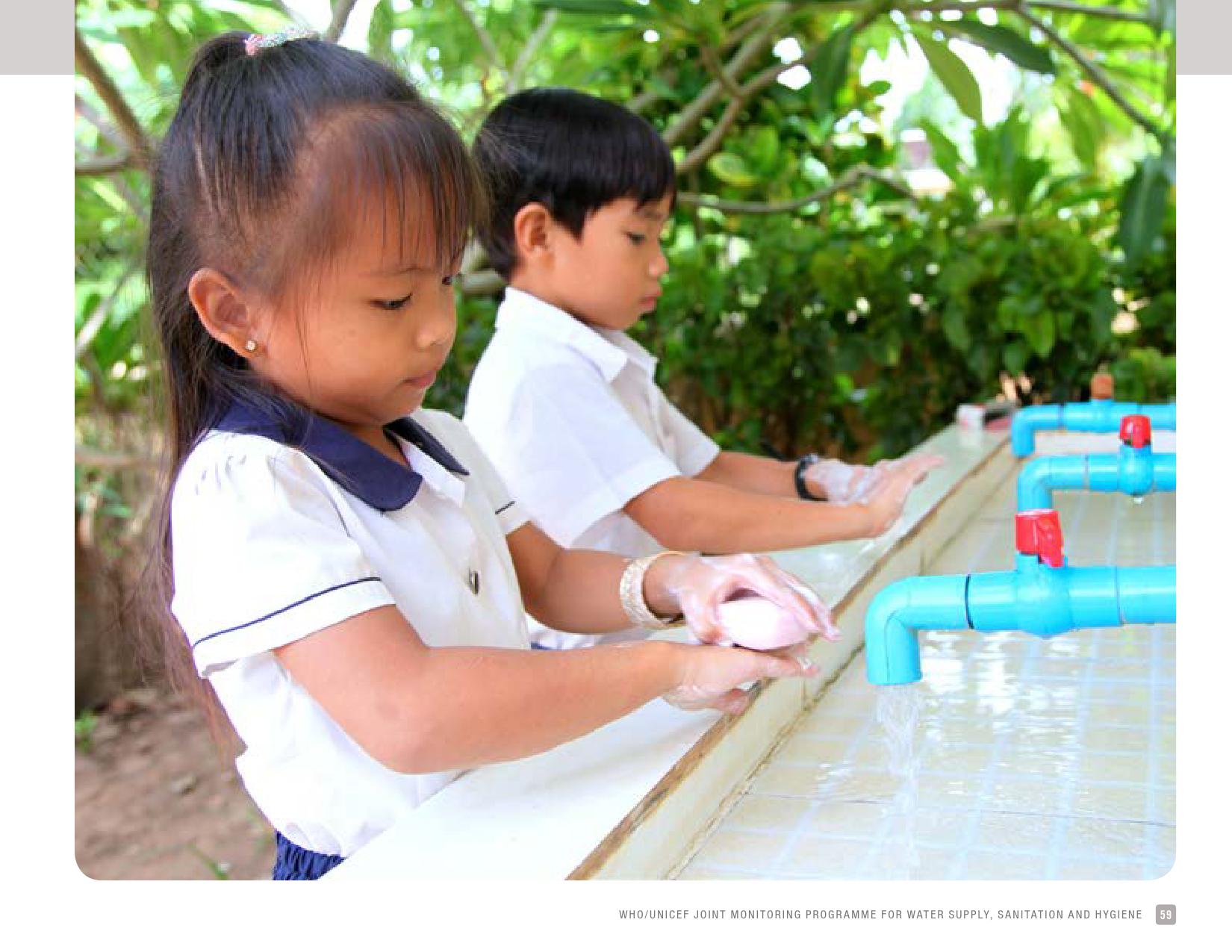 报告强调,洗手与健康有着密切的联系,尤其是在公共或机构环境中。在全球范围内,2016年,全球53 %的学校在调查时具备肥皂和水洗手设施;11 %的人有洗手设施,但是在调查时没有肥皂;36 %的学校没有洗手服务。