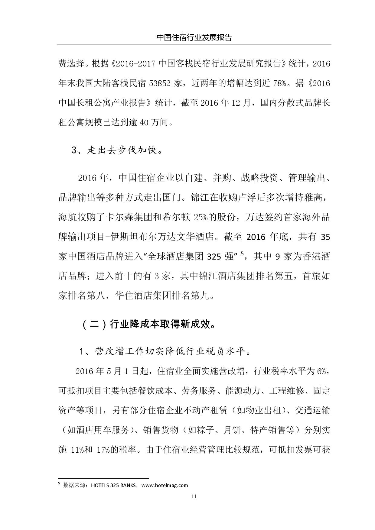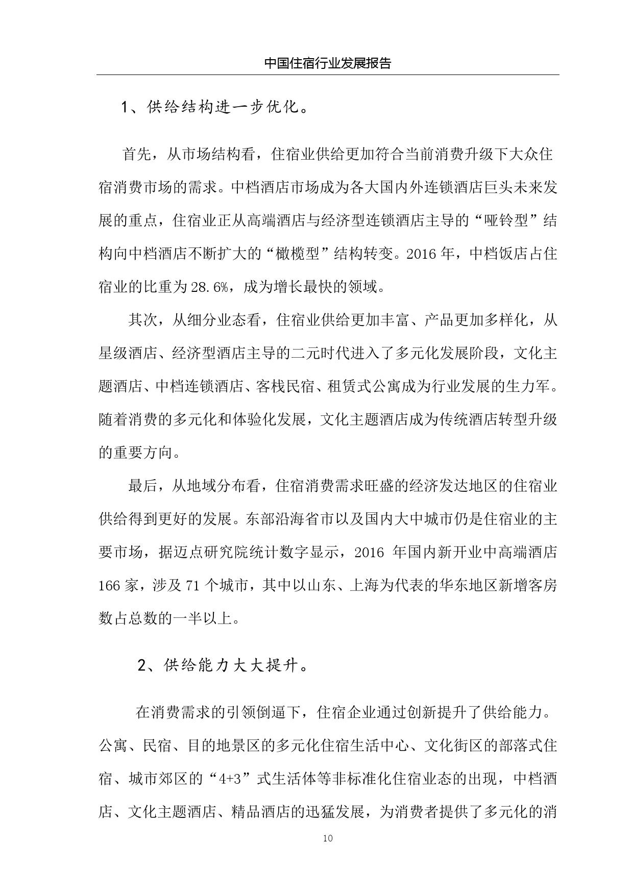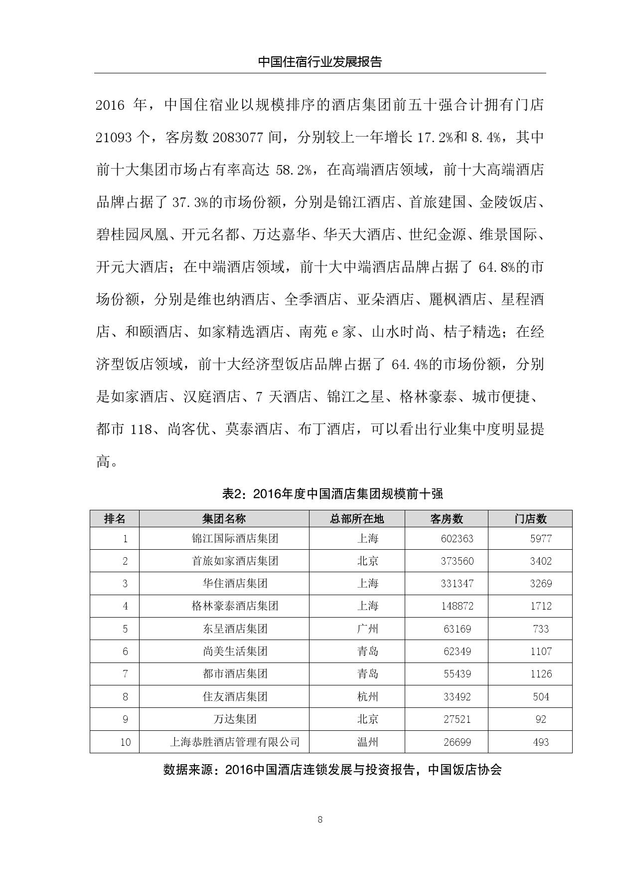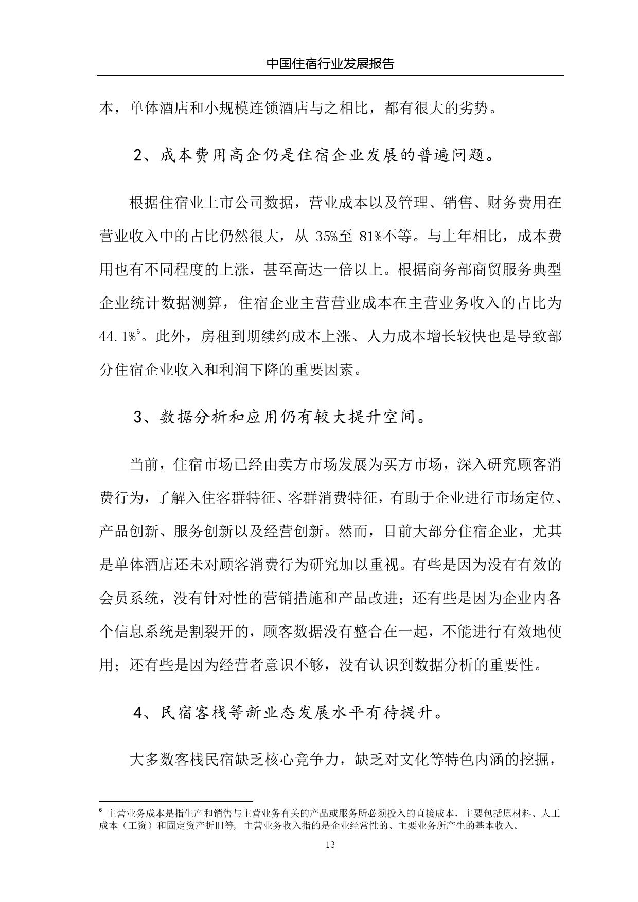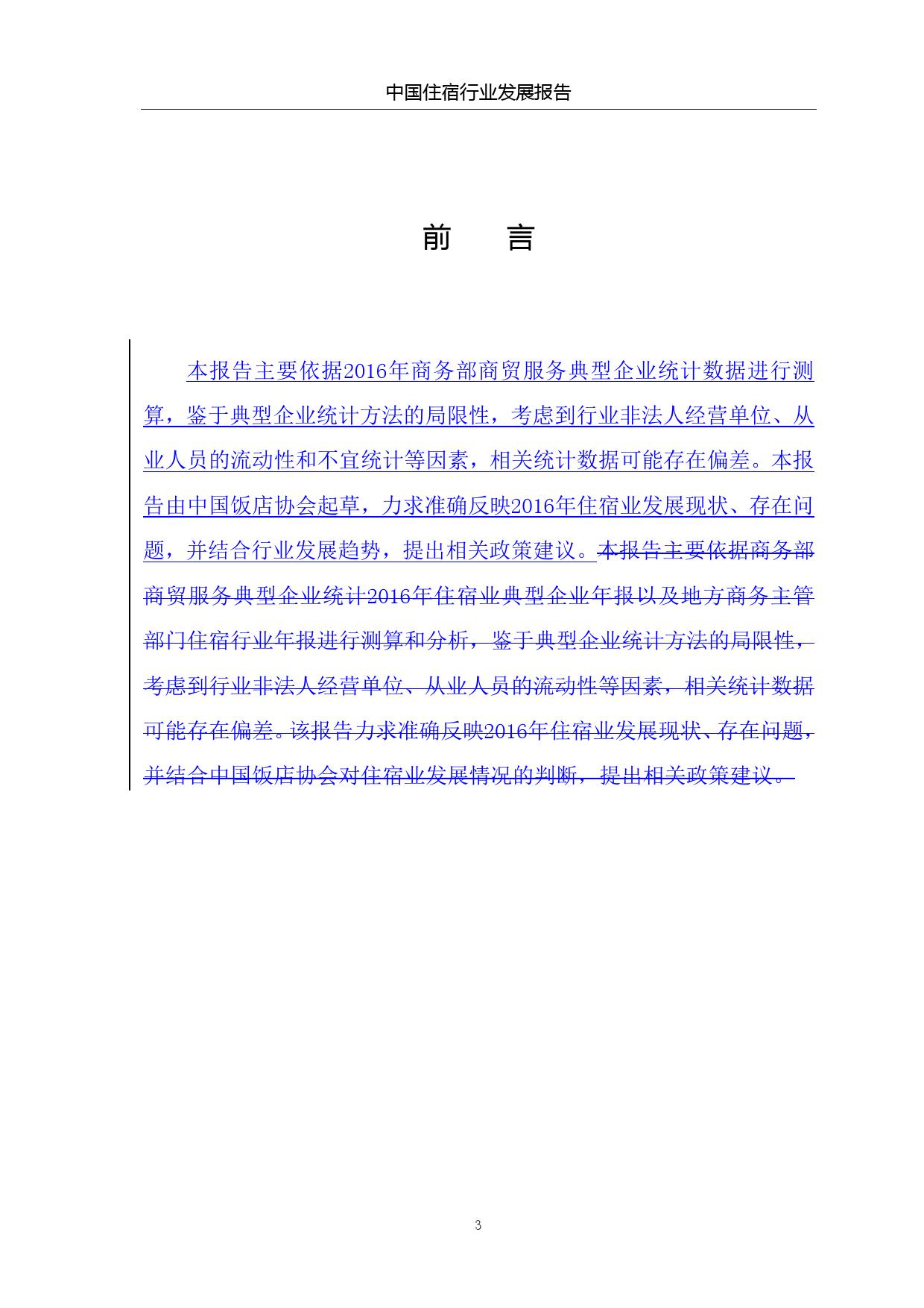 商务部:2017中国住宿行业发展报告 本报告主要依据2016年商务部商贸服务典型企业统计数据进行测算,鉴于典型企业统计方法的局限性,考虑到行业非法人经营单位、从业人员的流动性和不宜统计等因素,相关统计数据可能存在偏差。本报告由中国饭店协会起草,力求准确反映2016年住宿业发展现状、存在问题,并结合行业发展趋势,提出相关政策建议。 PDF版本将分享到199IT交流群,支持我们发展可加入! 更多阅读:CCG:2017中国留学发展报告商务部:2017年全年全国吸收外资情况商务部:2017-2018年中国百货零售业发展报告(中文版)商务部:2019中国电子商务报告(182页)商务部:2018中国电子商务报告商务部:2017-2018年中国零售行业发展报告商务部:2016-2017年中国零售行业发展报告商务部:2017年中国电视购物行业发展报告商务部:2017年Q3中国购物中心发展指数商务部:2020年1-5月我国汽车出口37.3万辆商务部:中国数字服务贸易发展报告 2018在中国,只抓一个权健是不够的国际唱片业协会:2017全球音乐报告美国电影协会:2017年电影市场报告GSMA:2017移动经济产业报告