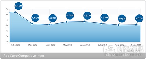 尽管许多人认为苹果发布iPhone 5会重演iPhone 4S出炉时的用户获取成本上升现象(当时为1.47美元),但实际上9月份的忠实用户获取成本已降至1.13美元(注:2011年5月份苹果取缔非自然下载措施时iOS忠实用户获取成本为1.1美元,2012年1月份假期结束时这一数据为1.14美元)。