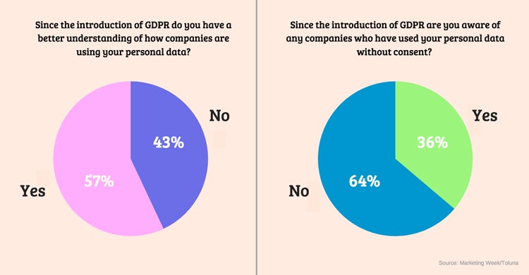 Toluna调查了超过1,000名消费者发现,自从GDPR于5月25日实施以来,57%的消费者认为他们对公司如何使用他们的个人数据有了更好的了解。