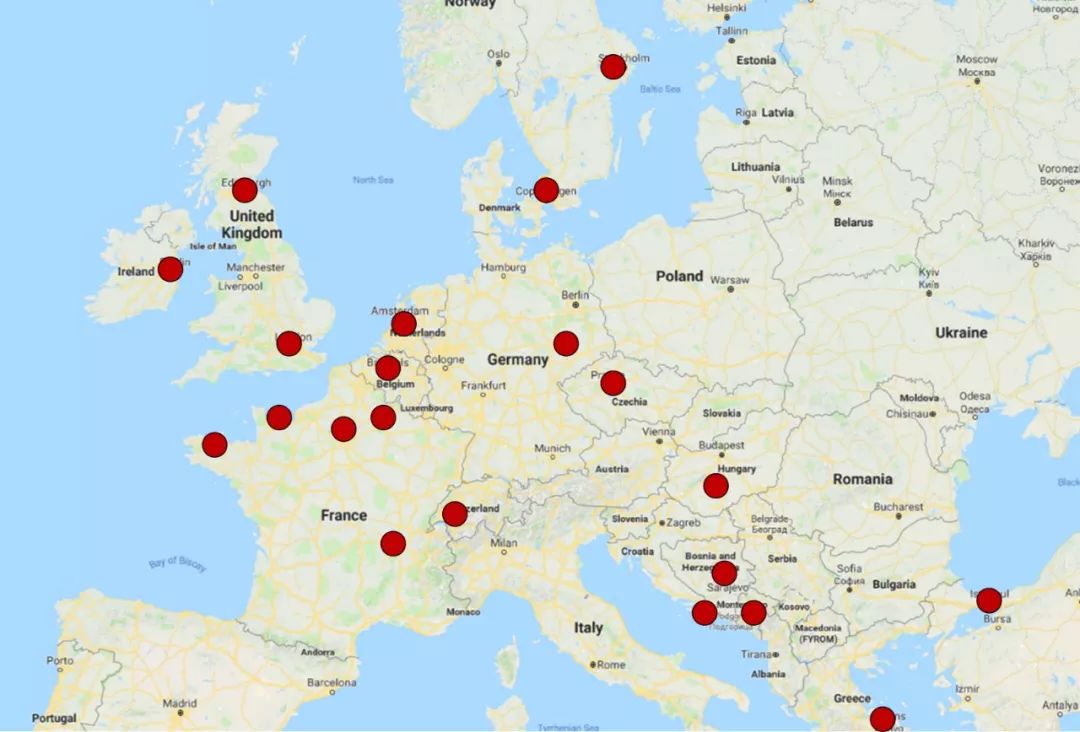 图9和图10分别给出了作者大学十年内的足迹分布。其中本科硕士阶段出行频率较低,且多为实习、面试等因公事务。唯二两次旅行目的地为青海湖和山西平遥古城。博士阶段出行频率较高,共走过欧洲、美洲等16个国家。