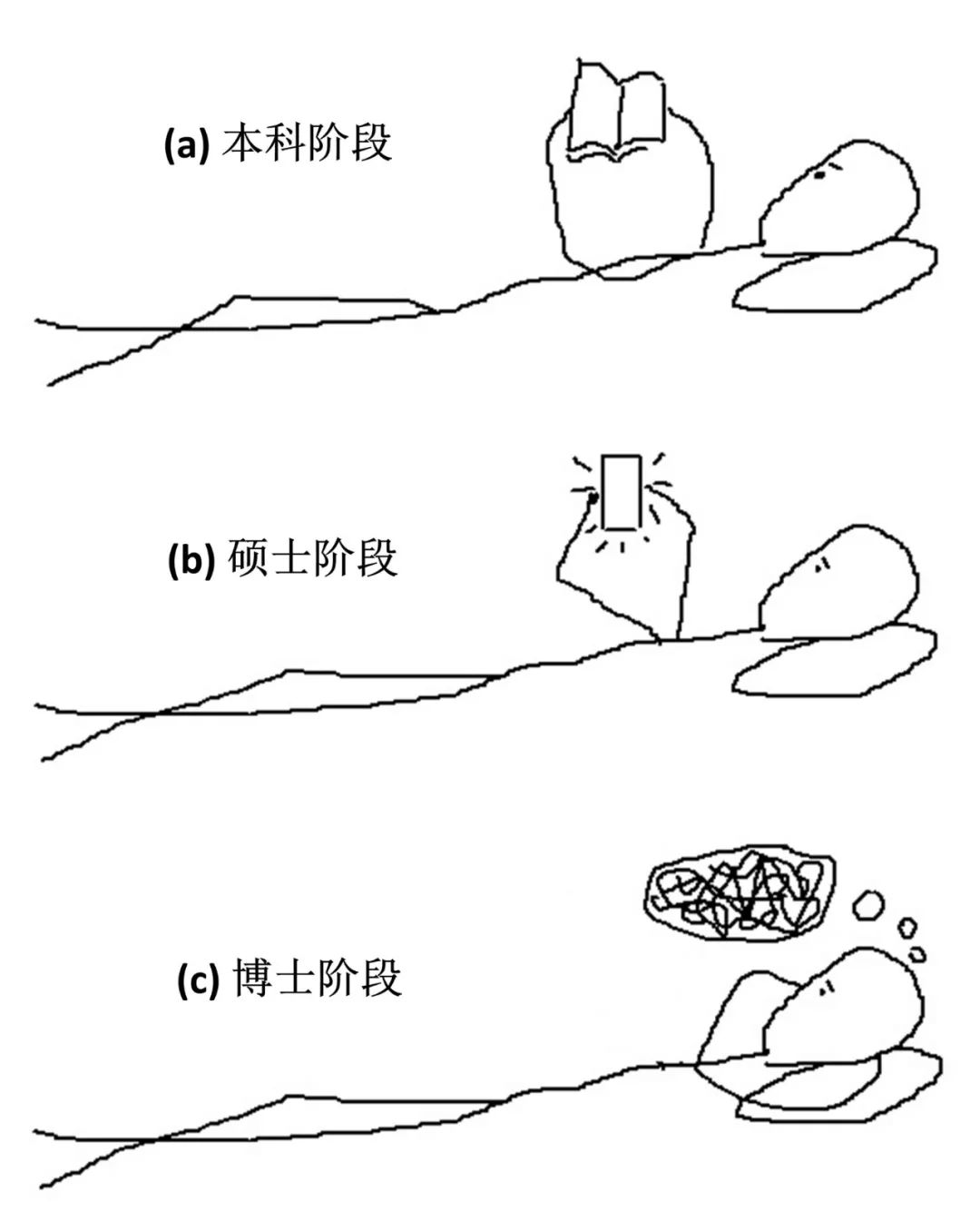 作者本科、硕士、博士期间睡前活动在图5中给出: