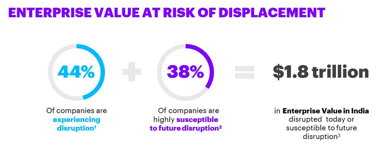 埃森哲的一项新研究表明,对于印度的大多数企业而言,行业颠覆已经成为现实,1.8万亿美元的企业价值面临流离失所的风险。但是,企业也可以利用和管理这些颠覆实现下一个阶段的增长。