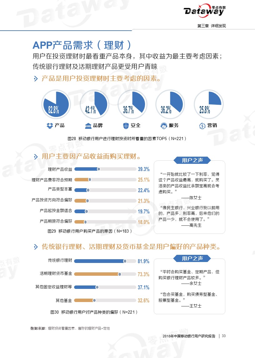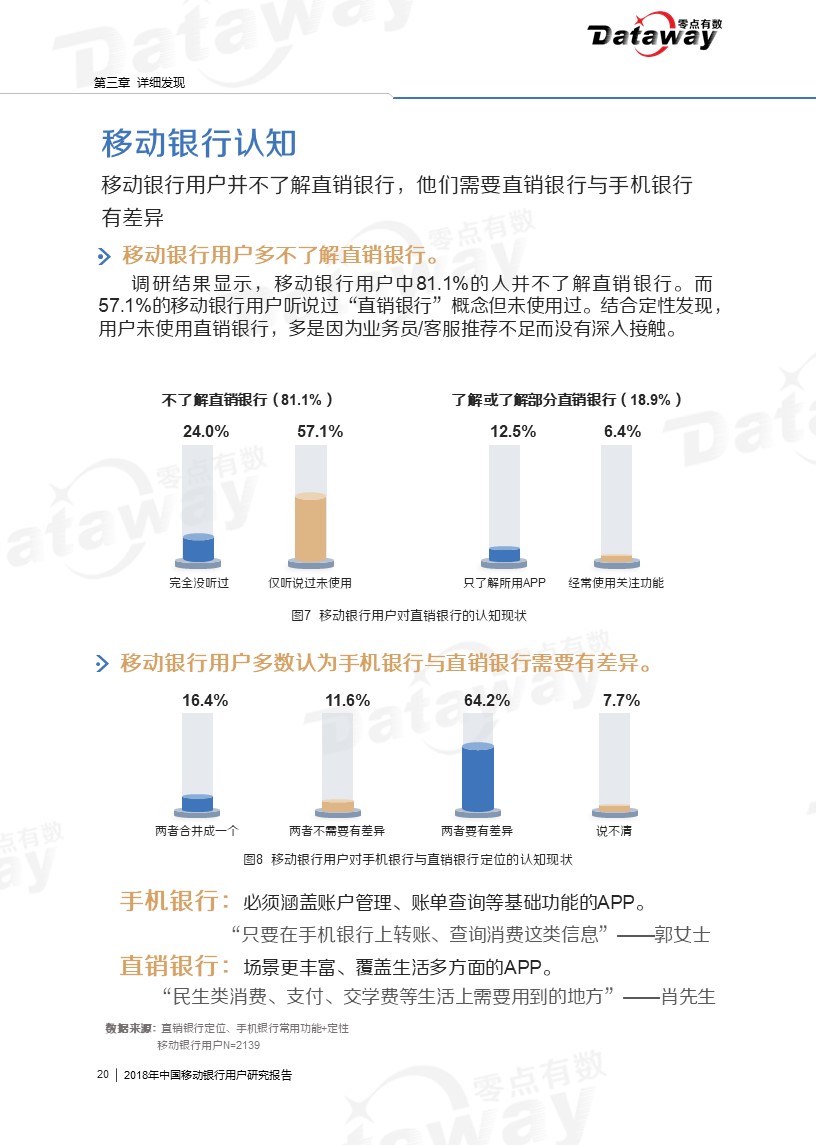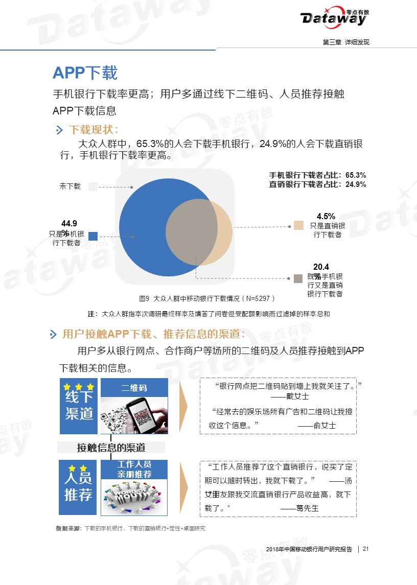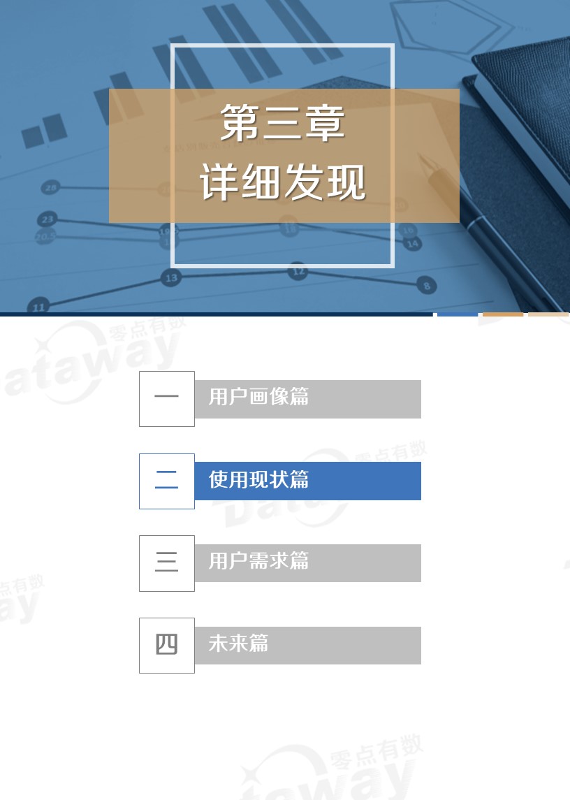 本次调研中,我们将移动银行用户(即使用手机银行、直销银行、微信银行的群体)作为主要关注对象,运用在线定量调研、焦点座谈会和桌面研究三种研究方法,来了解移动银行用户的特征、使用行为、使用需求等。