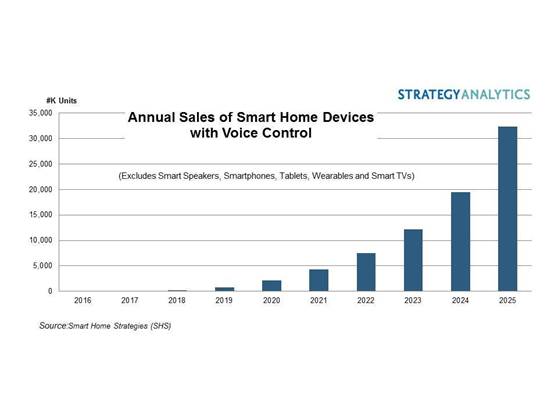Strategy Analytics智能家居战略研究服务高级行业分析师Jack Narcotta补充说:“通过语音命令实现更大控制能力的潜力将为公司和消费者开辟新的用例。 它还为智能家居设备公司,家电制造商,元件制造商和运营商引入了新的用户界面设计维度。”