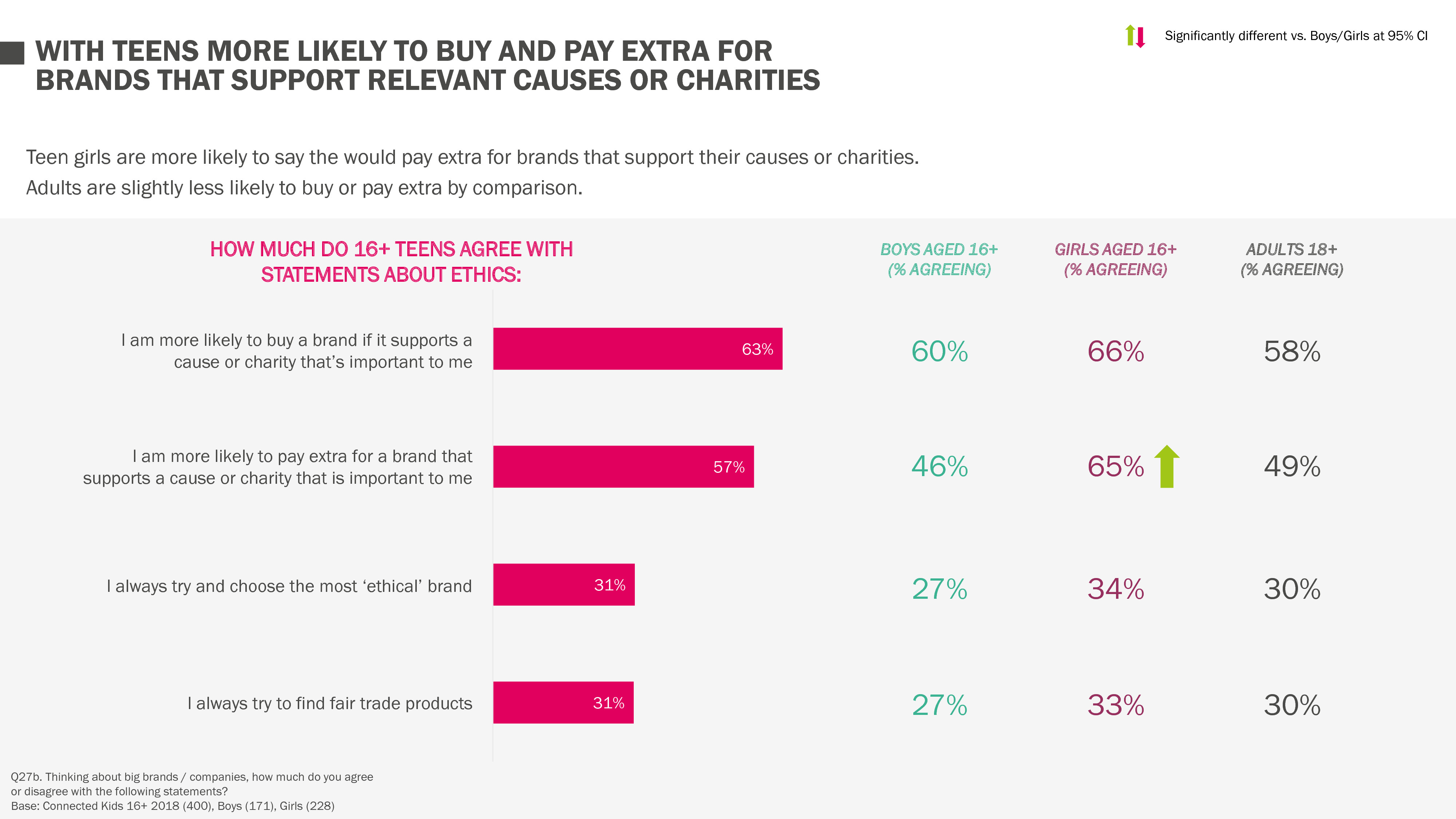 调查发现,16岁以上的青少年中有54%根据品牌的道德规范做出购买或使用决定,63%的受访者表示如果品牌支持对他们重要的事业或慈善,他们更有可能从这个品牌购买商品。