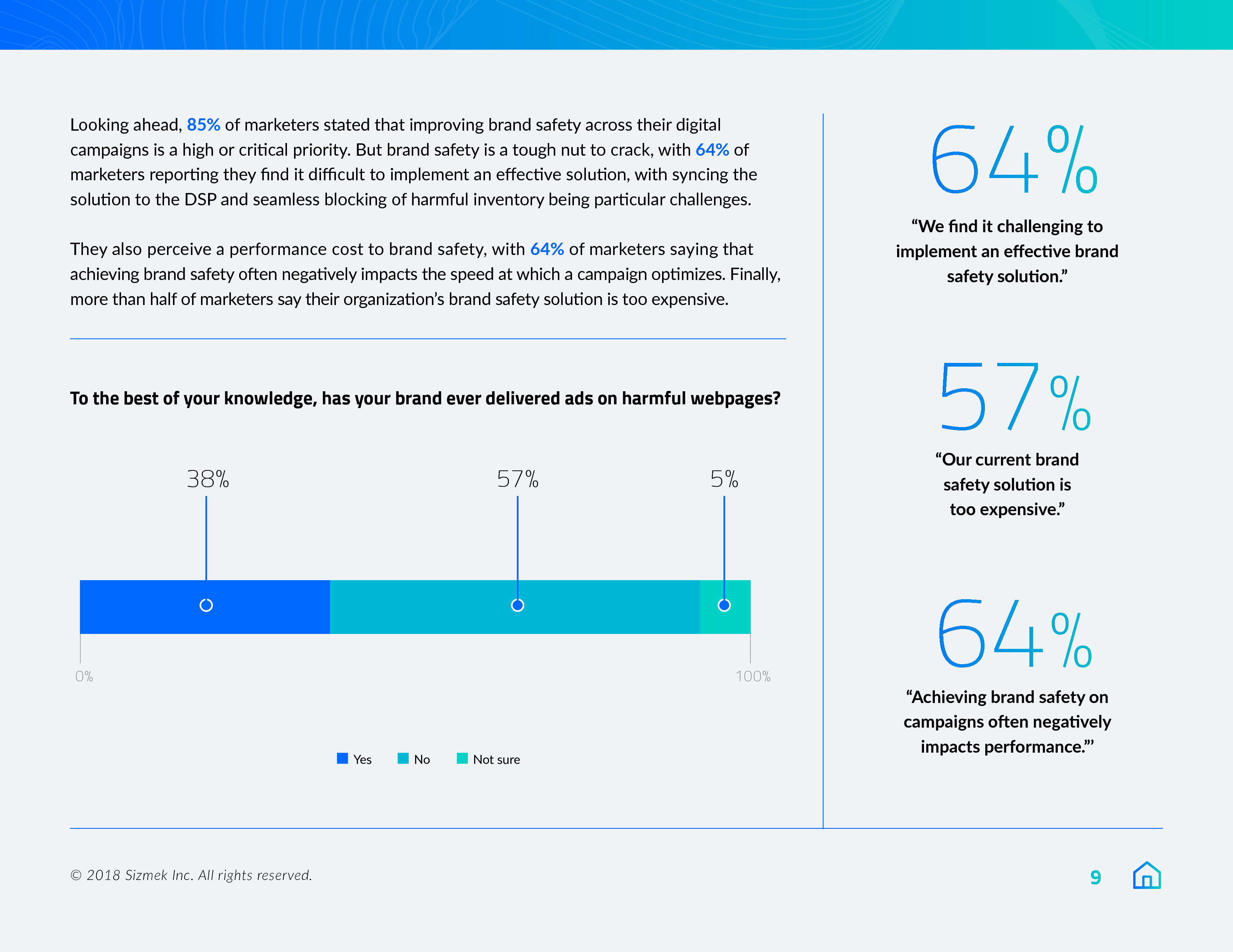 64%的受访者认为获得品牌安全方面存在挑战,而且会对广告效果带来负面影响。