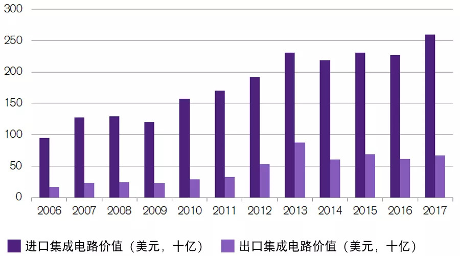 中国集成电路 (IC) 进出口贸易逆差在2017年持续增加