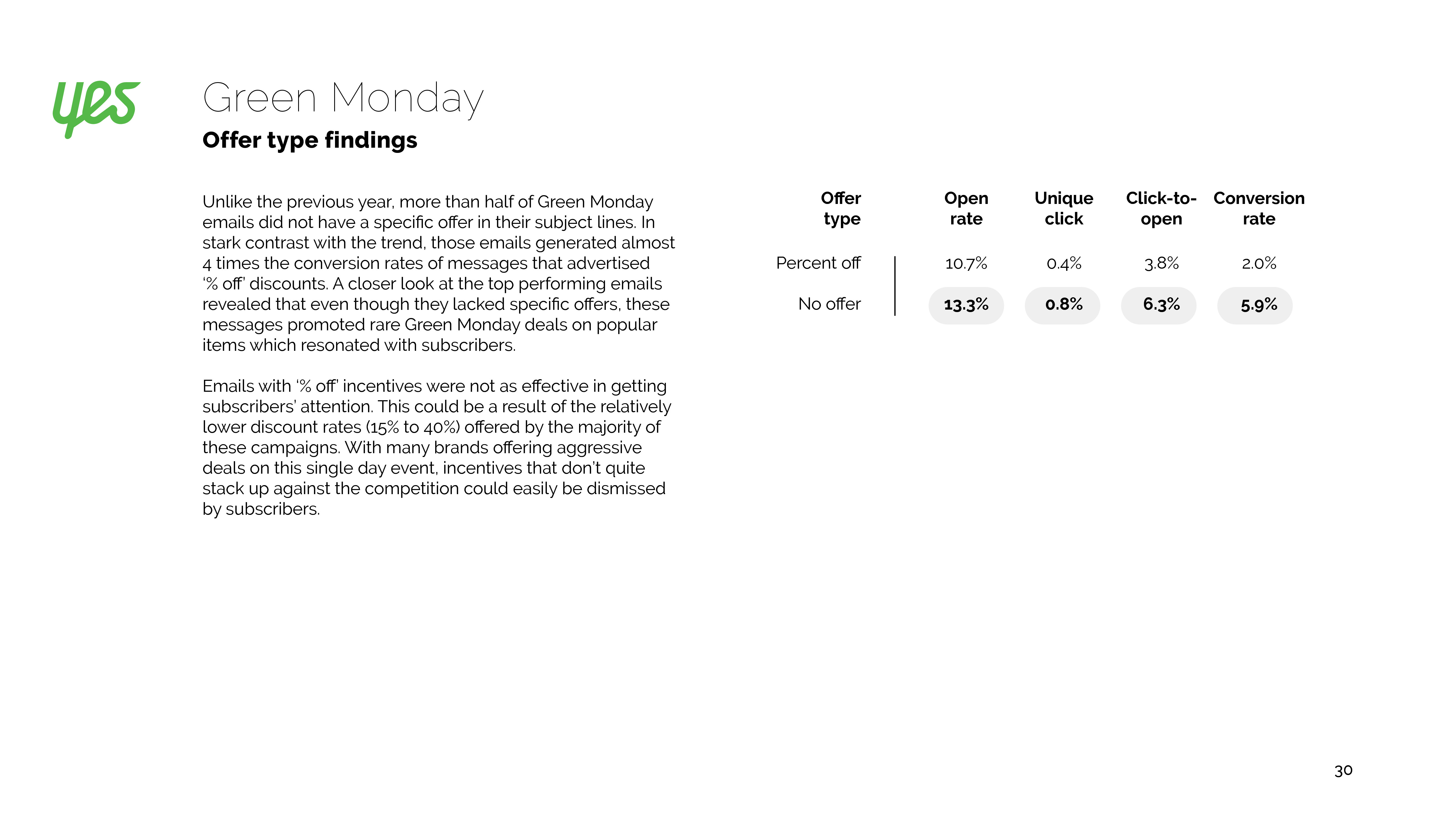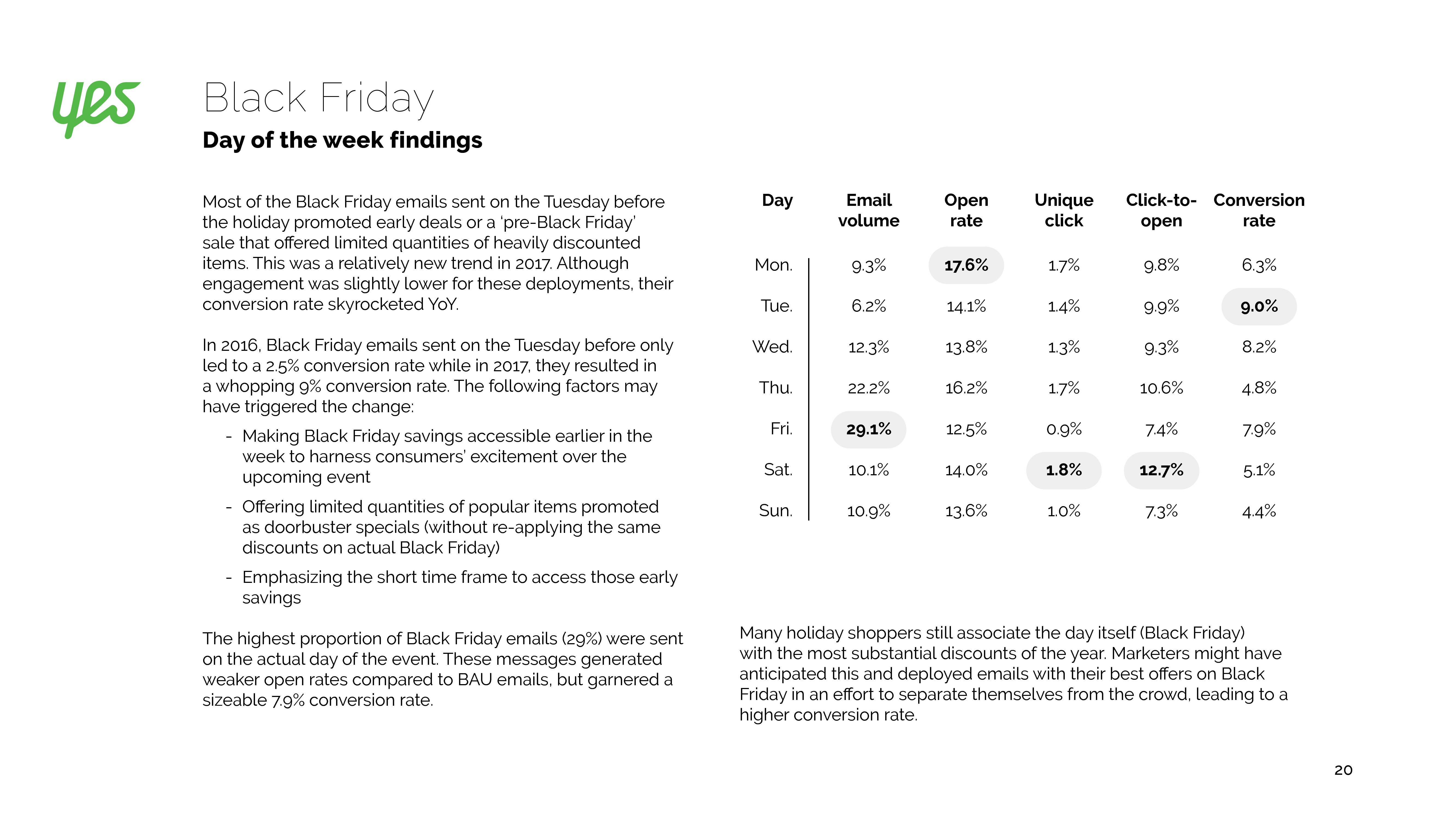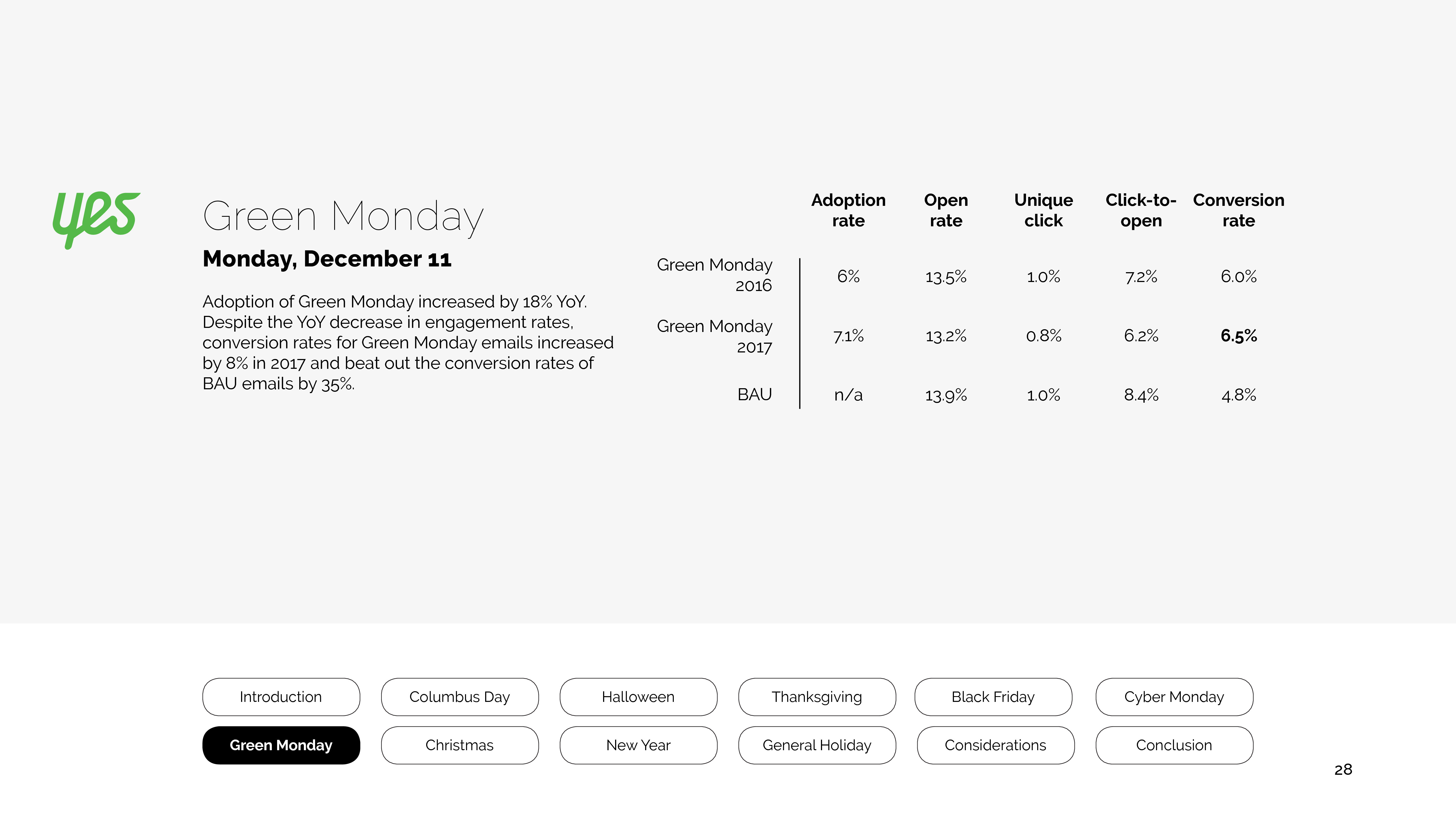 参与绿色星期一的营销人员增长了18%,尽管打开率有所下降,但是转化率却提高了8%。