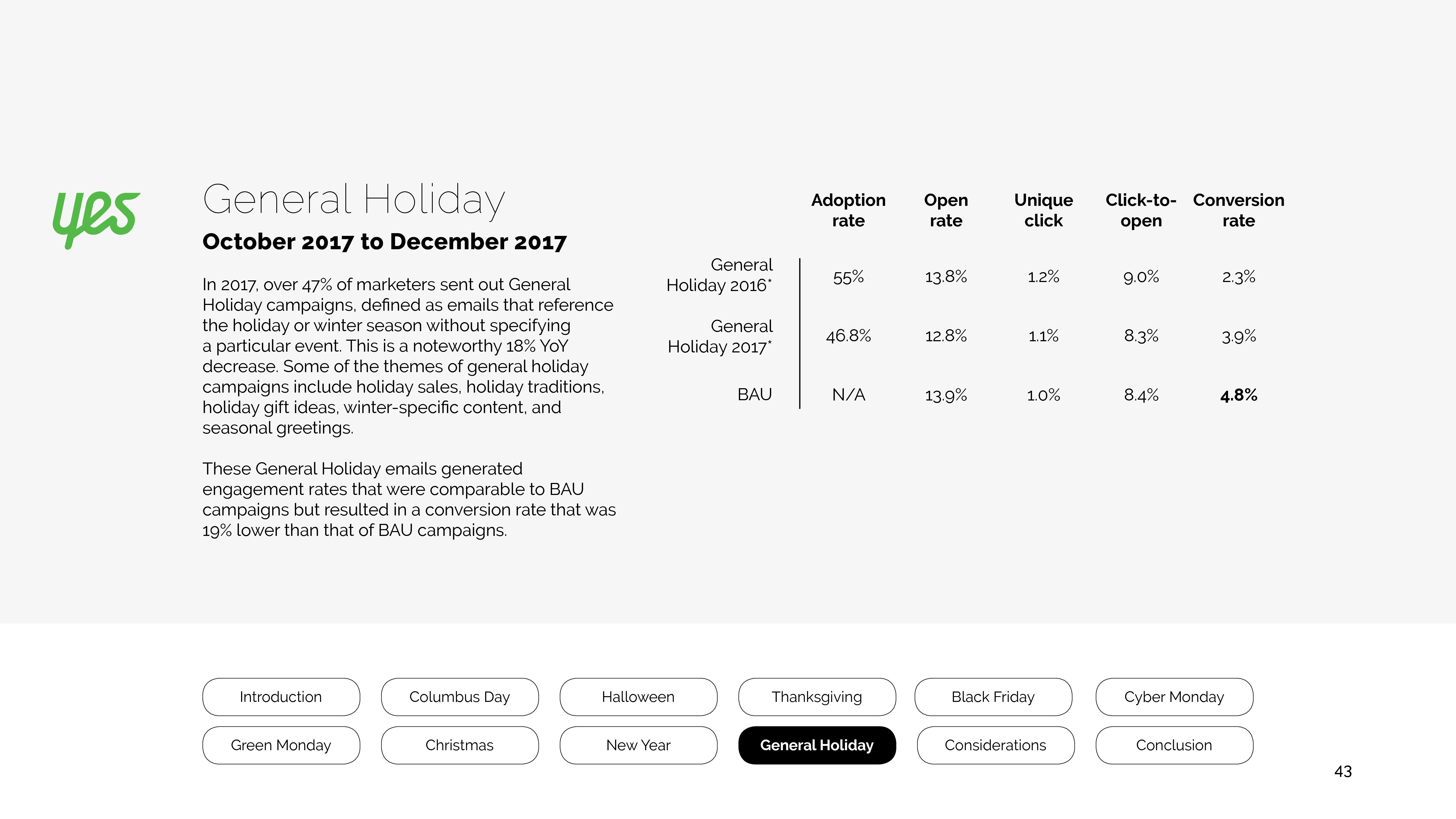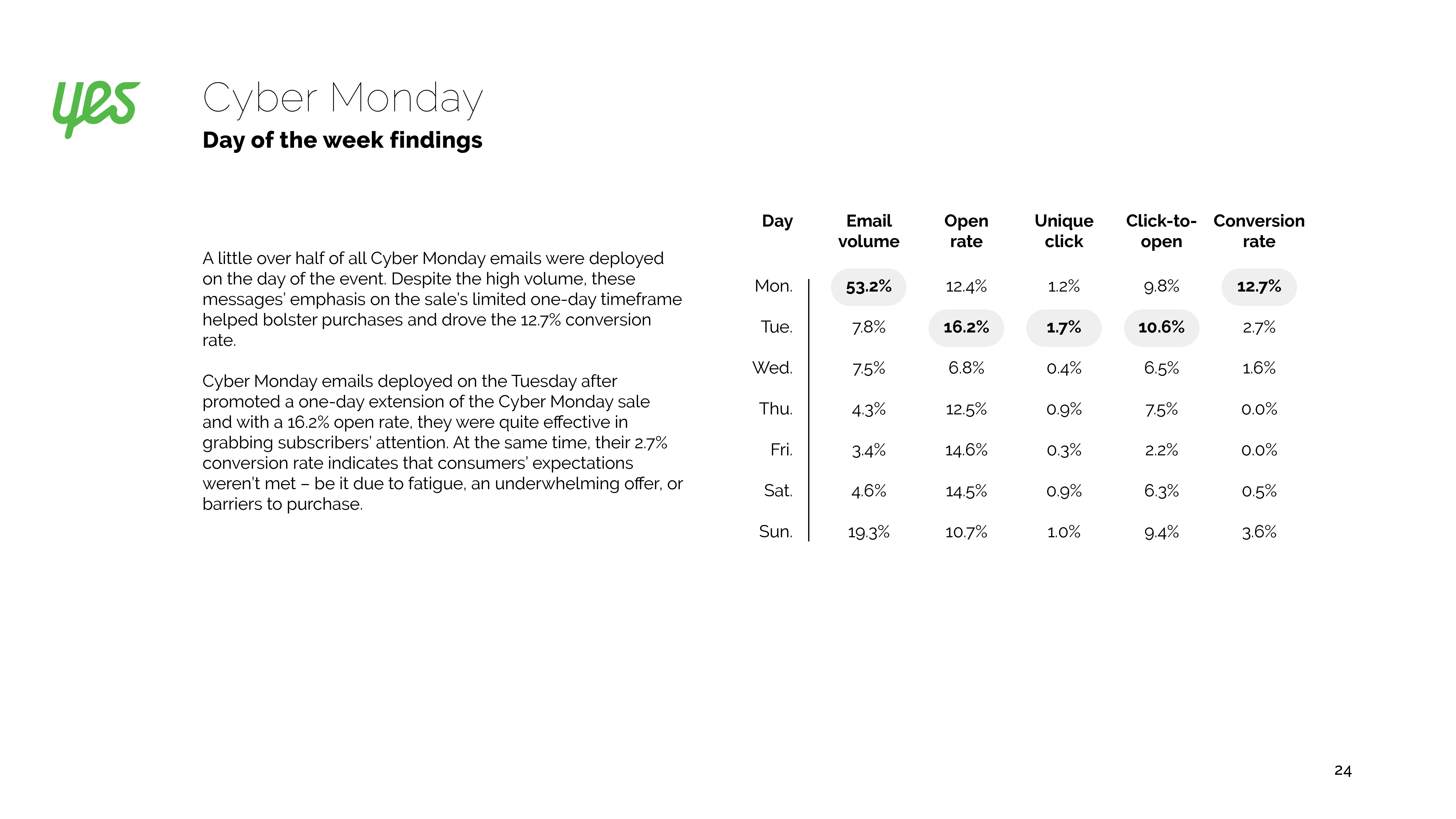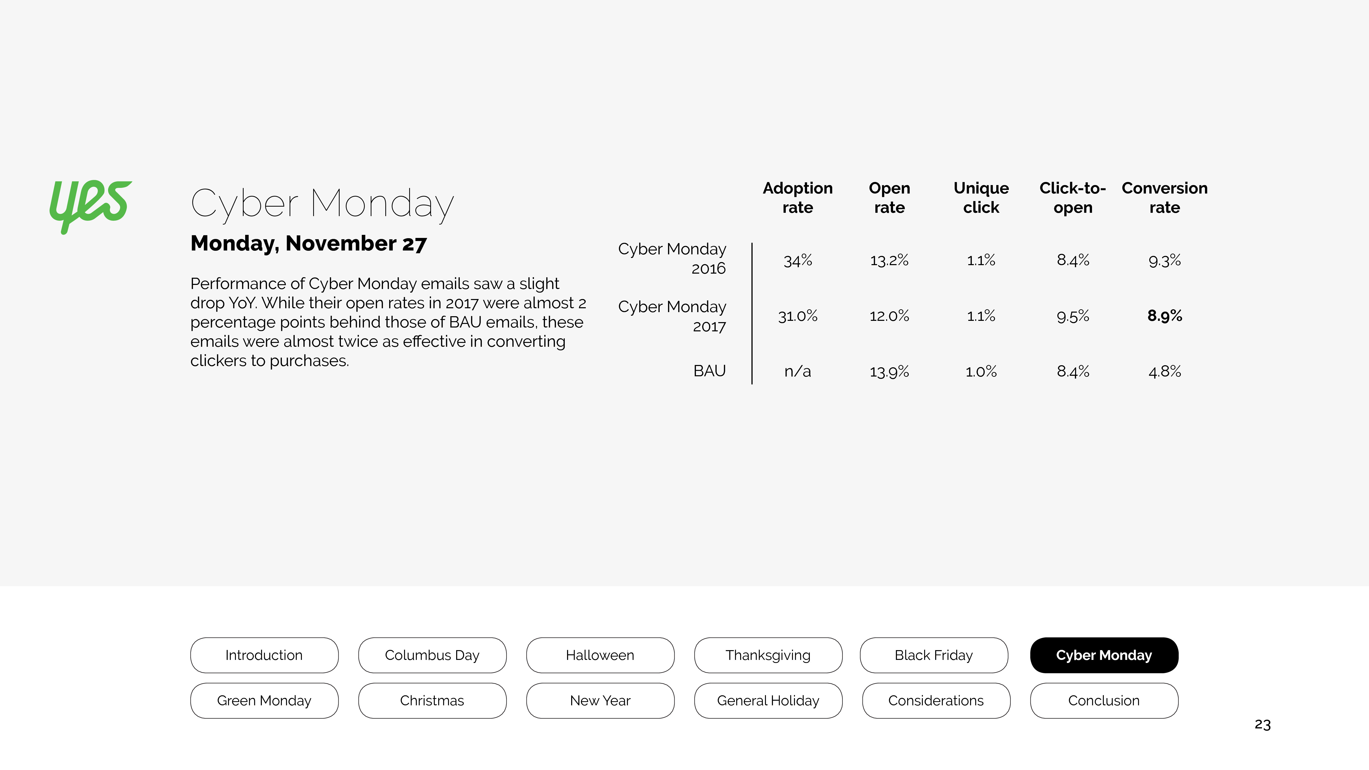参与绿色星期一的营销人员增长了18%,尽管打开率有所下降,但是转化率却提高了8%。
