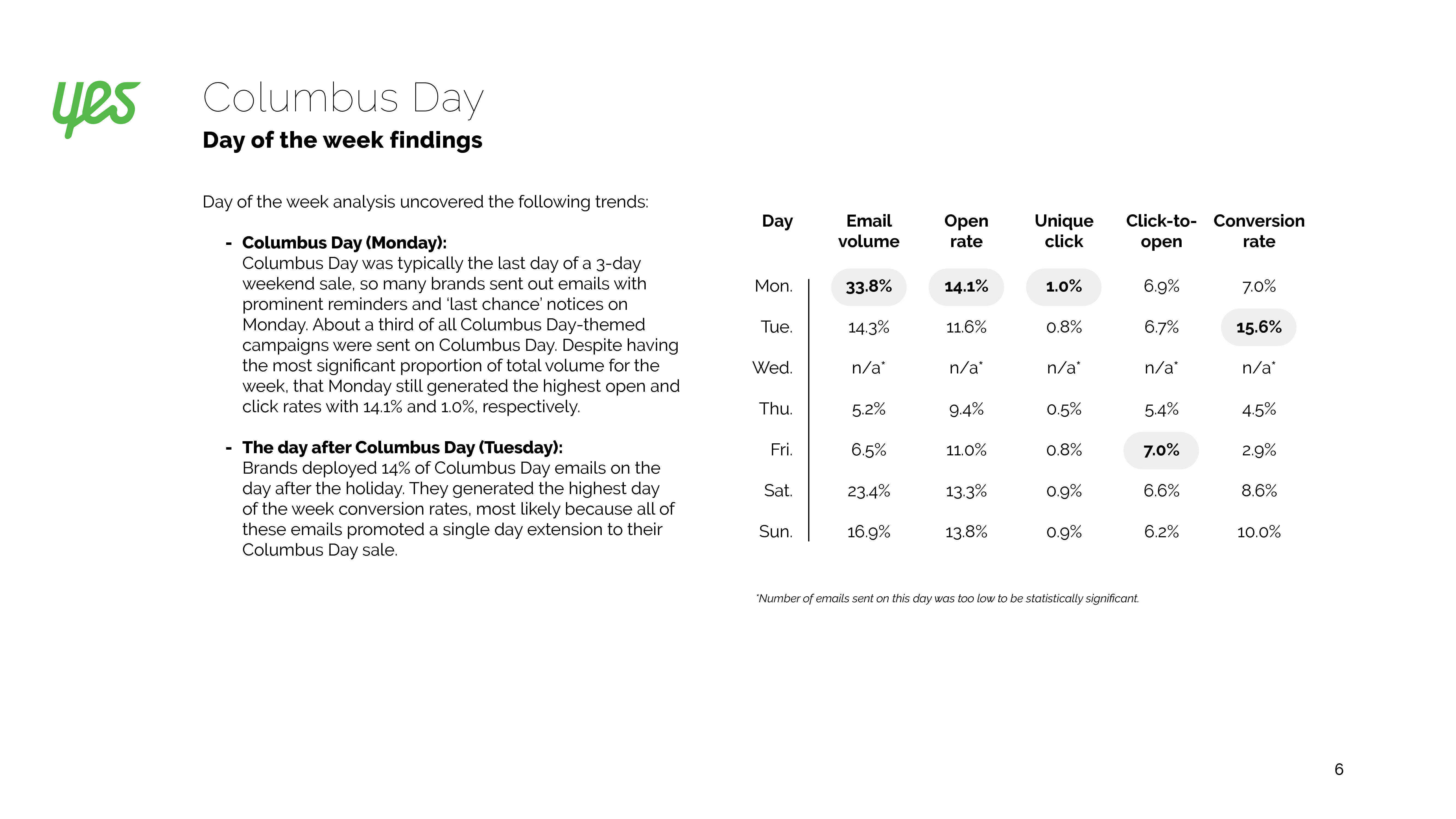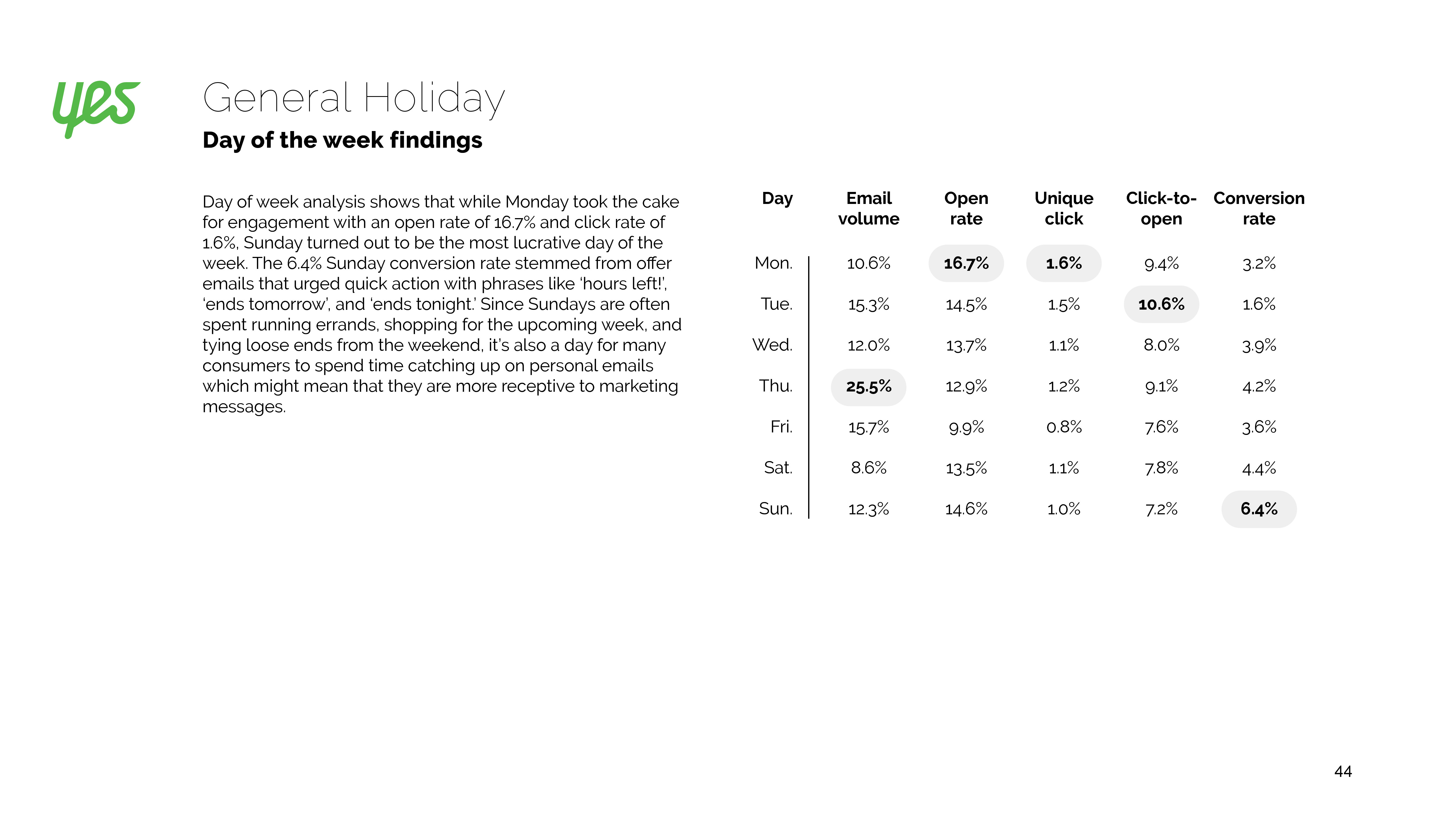 白色星期一的电子邮件效果稍有下降。虽然打开率落后标准邮件2个百分点,但是转化率却是两倍。