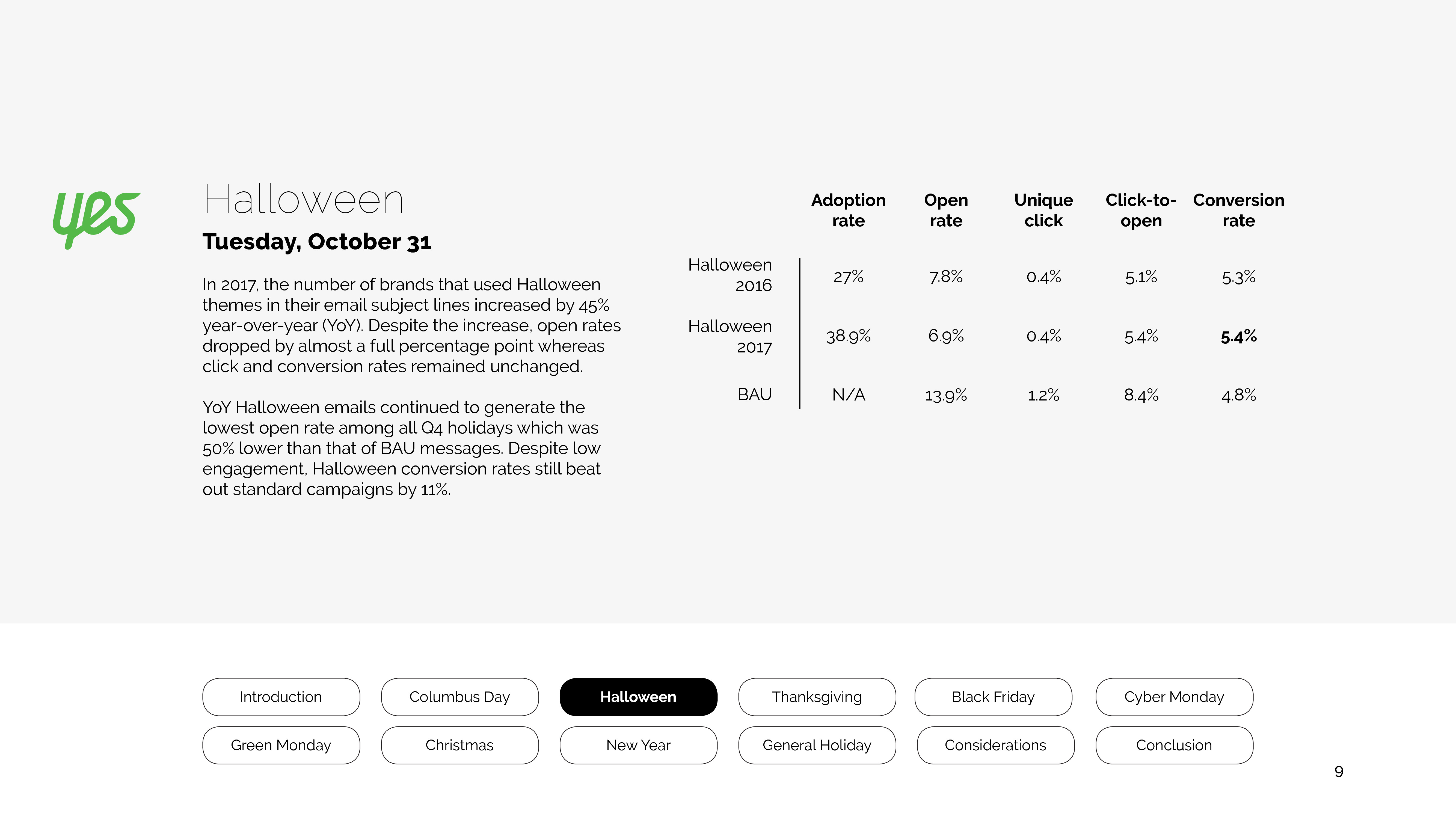 2017年万圣节使用主题邮件的品牌和前一年比增长45%,而打开率则比标准邮件低50%。
