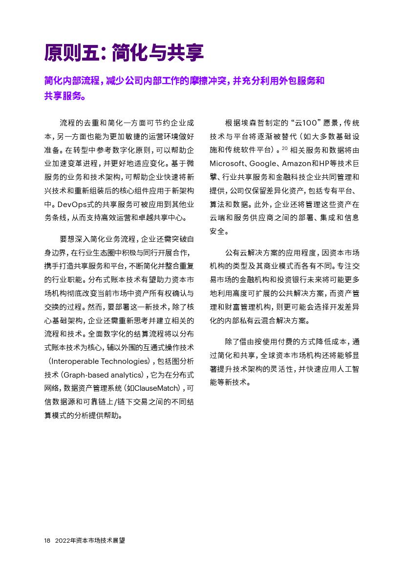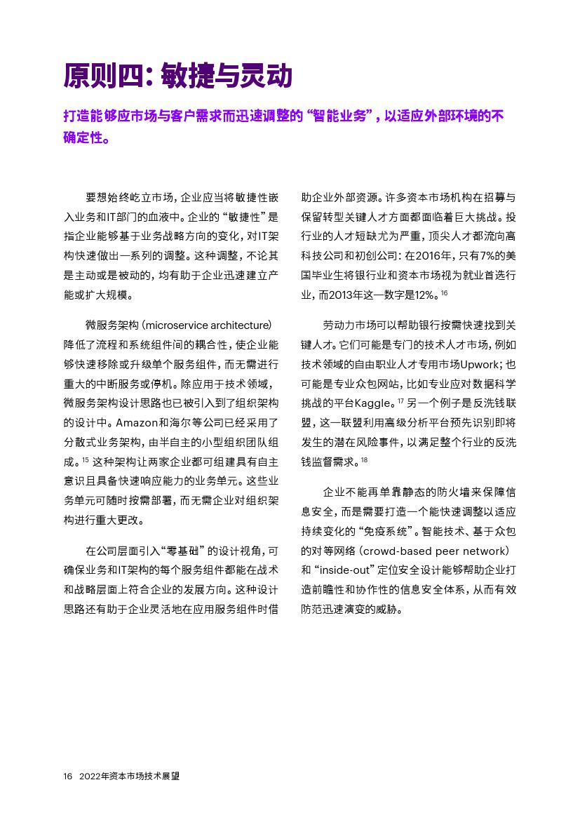 到2022年,资本市场的行业形态将会受到自动化、个性化服务、非银行做市商兴起等因素的深远影响。在这种背景下,技术是抢占领先优势的必要手段,选择“积极拥抱”技术的企业可以打破挤压式颠覆的周期。领先的资本市场机构需要遵循以下五大致胜设计原则,开展变革: