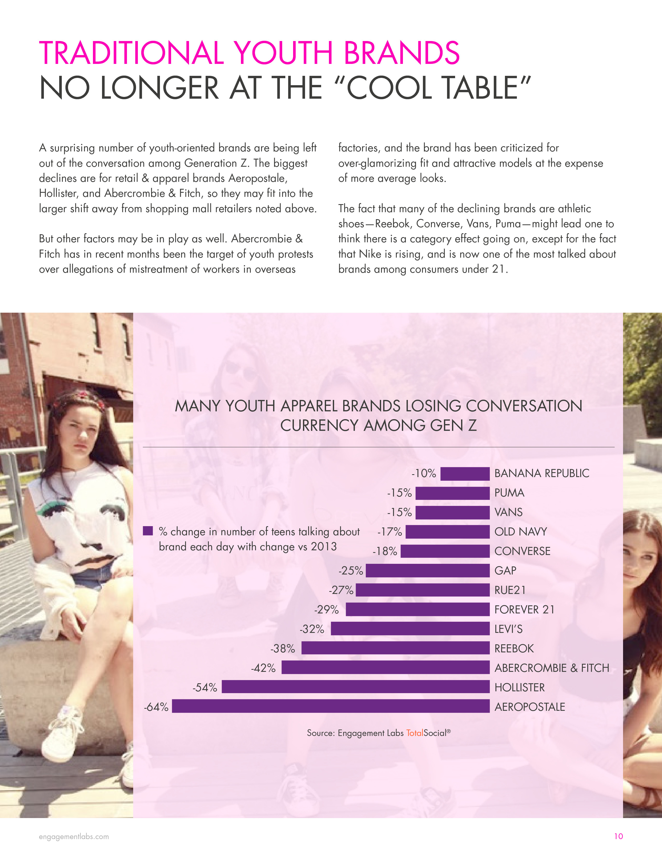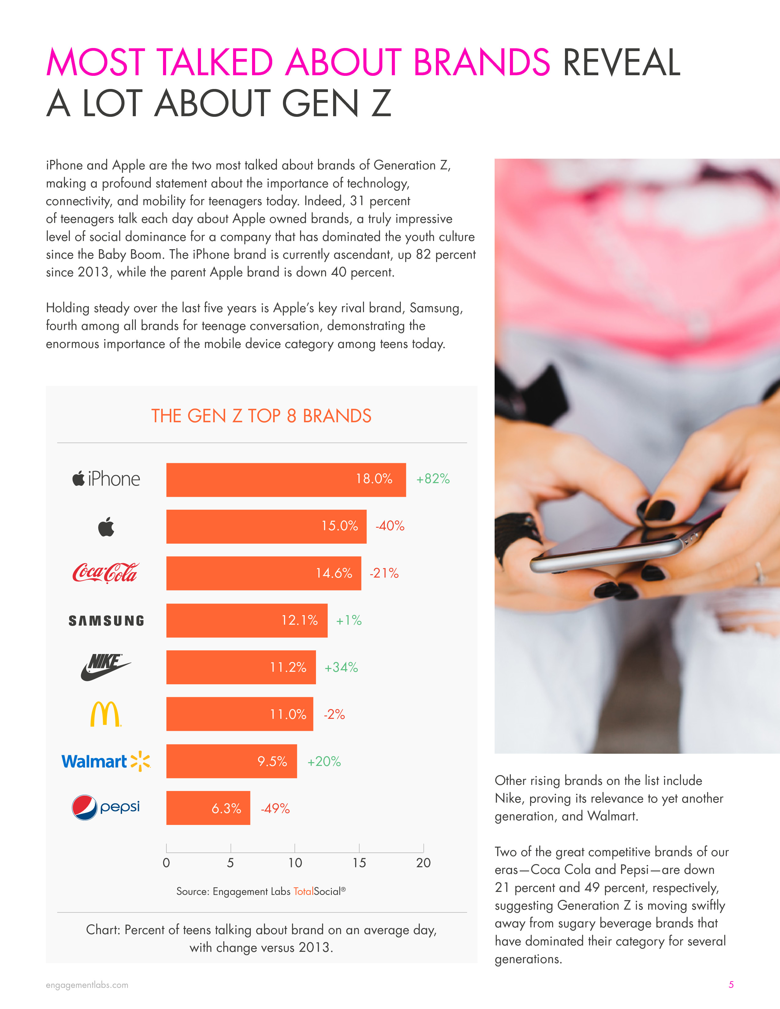 - 第五位是耐克,有11.2%的青少年讨论,比2013年增长34%。