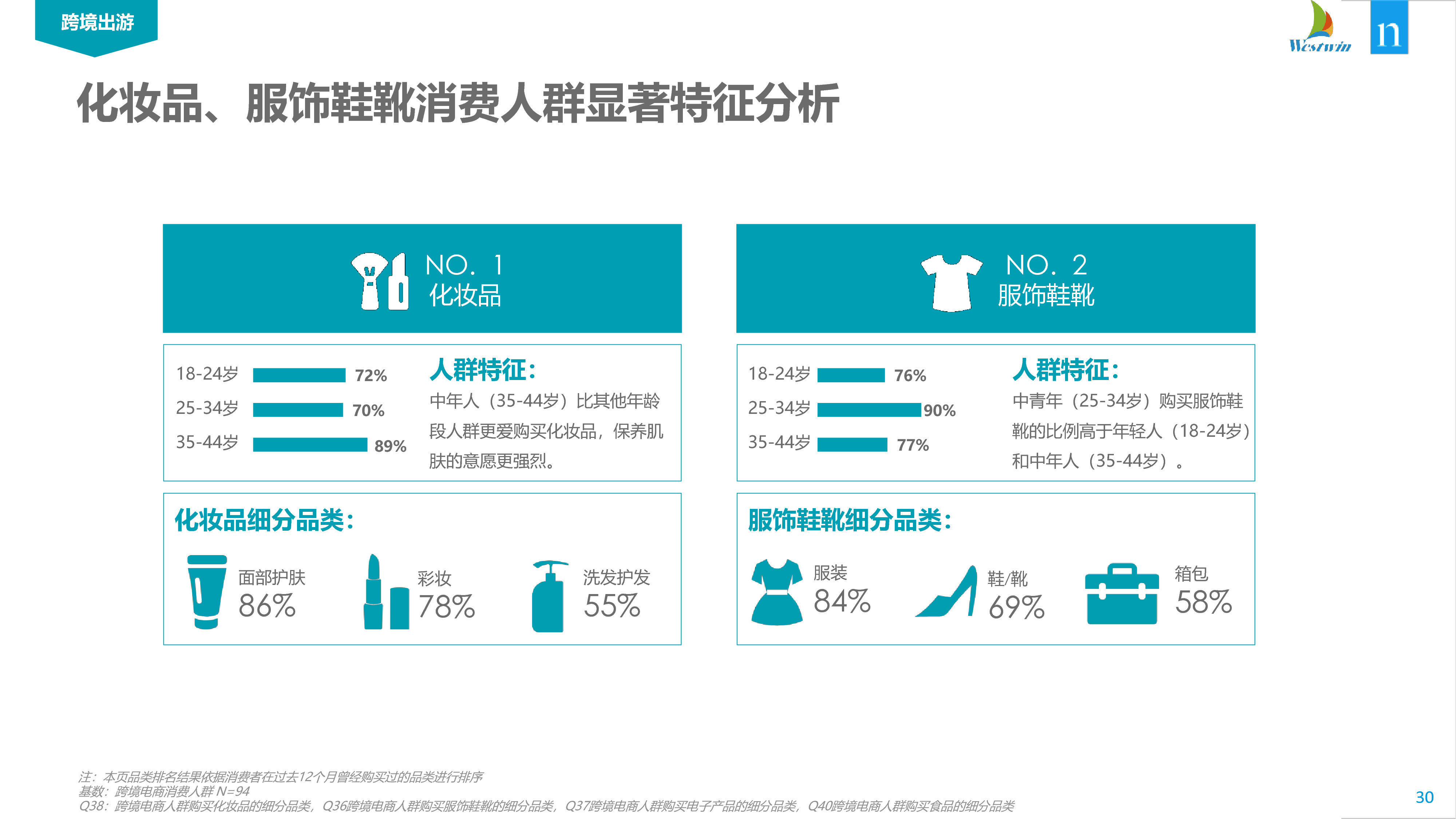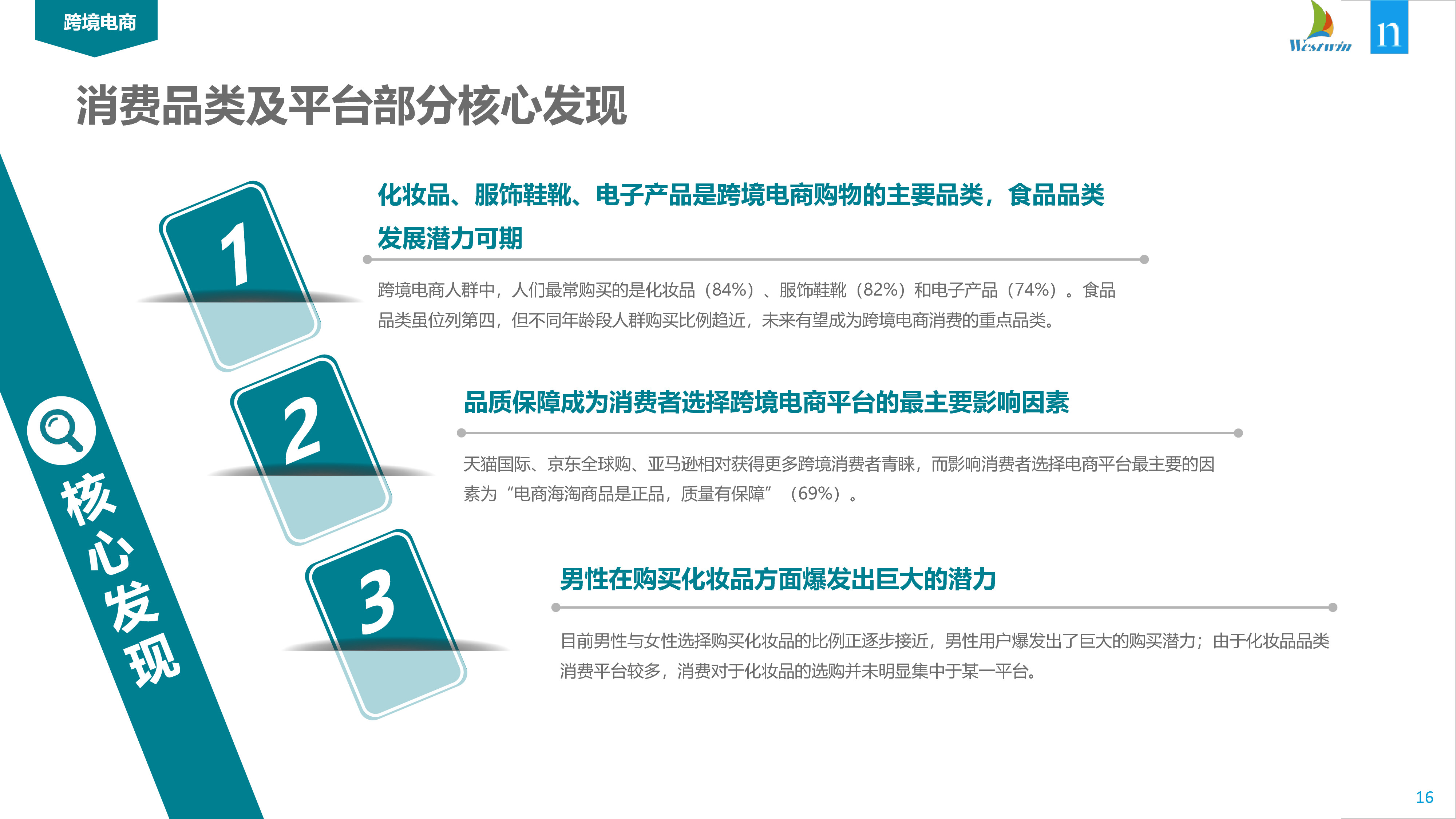 最受欢迎的四大类产品是化妆品、服装和鞋类、电子电器和食品。“中国男人不关心他们的外表”这一刻板印象需要重新思考:数据表明,男性化妆品在线购物者(77%)的数量与女性(90%)的数量接近。