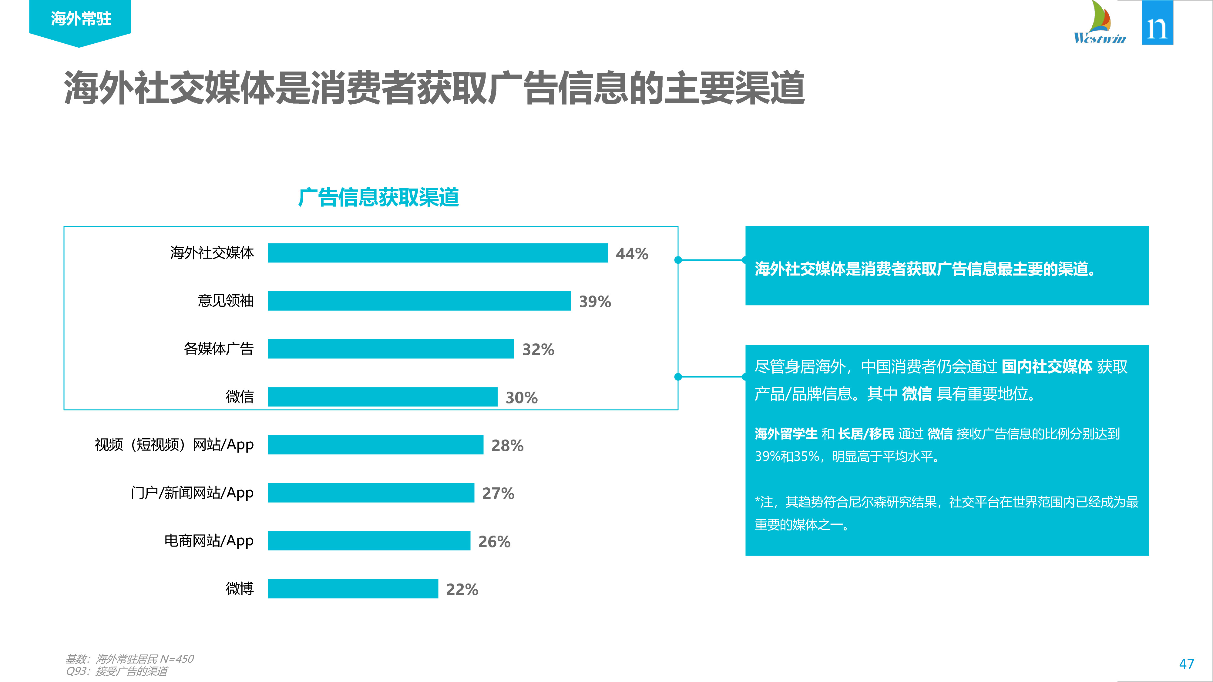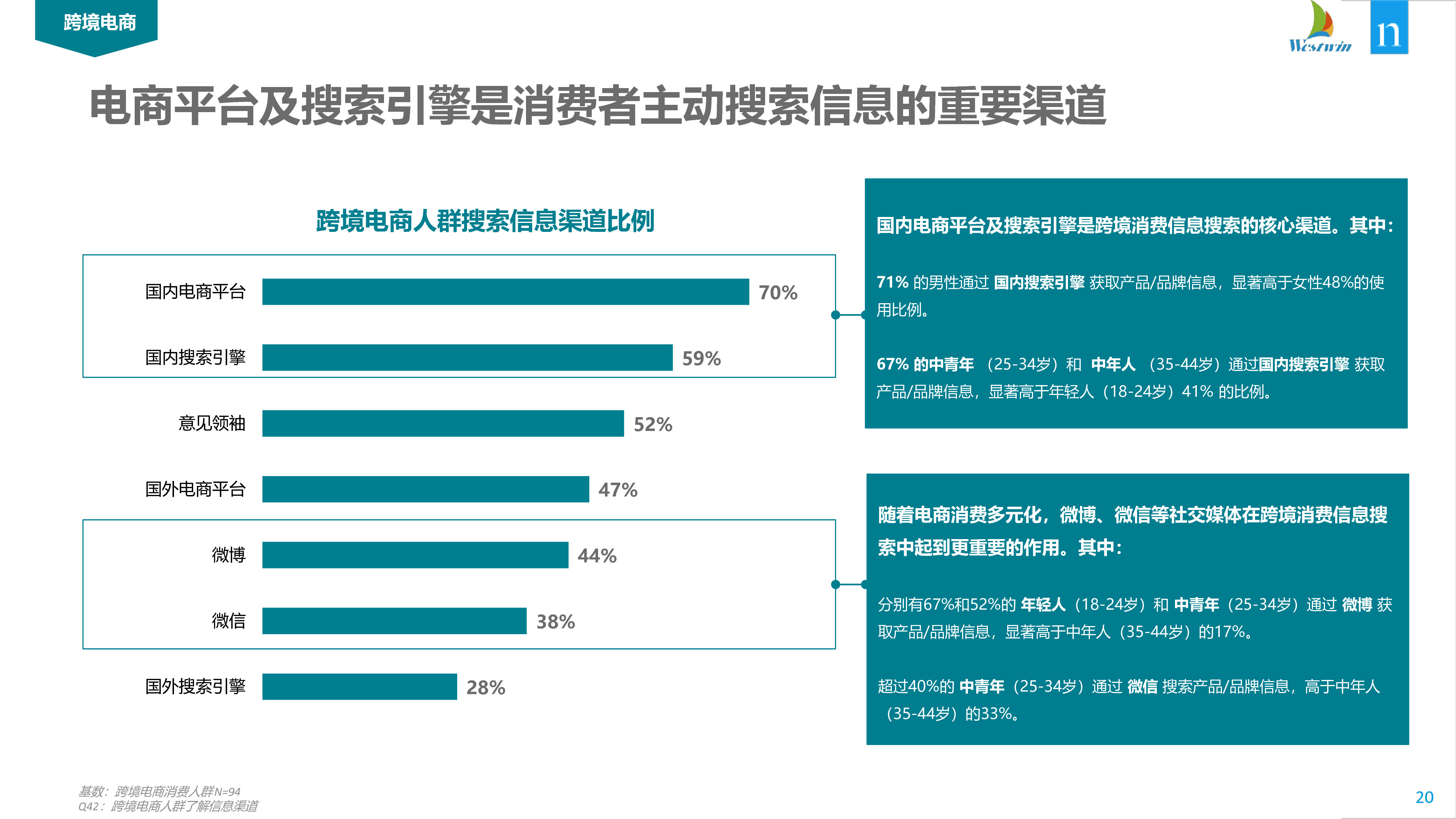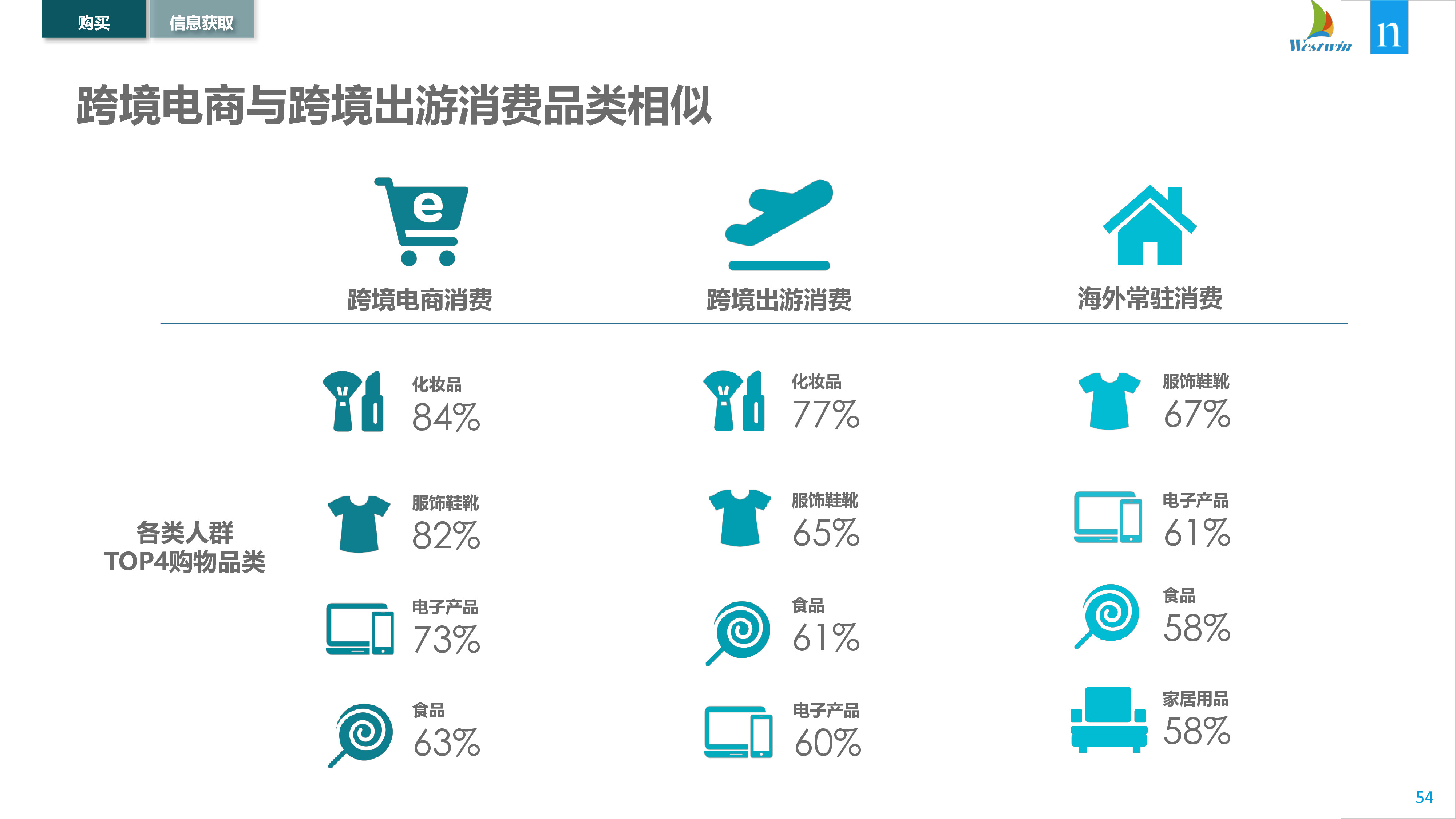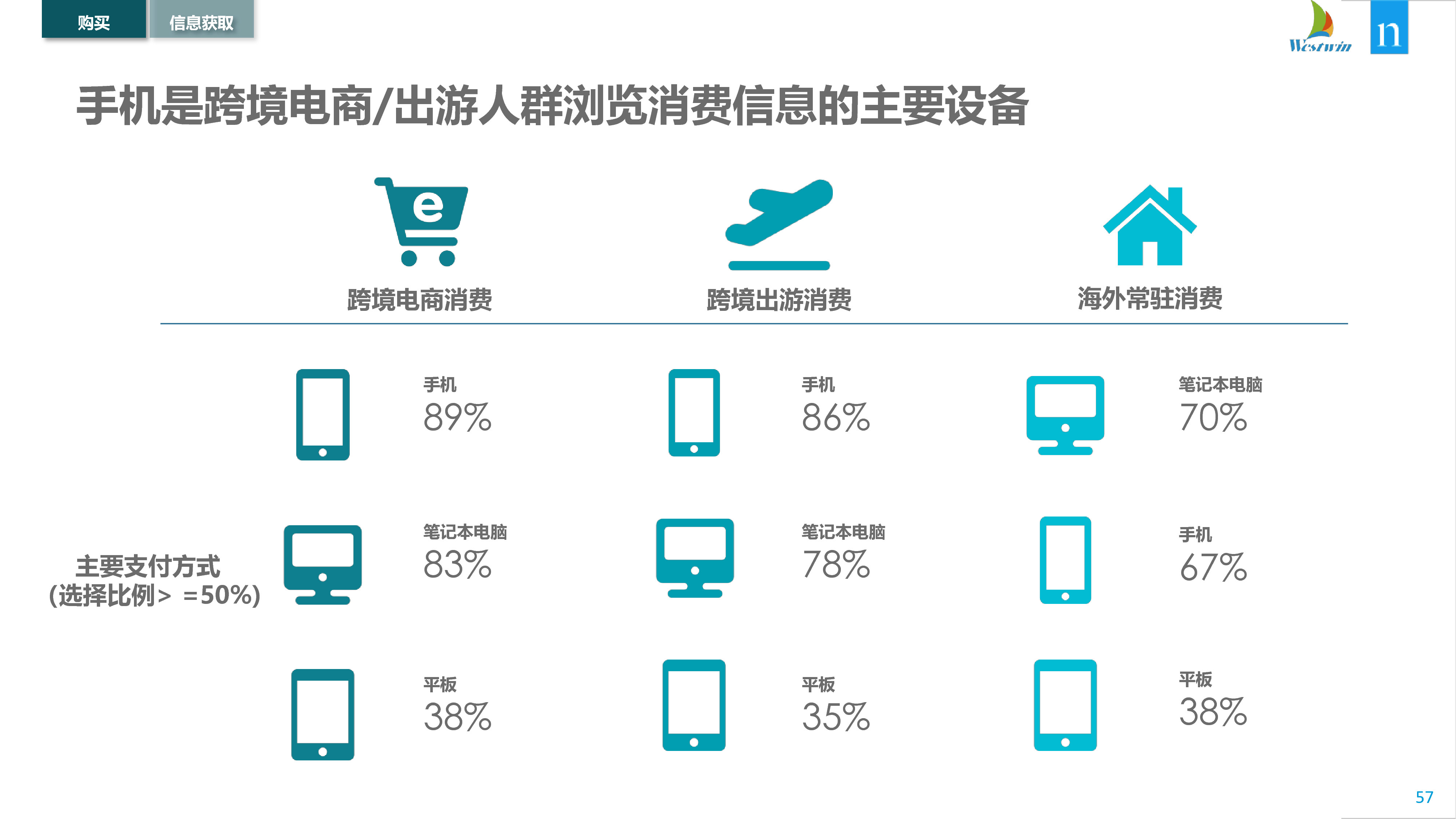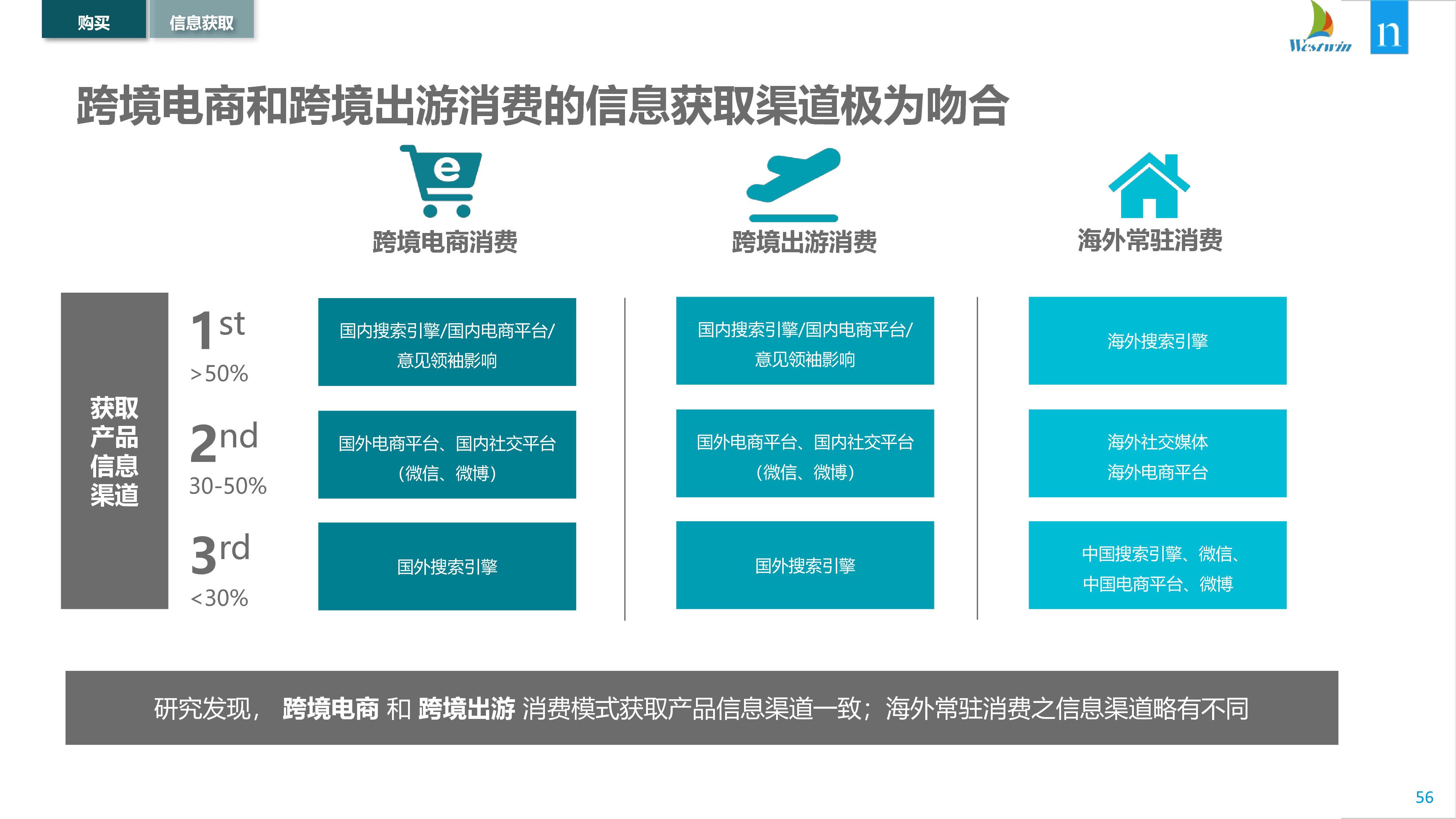 中国跨境购物者严重依赖社交媒体平台来做出购买决策,超过60%的在线购物者使用微信和微博搜索信息和查看广告。鉴于中国经济“移动优先”的风格,这可能并不令人意外,但是48%的国际旅行者和30%的海外华人在购物前也依赖微信和微博获得信息。因此,希望进入利润丰厚的中国跨境市场的品牌,可能需要考虑在中国消费者首选平台上做广告。