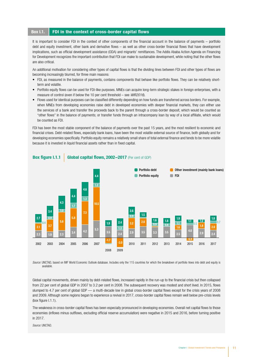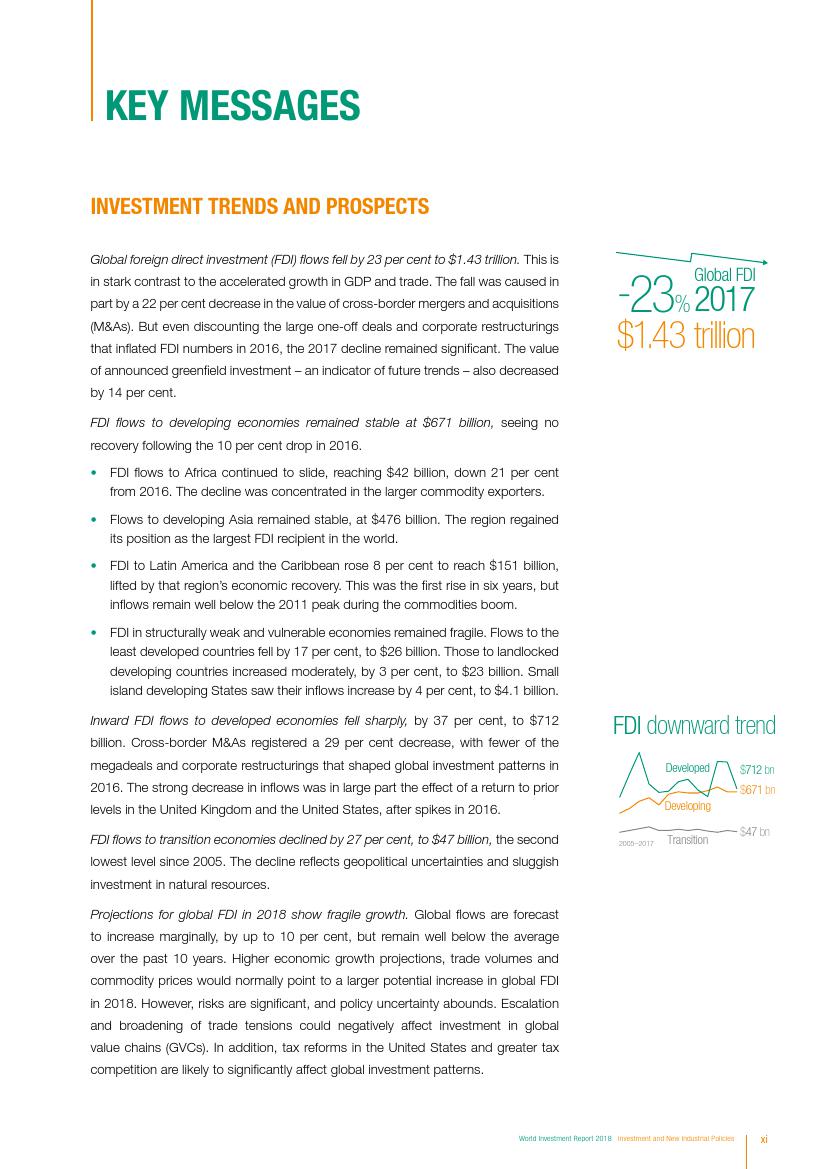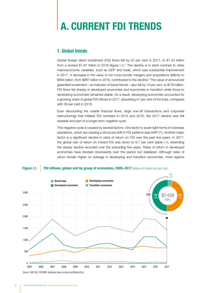 联合国贸易和发展组织今天发布的《世界投资报告》显示,2017年全球外国直接投资(FDI)下降了23 %,为1.43万亿美元。这与全球国内生产总值(GDP)及贸易增长加快形成了鲜明的对比。