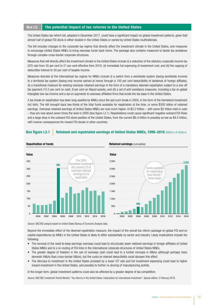 为了避免跨国公司进行这种以避税为目的的重组,美国政府出台了新税法,美国吸收的外资也就在2017年恢复到了正常水平。但美国的新税法会对全球的外国直接投资产生重大影响。