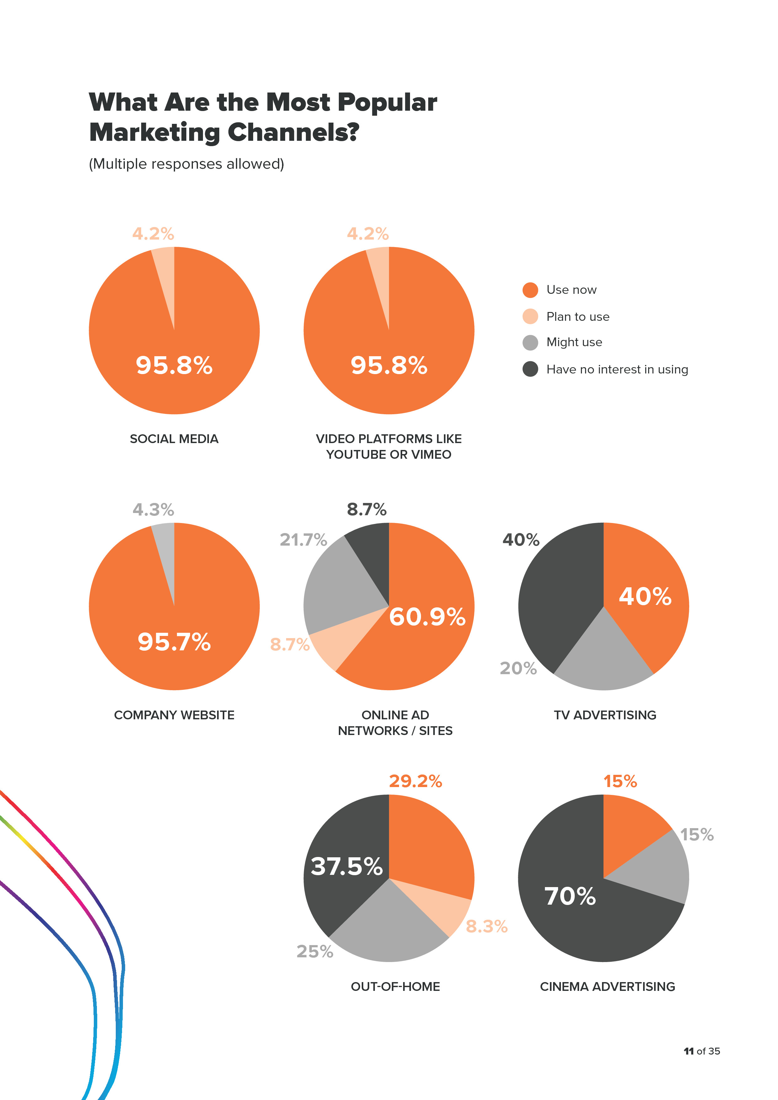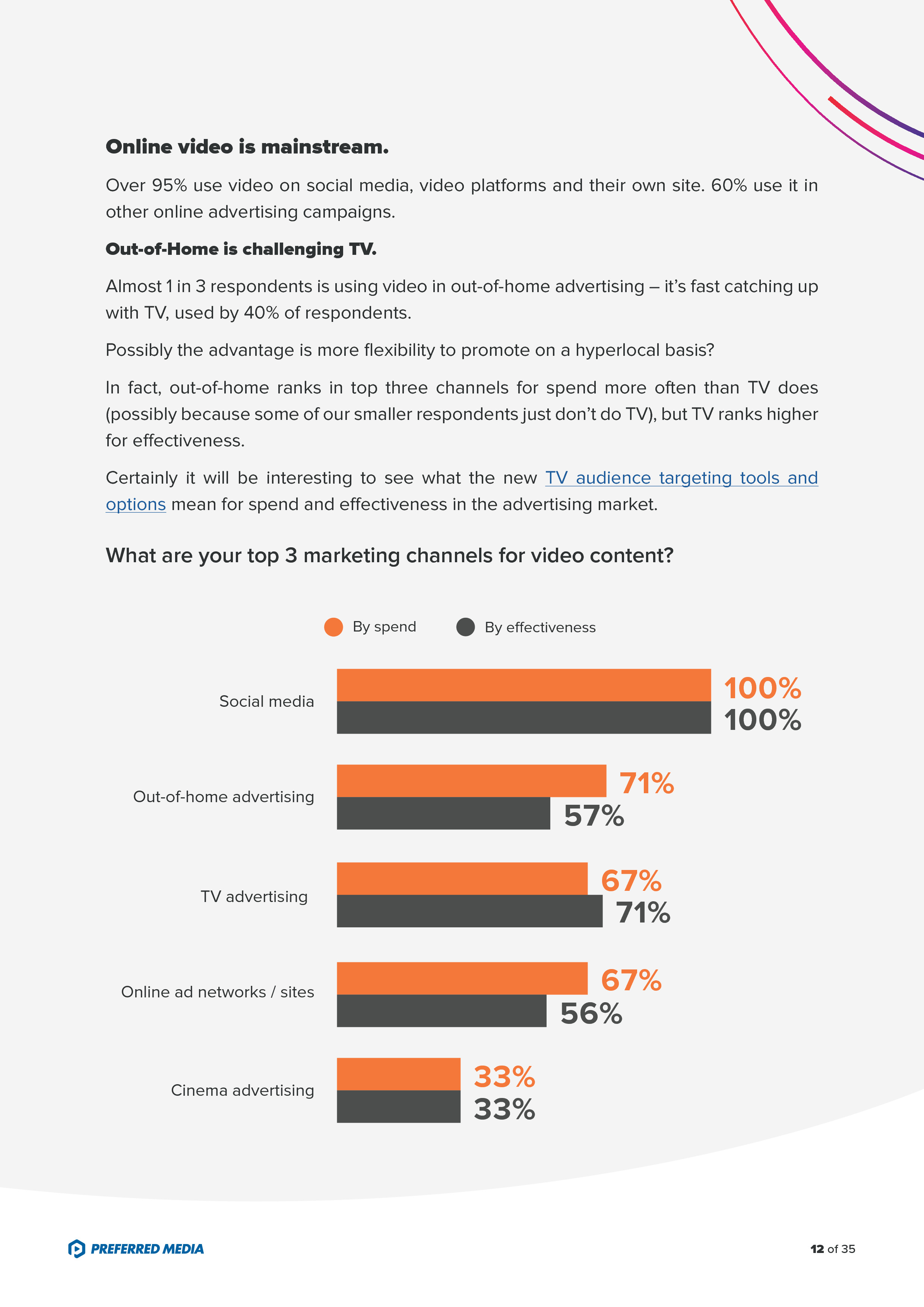 - 约1/3的受访者在户外广告中使用视频,40%使用电视,但是电视广告效果更好;