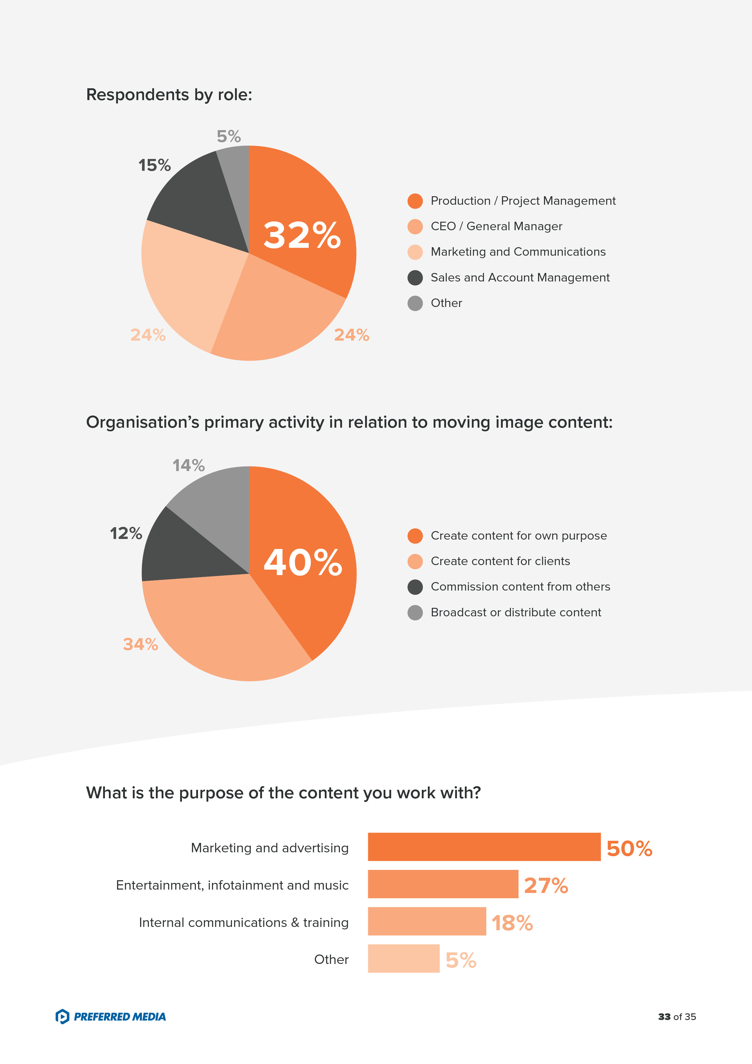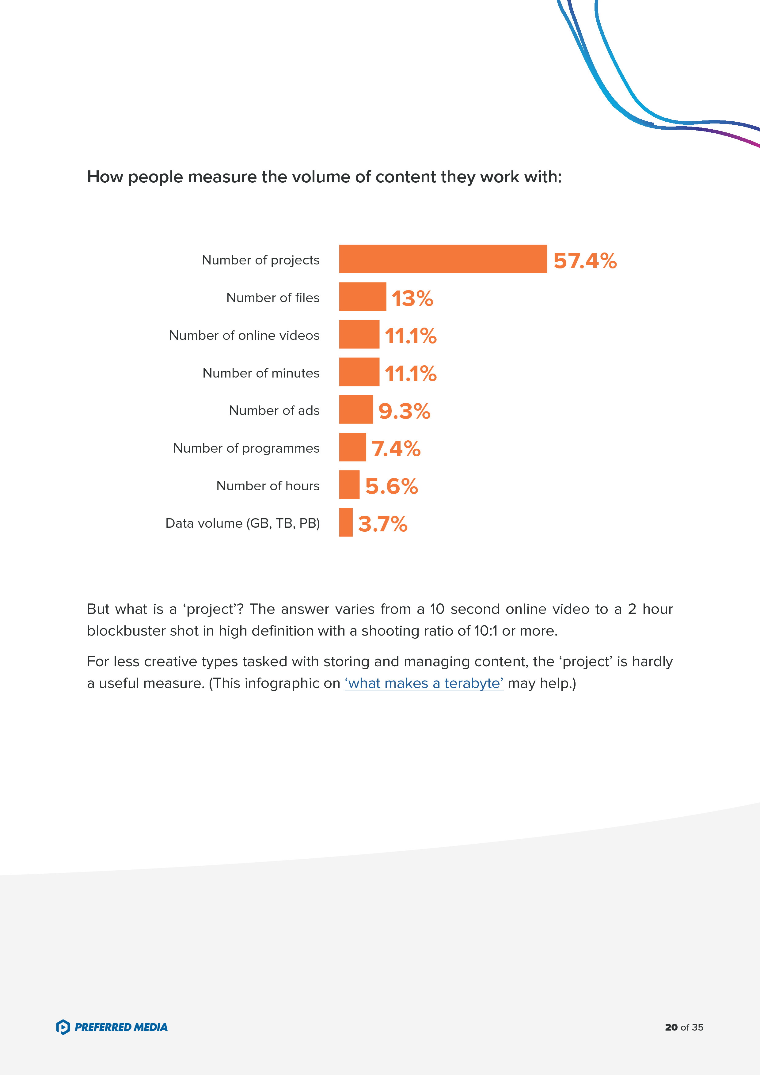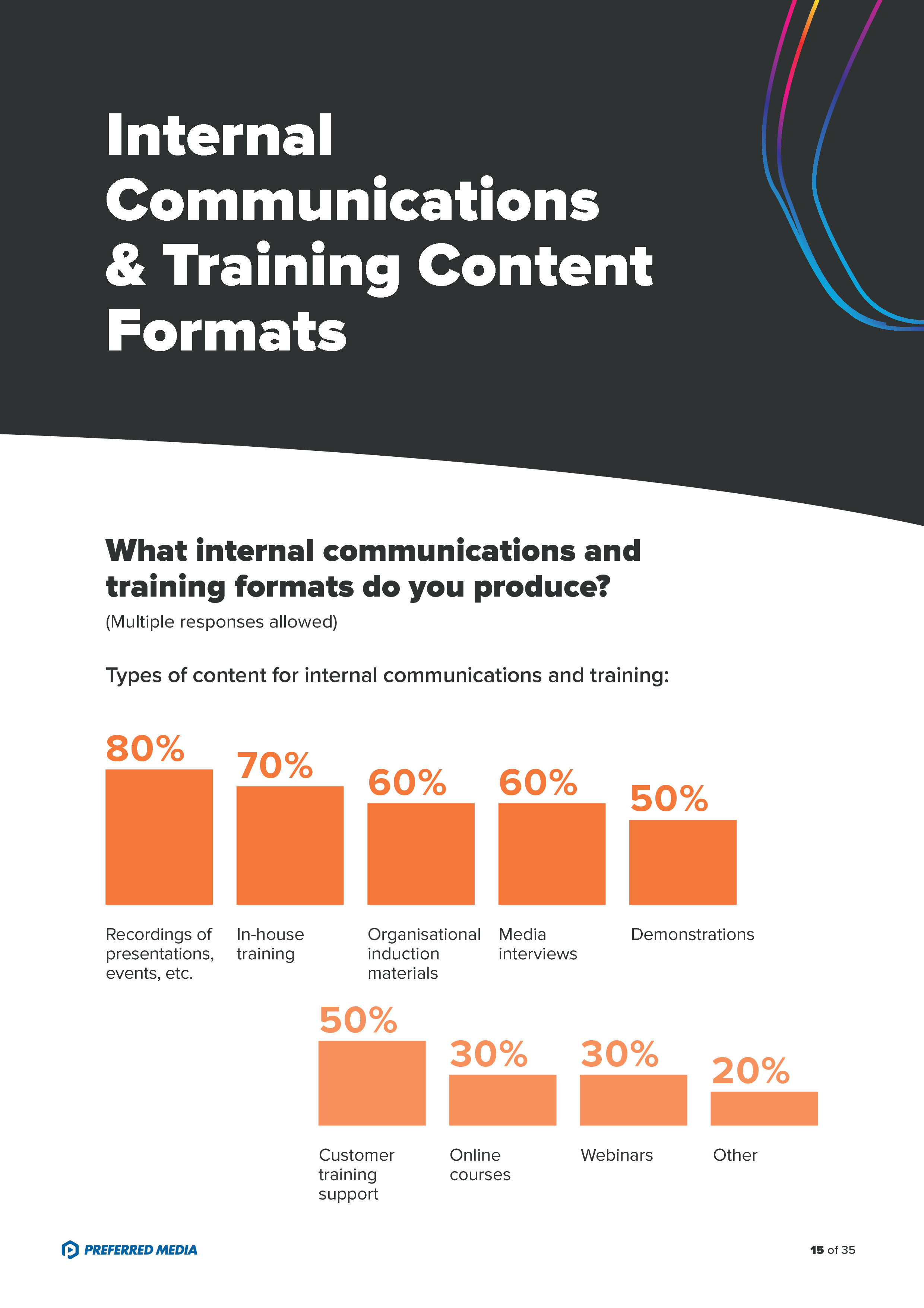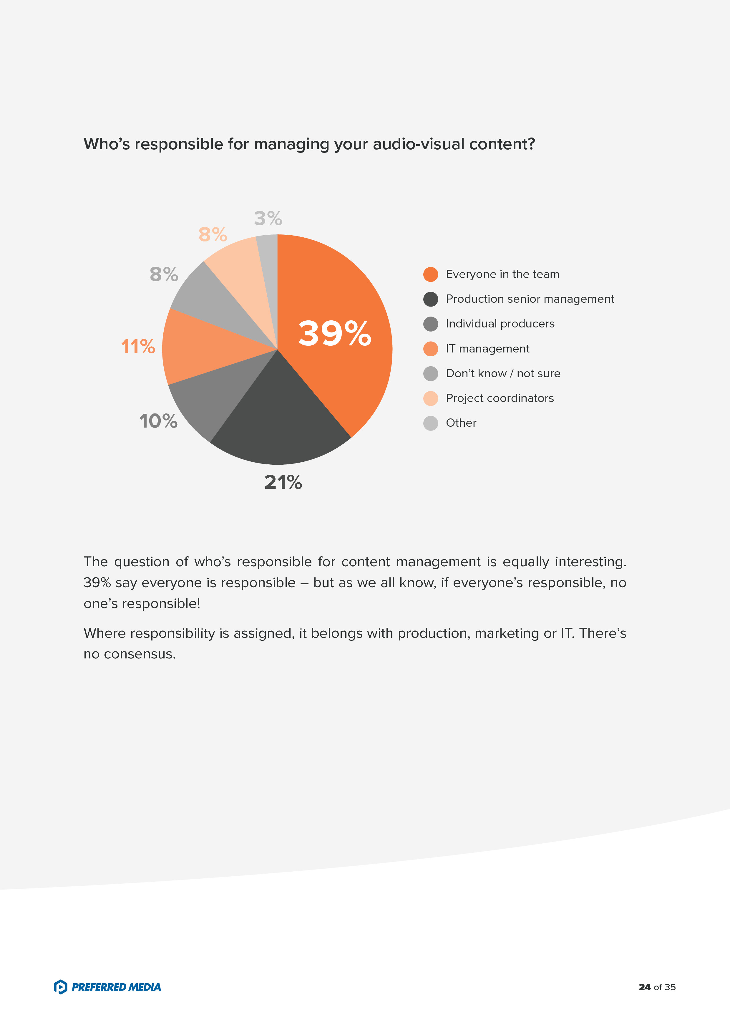 - 70%的受访者利用组织内服务器存储富媒体内容,24%用云存储,只有11%用DAM;