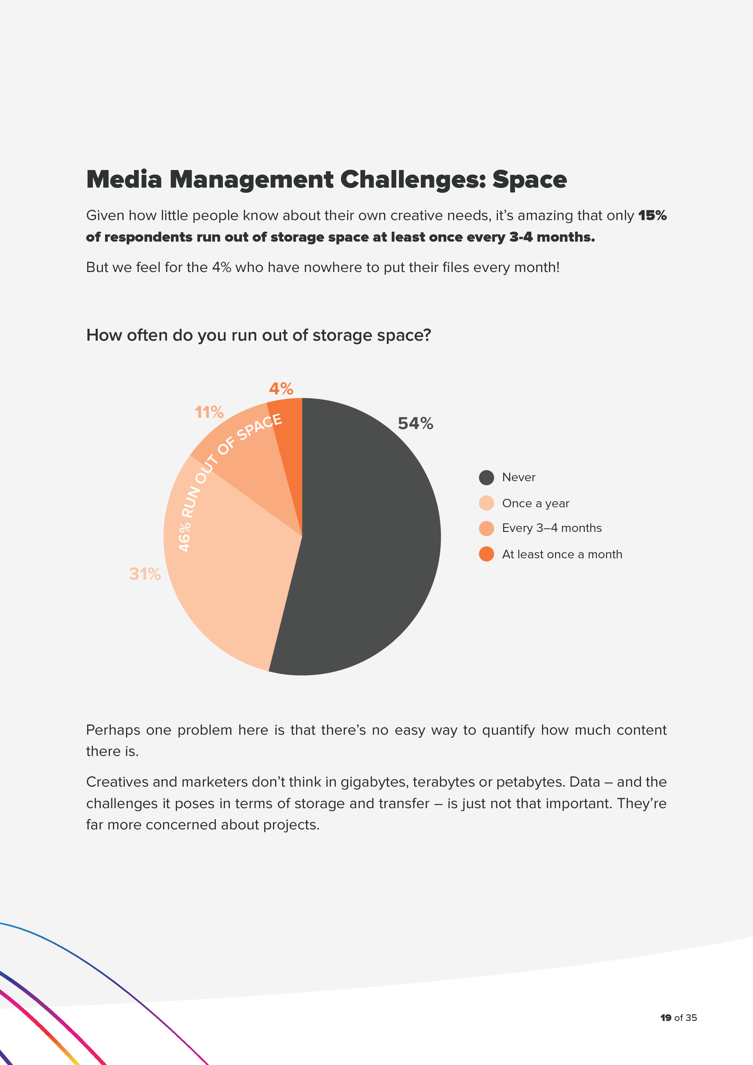 - 15%的受访者表示每年至少有3次用完存储空间;