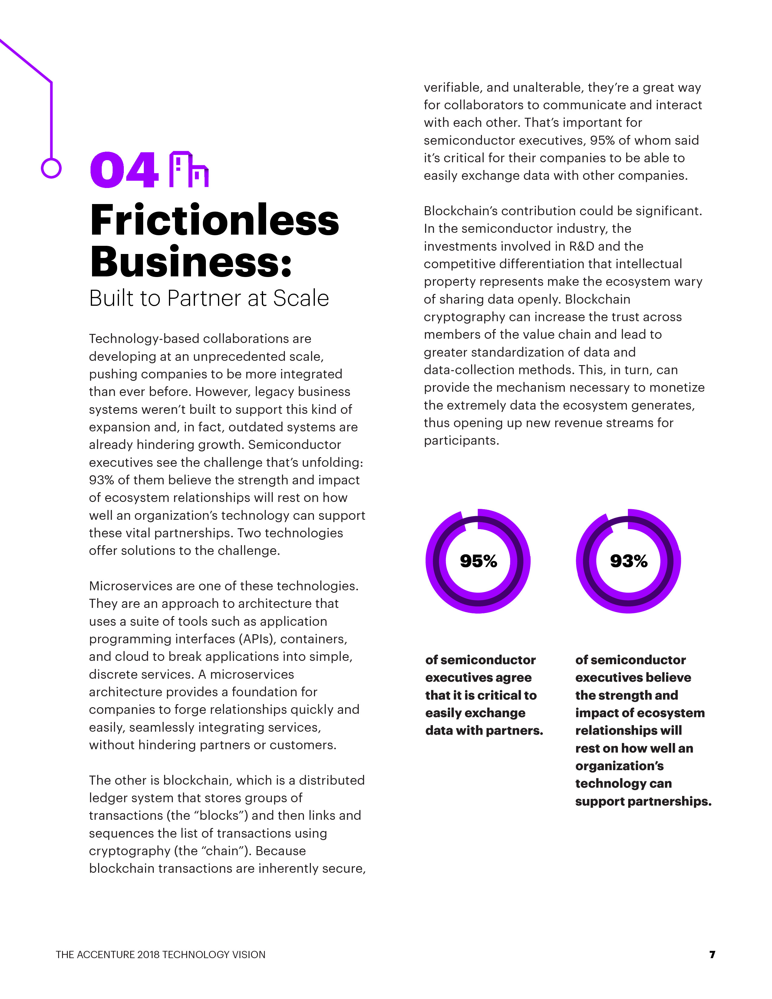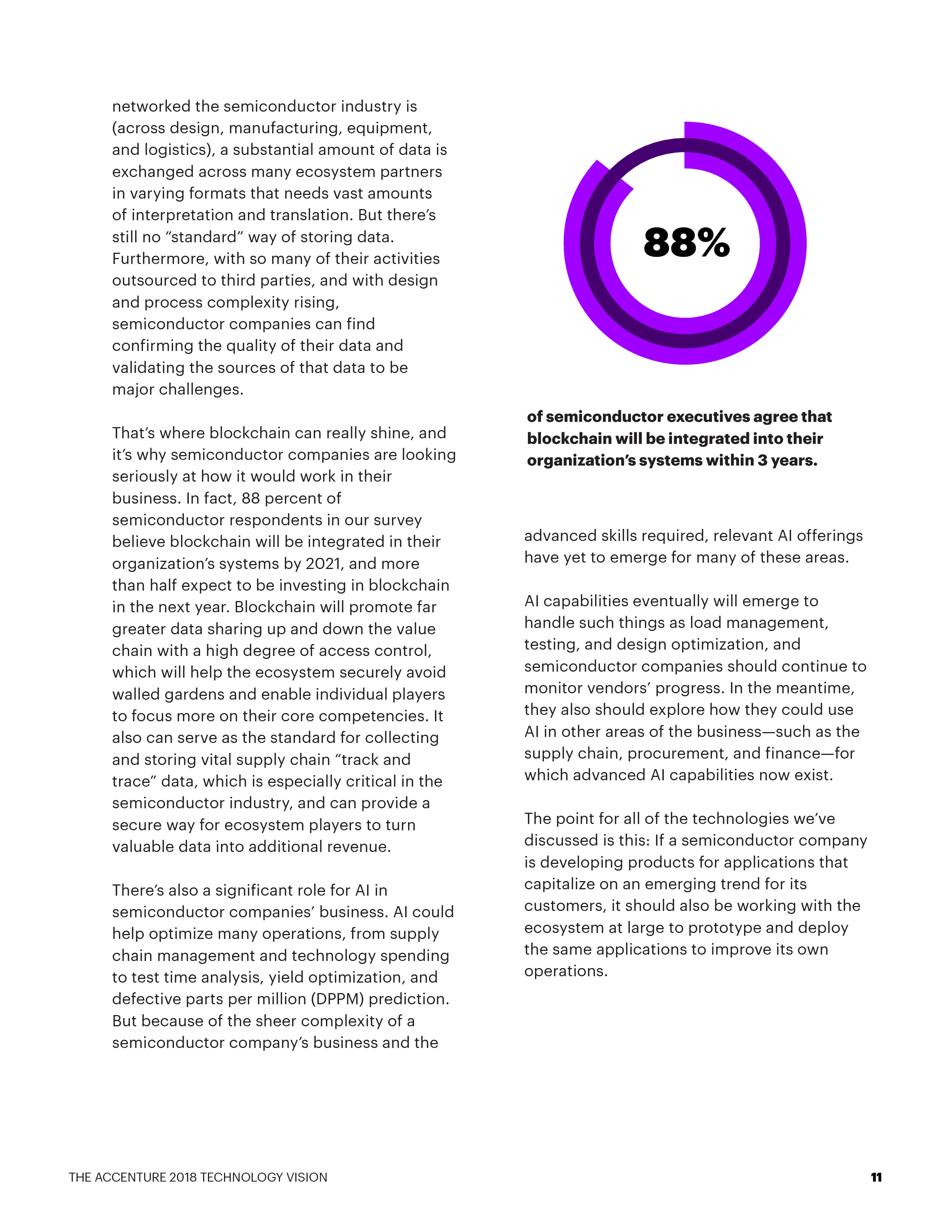 调查发现,在整合区块链和利用人工智能方面,半导体行业走在了前列。近9/10的高管(88%)预计在三年内将区块链整合到他们的企业系统,这在18个行业中是最高的。