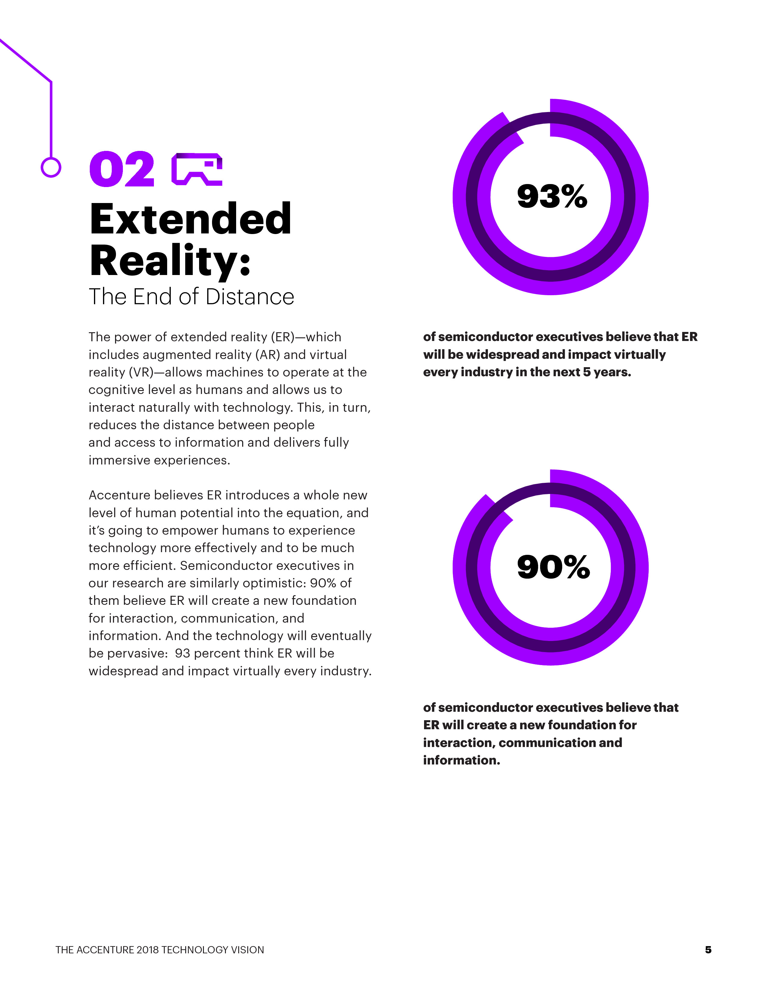 半导体高管还认识到了扩展现实的巨大潜力,包括增强现实和虚拟现实技术。93%的受访者认为这些技术将在未来五年内普及并影响每个行业。几乎所有人(97%)都认为他们的企业可以利用扩展现实解决方案缩小物理距离,尤其是在与员工和客户交流时。